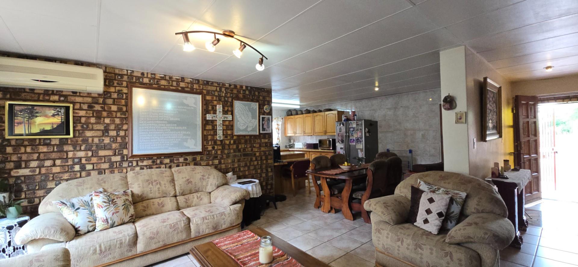From the lounge, sliding doors open onto a patio with a built-in braai, creating an easy indoor-outdoor flow and a relaxed space to enjoy the garden and entertain guests.