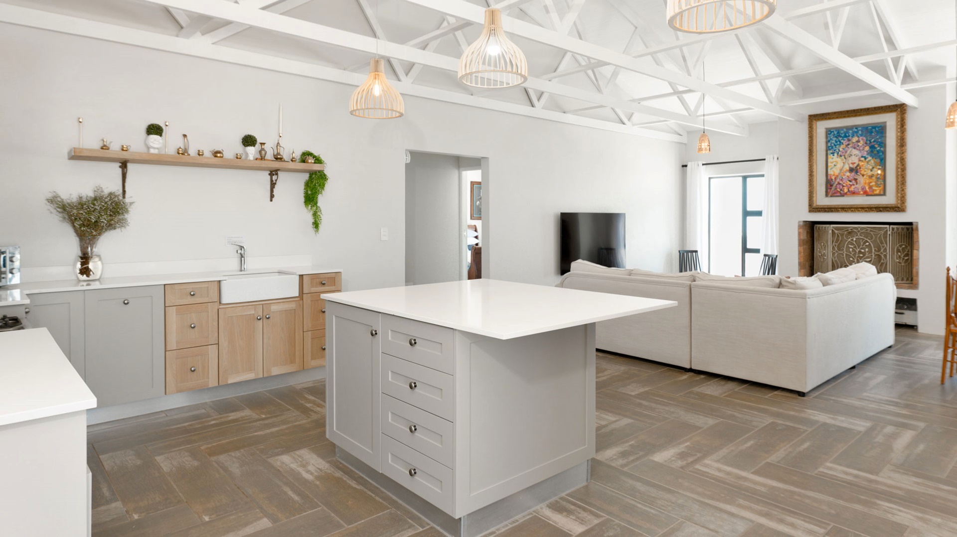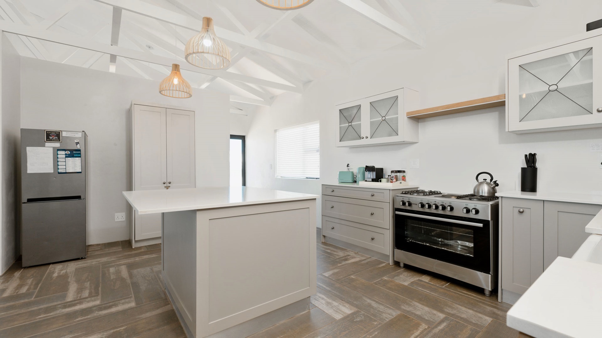 Discover the seamless harmony of modern living in the open-plan layout, where the living, dining, and kitchen effortlessly flow into one another, creating a cohesive and inviting space. The kitchen stands out as a beautiful focal point and is complemented by a convenient separate scullery. The living area extends seamlessly to a balcony, providing a perfect retreat with glimpses of the sea. The main home boasts two well-appointed bedrooms, each accompanied by its own bathroom, with one serving as a private en-suite.