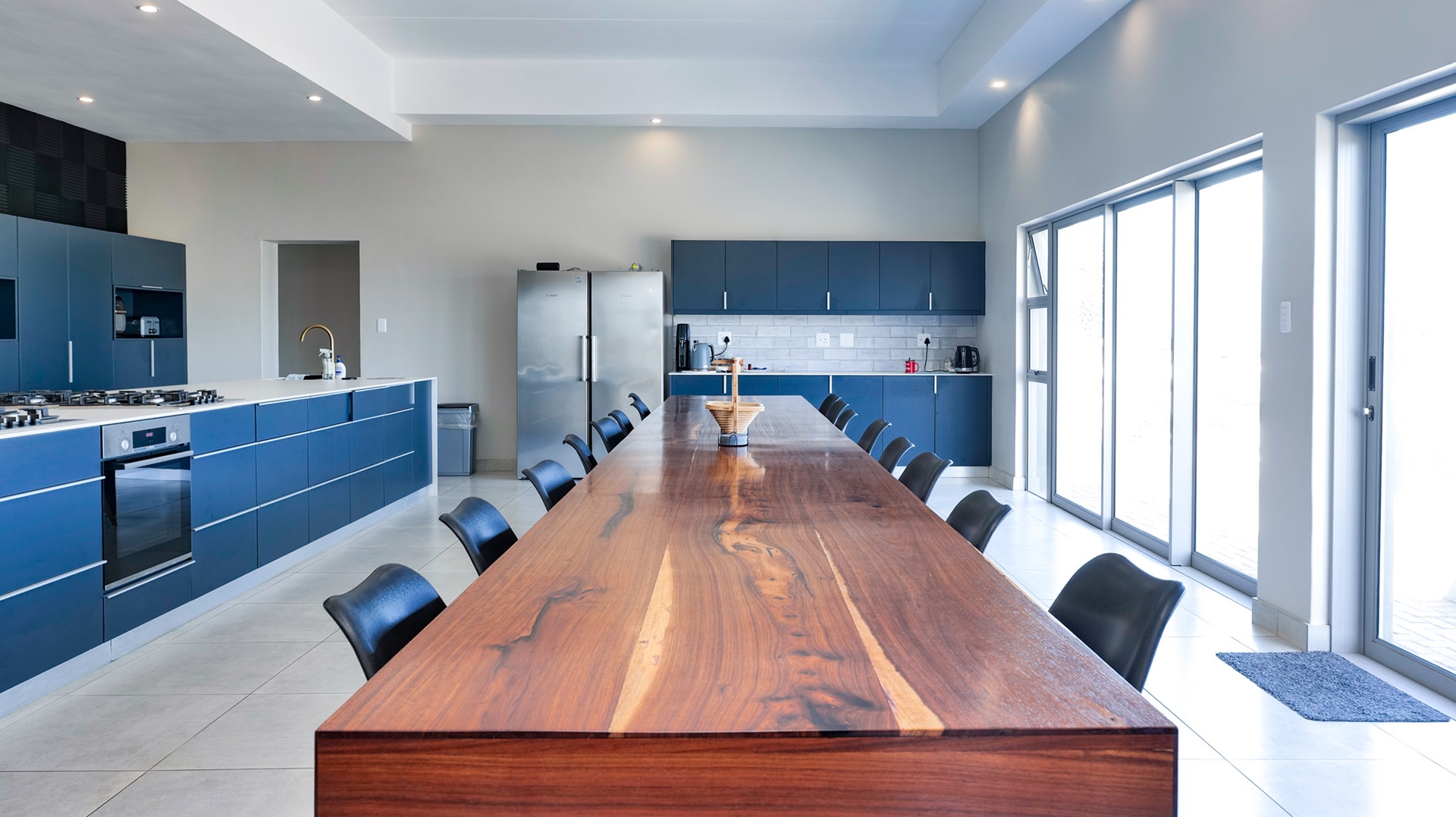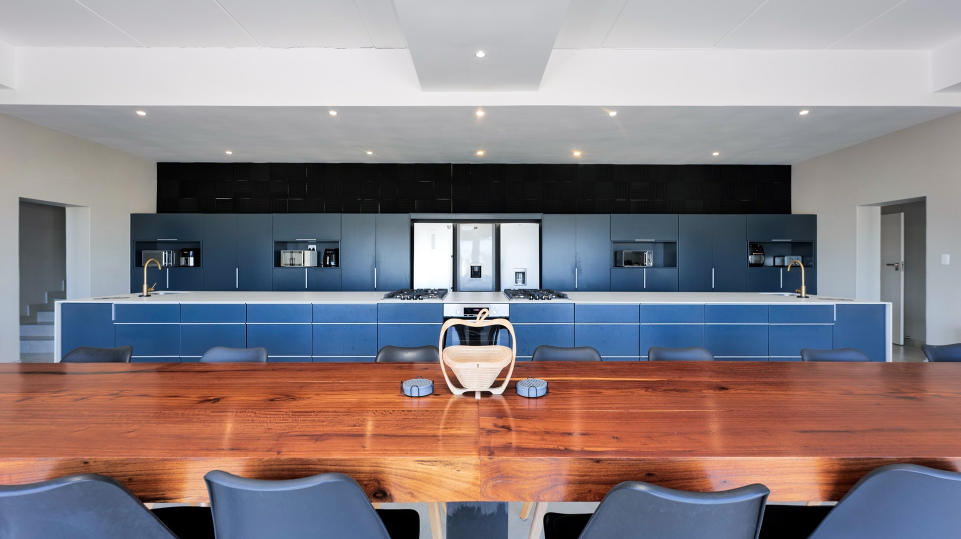 At the heart of the home lies an expansive, beautifully appointed kitchen, cleverly designed with individual preparation and storage stations for each of the four units. A second indoor braai area adds to the entertainment appeal, while a spacious laundry and an upstairs gym with panoramic views elevate everyday living.