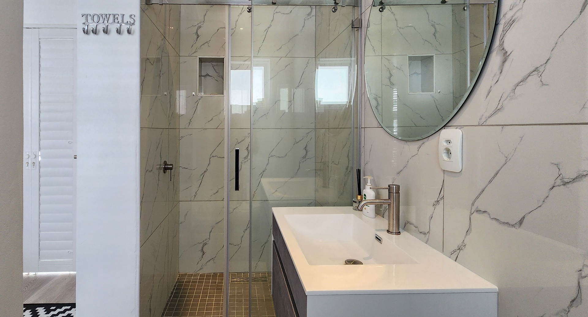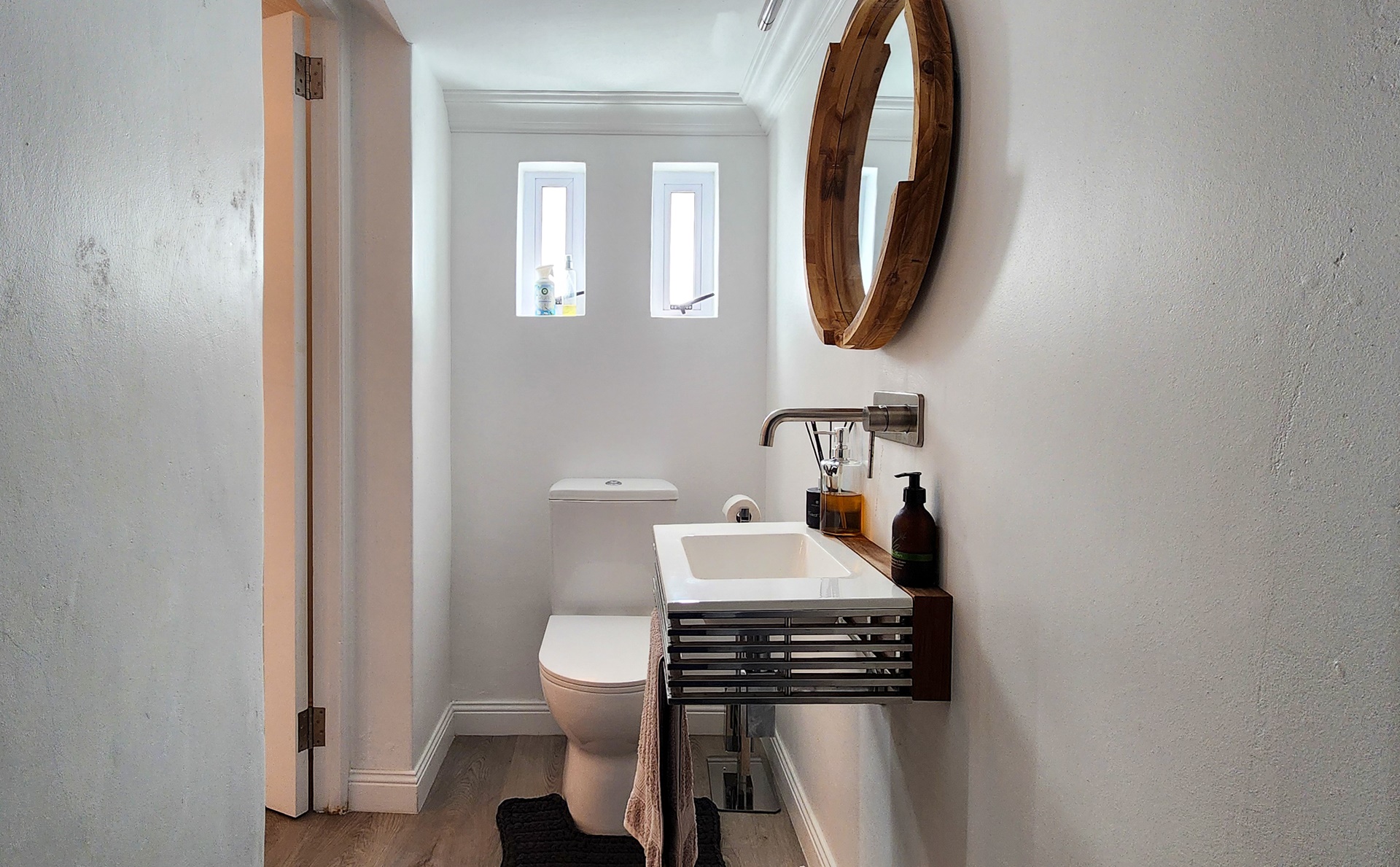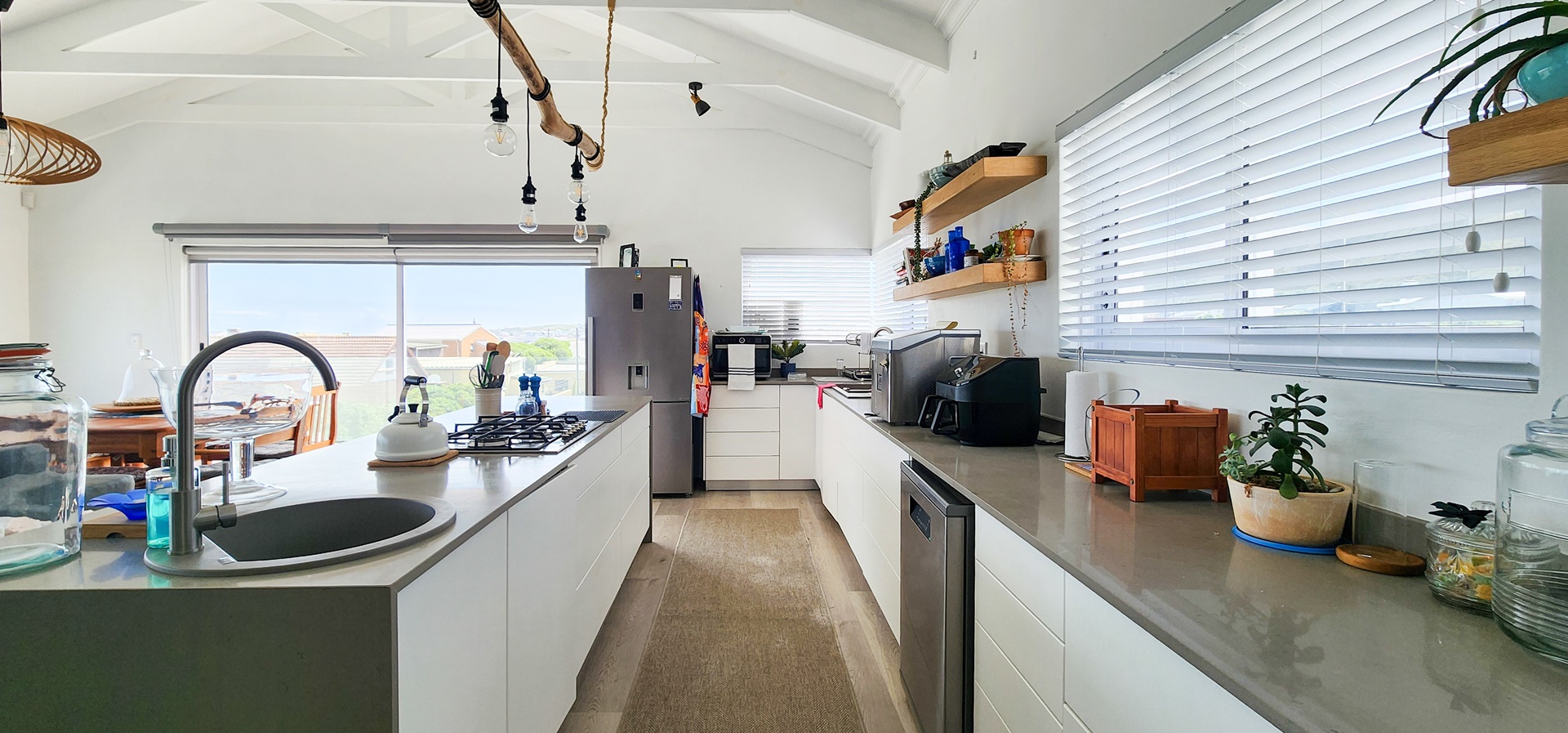 The back of the property transitions into a contemporary, dual-level home designed with a relaxed, upmarket feel.