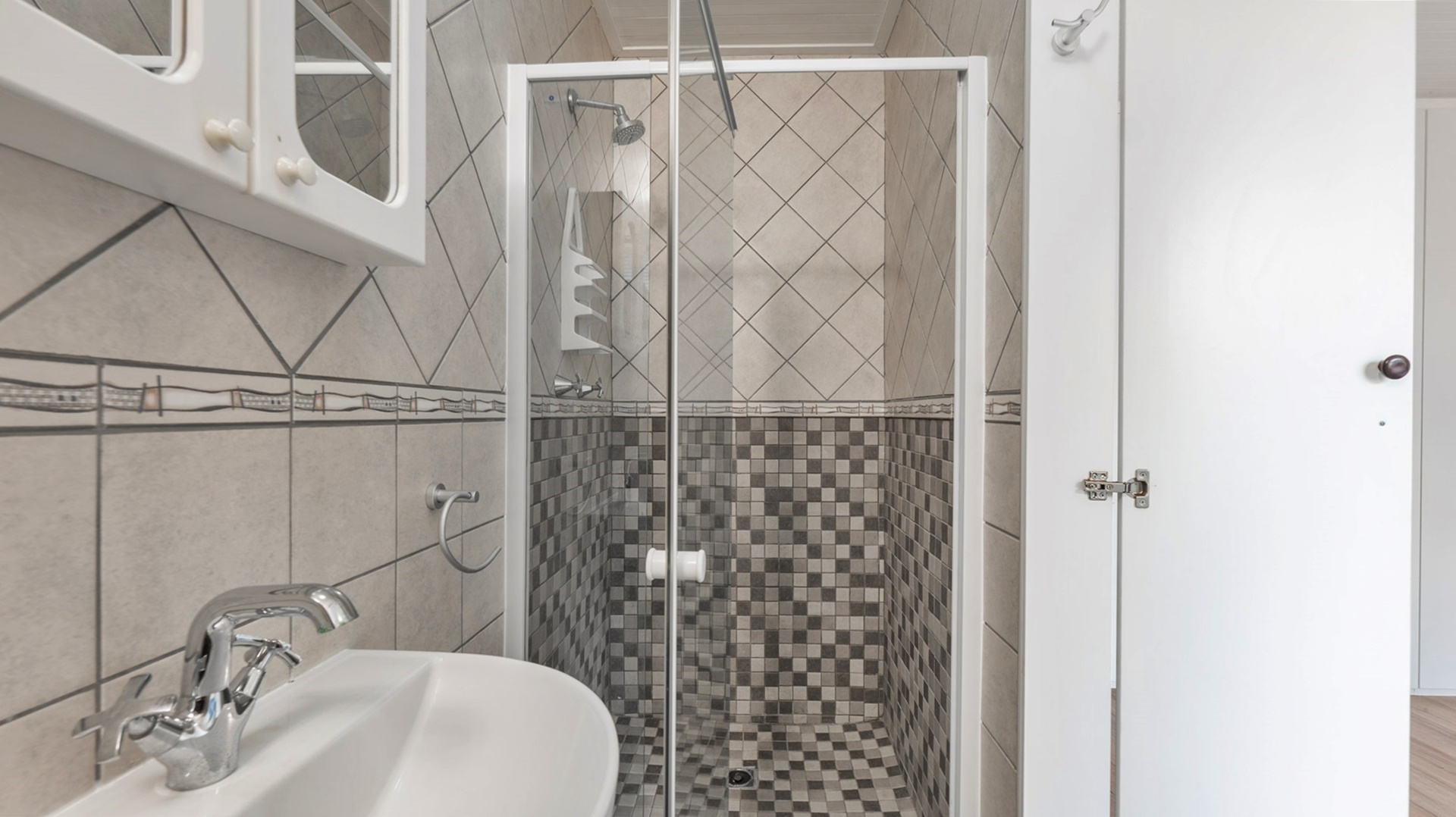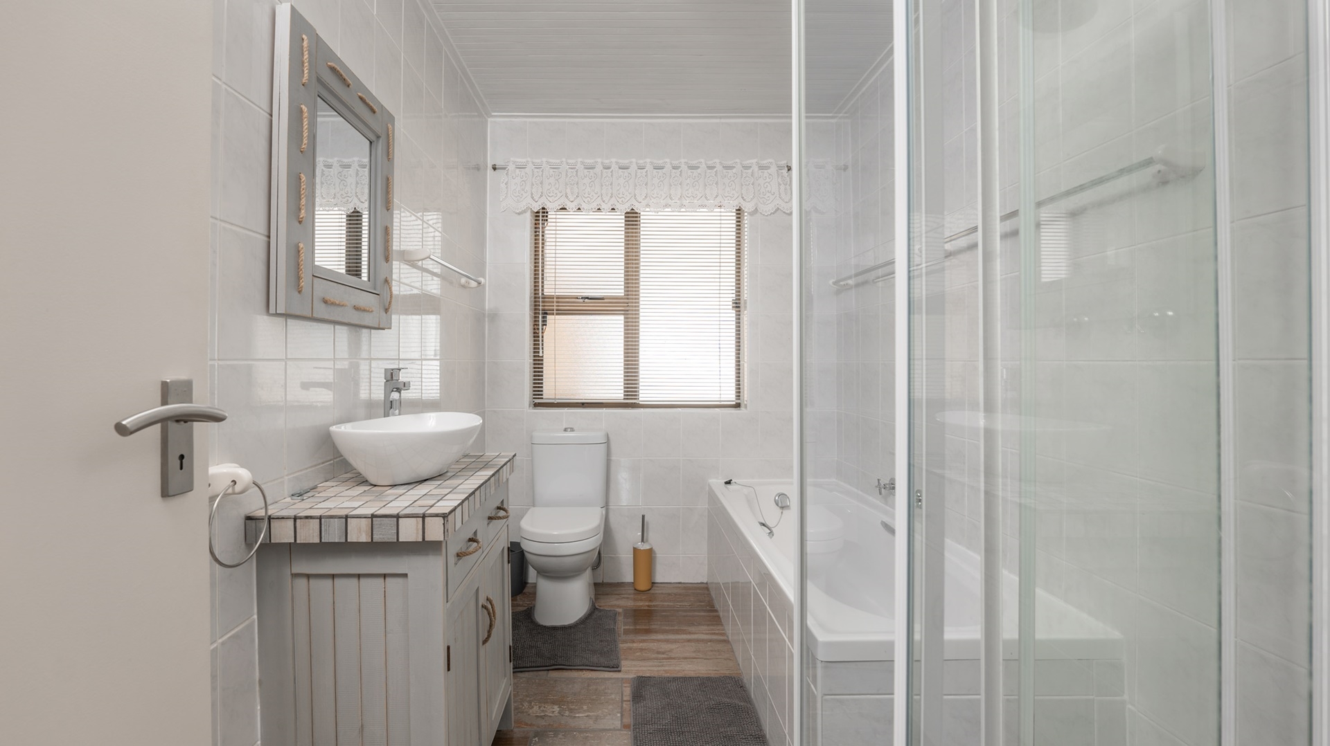 The home further comprises various living areas in the form of an enclosed patio for early morning coffee, a family room, and an upstairs living and dining with built-in braai and lovely sea views.
