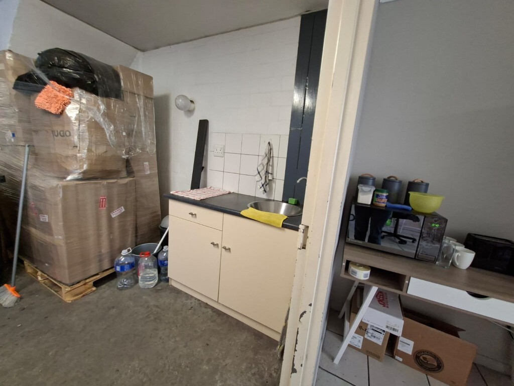 Warehouse: double-volume entrance accessed via 4.5m roller shutter door