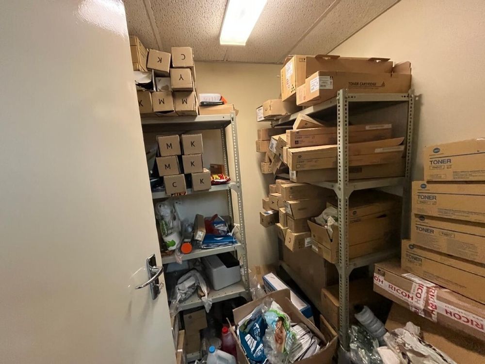 Ground floor facilities include a reception area with adjacent toilet facilities providing warehouse access, complemented by two dedicated office spaces. The first floor houses a server room and storage facilities. A connecting passage links the ground floor office to a kitchen facility within the warehouse area, with additional toilet facilities available on the warehouse floor.