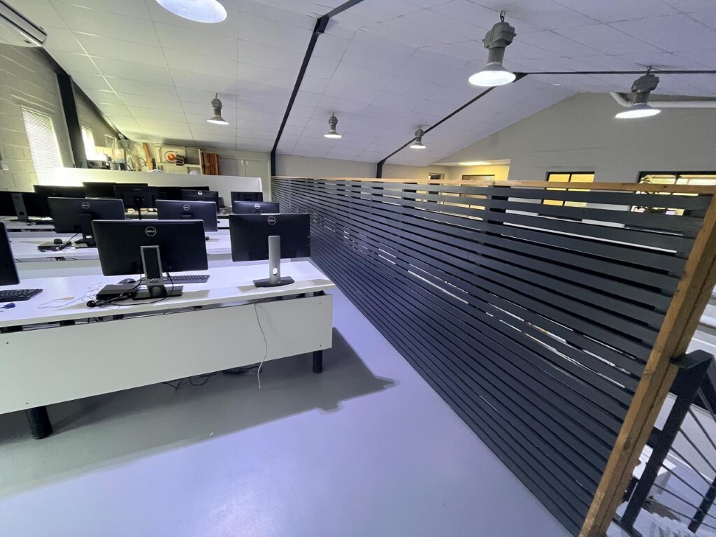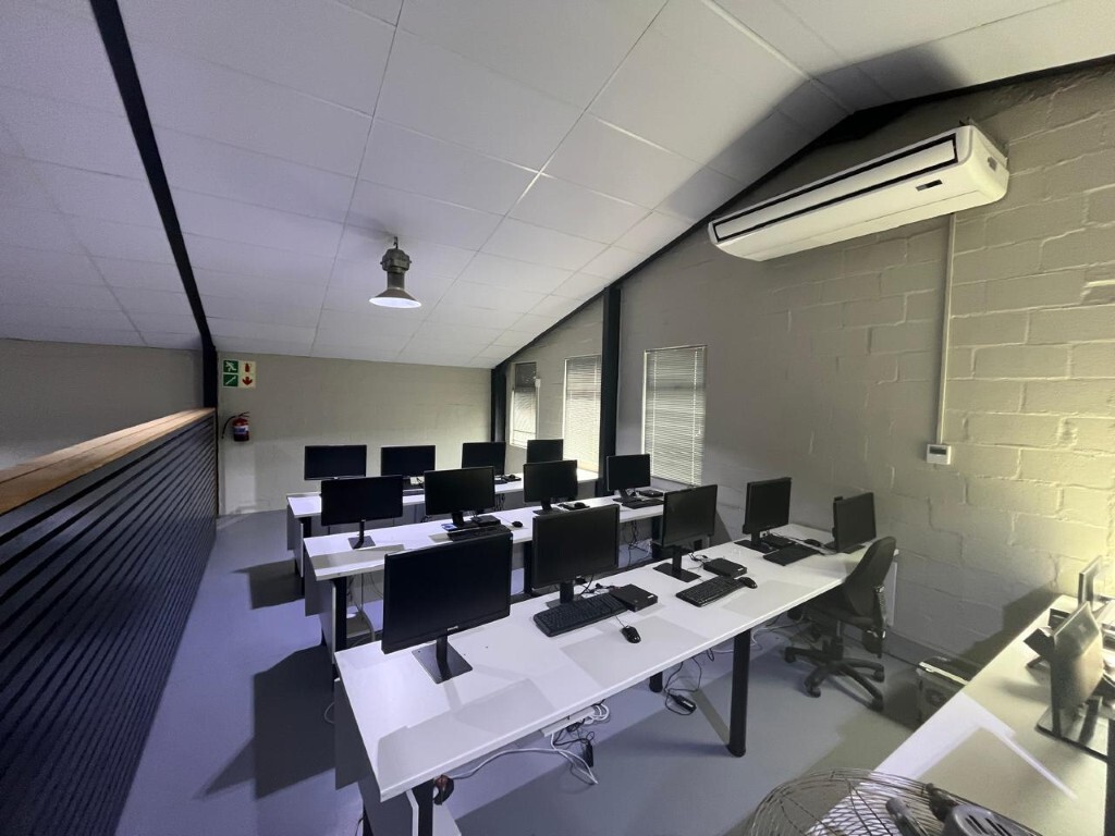 This 60m2 mezzanine office is situated within an enclosed space, accessed via internal stairs. The unit provides a self-contained workspace suitable for back office operations, support teams, or administrative functions requiring cost-effective accommodation in close proximity to Cape Town International Airport.