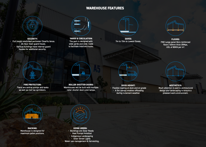 Warehouses will be built with multiple roller shutter doors and ramps.