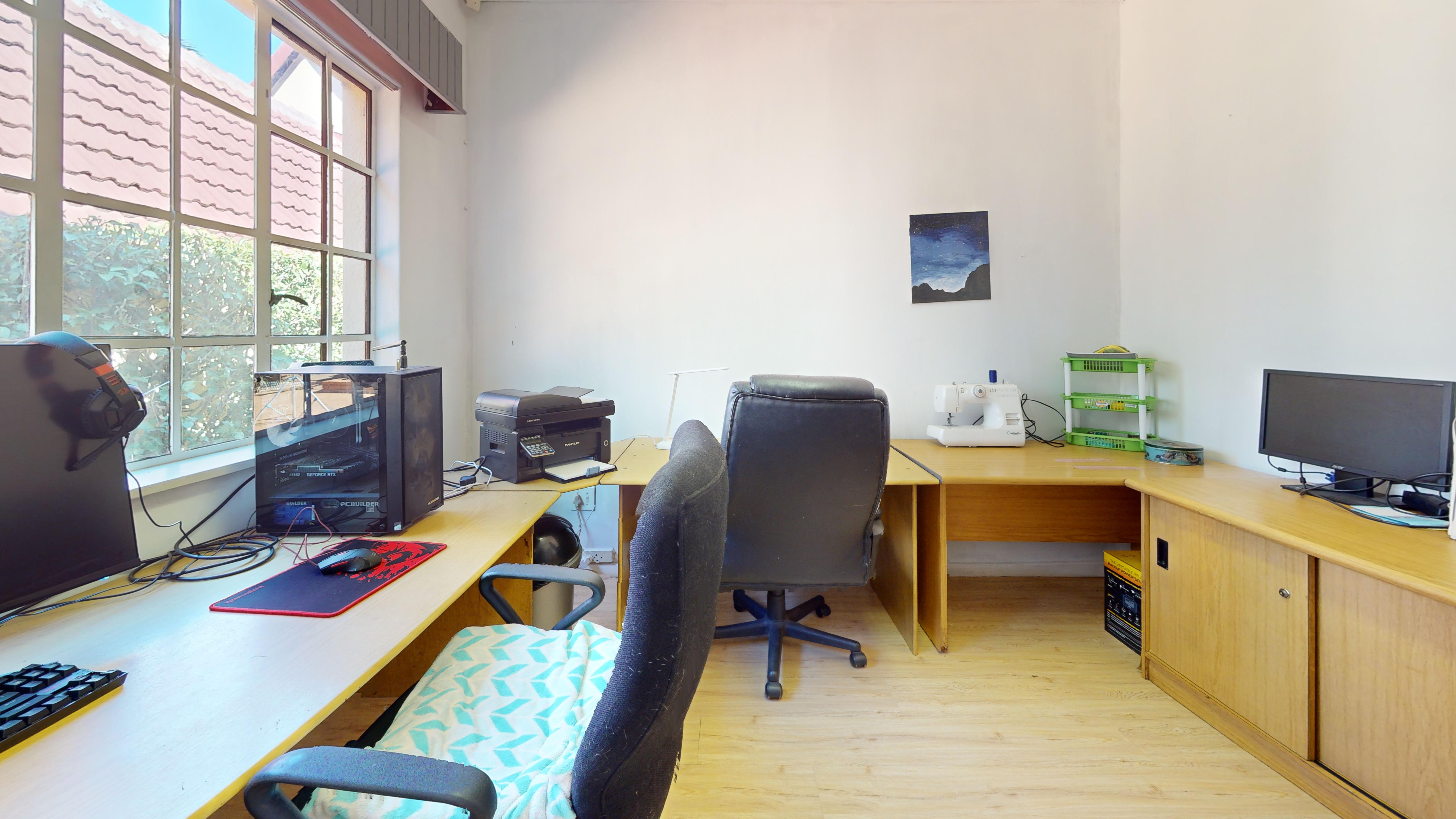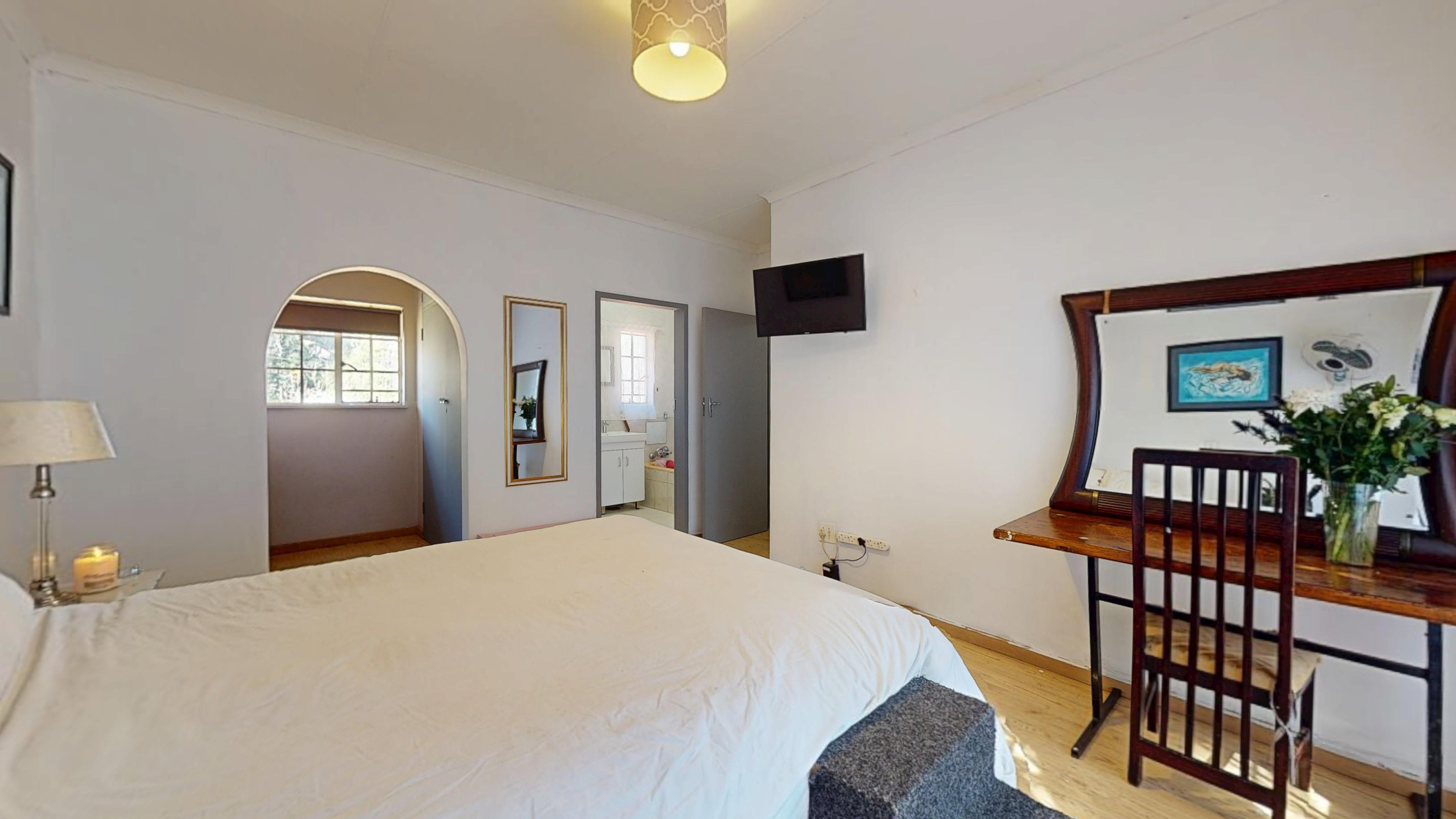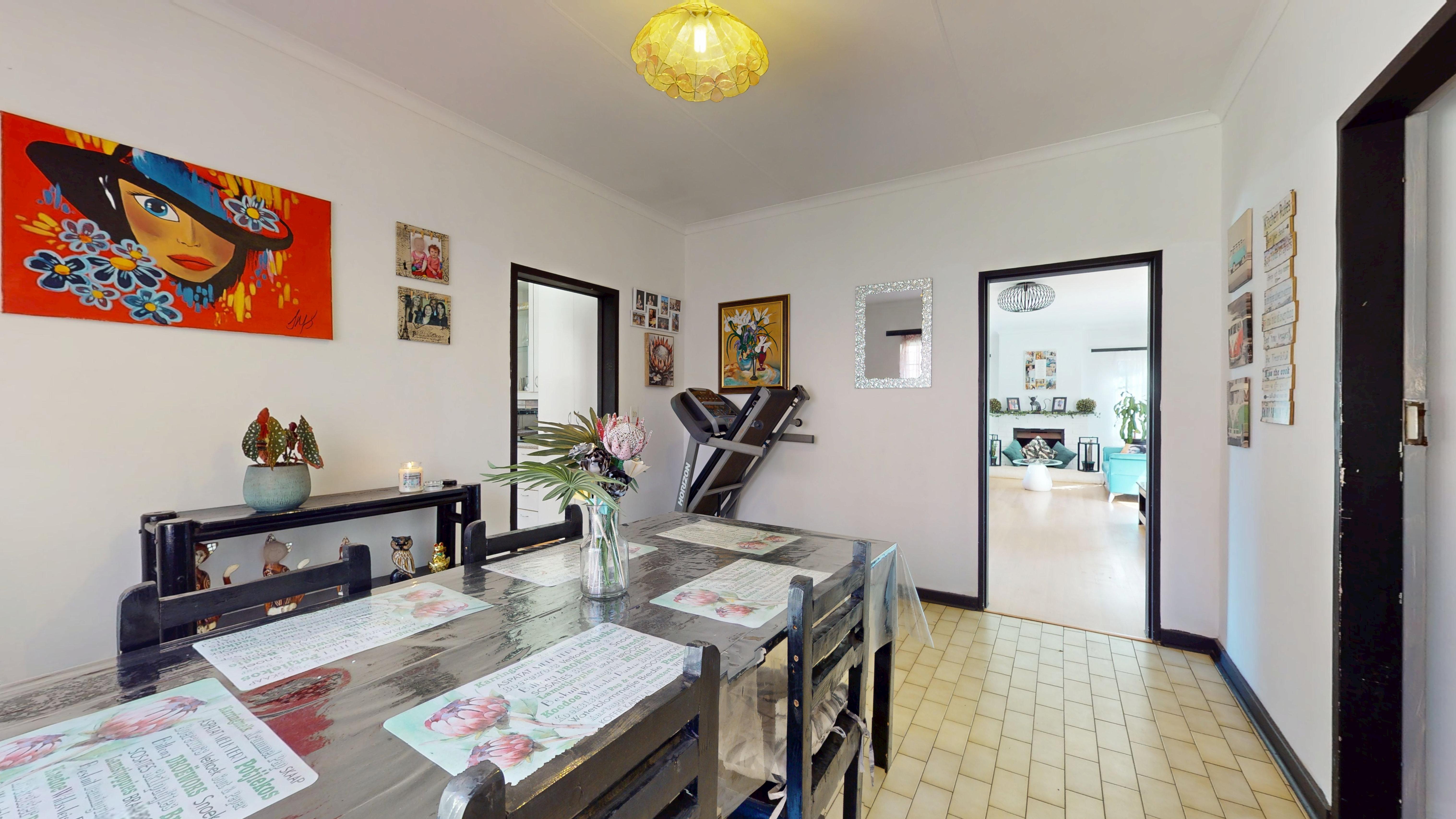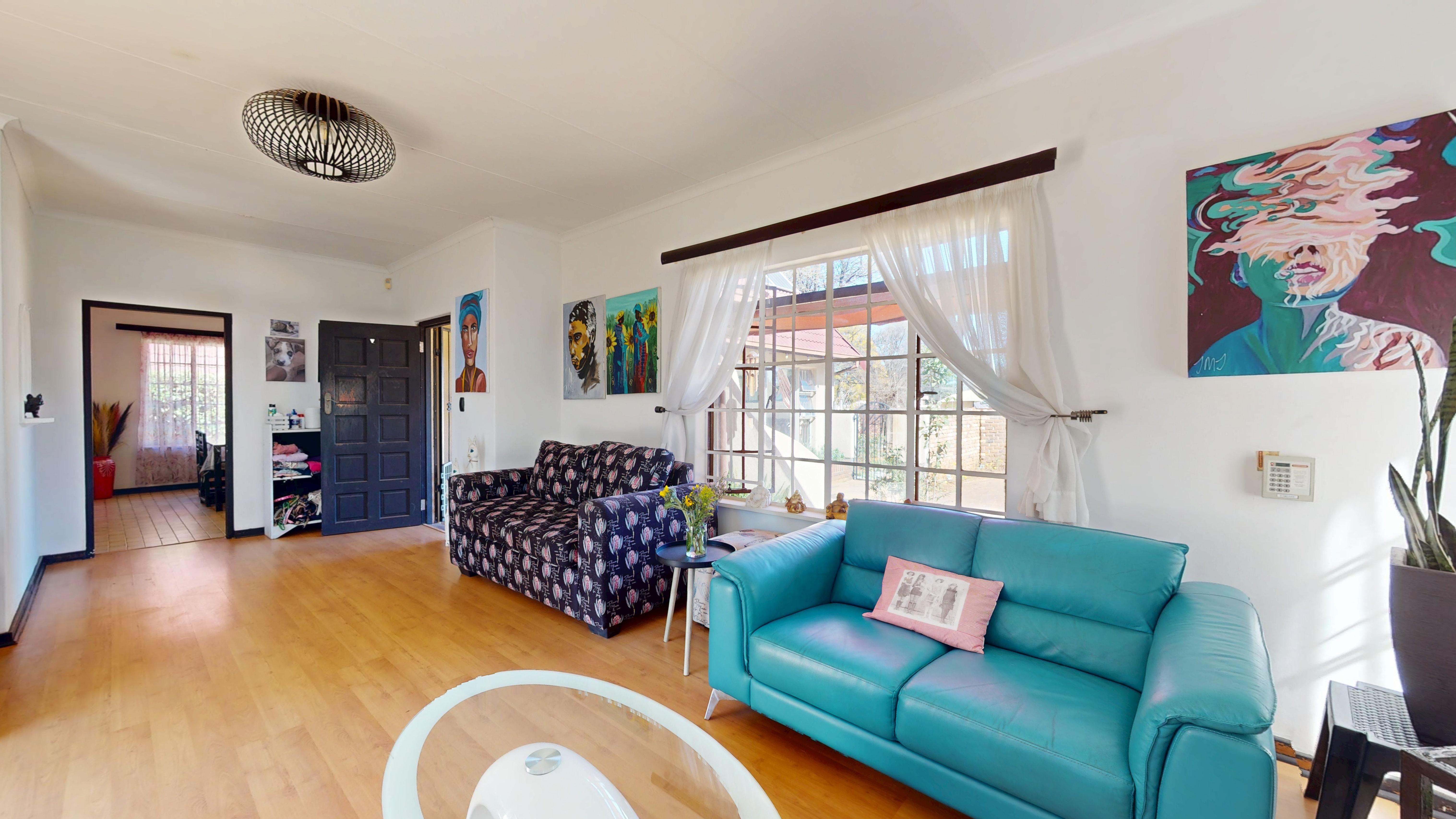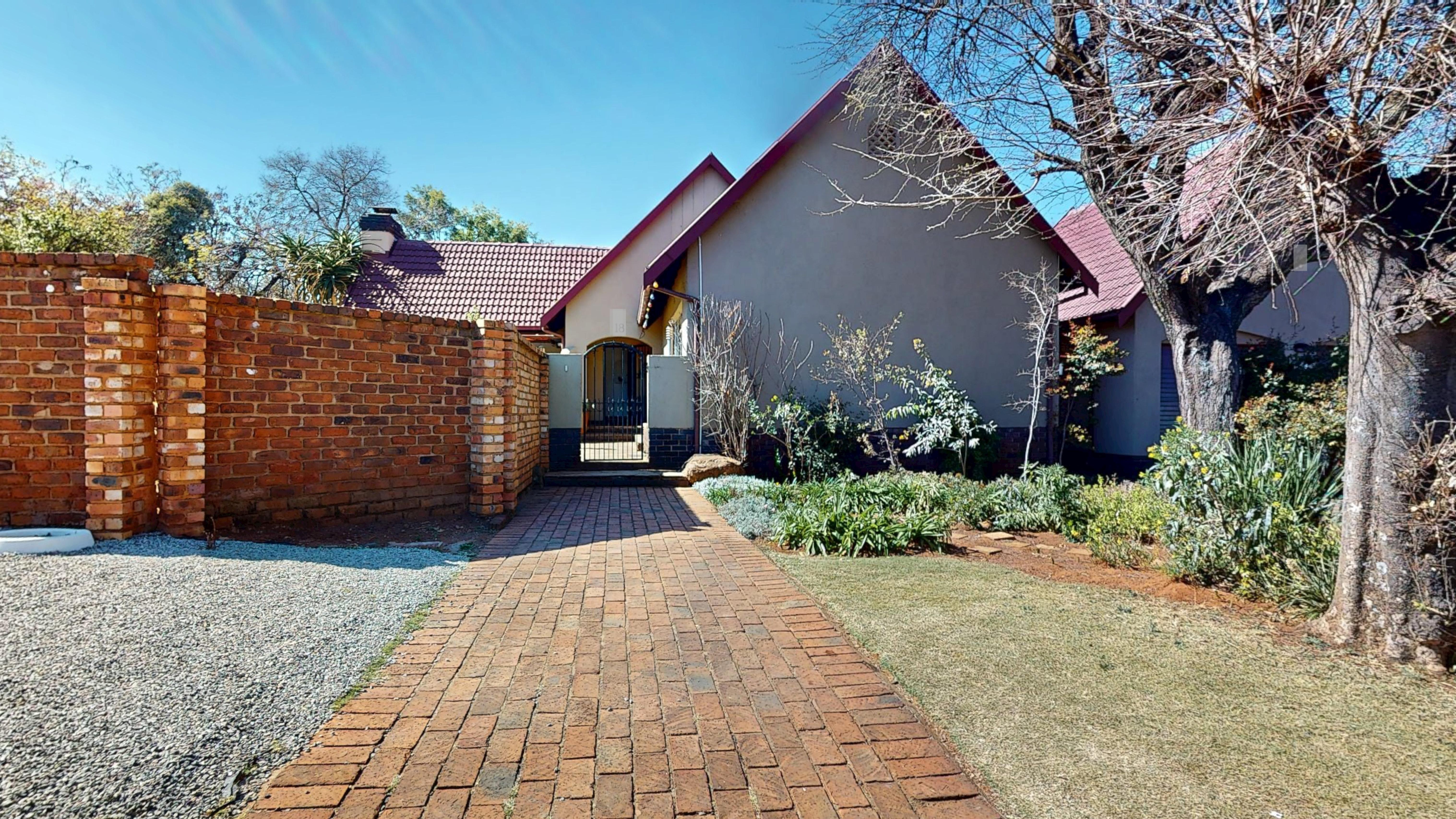 The entertainment area includes a built-in braai under a thatched Lapa — ideal for weekend gatherings or relaxed evenings at home.