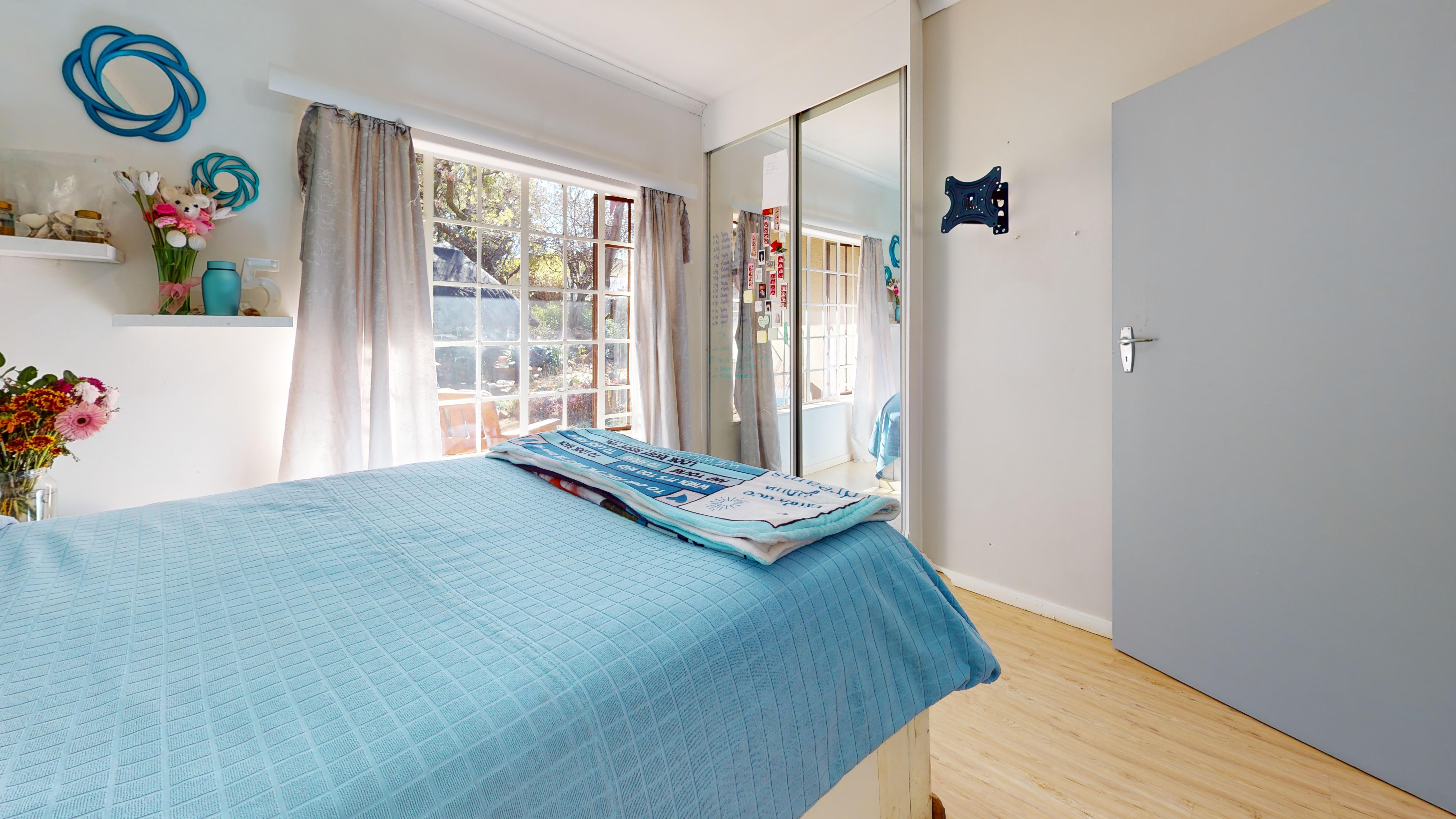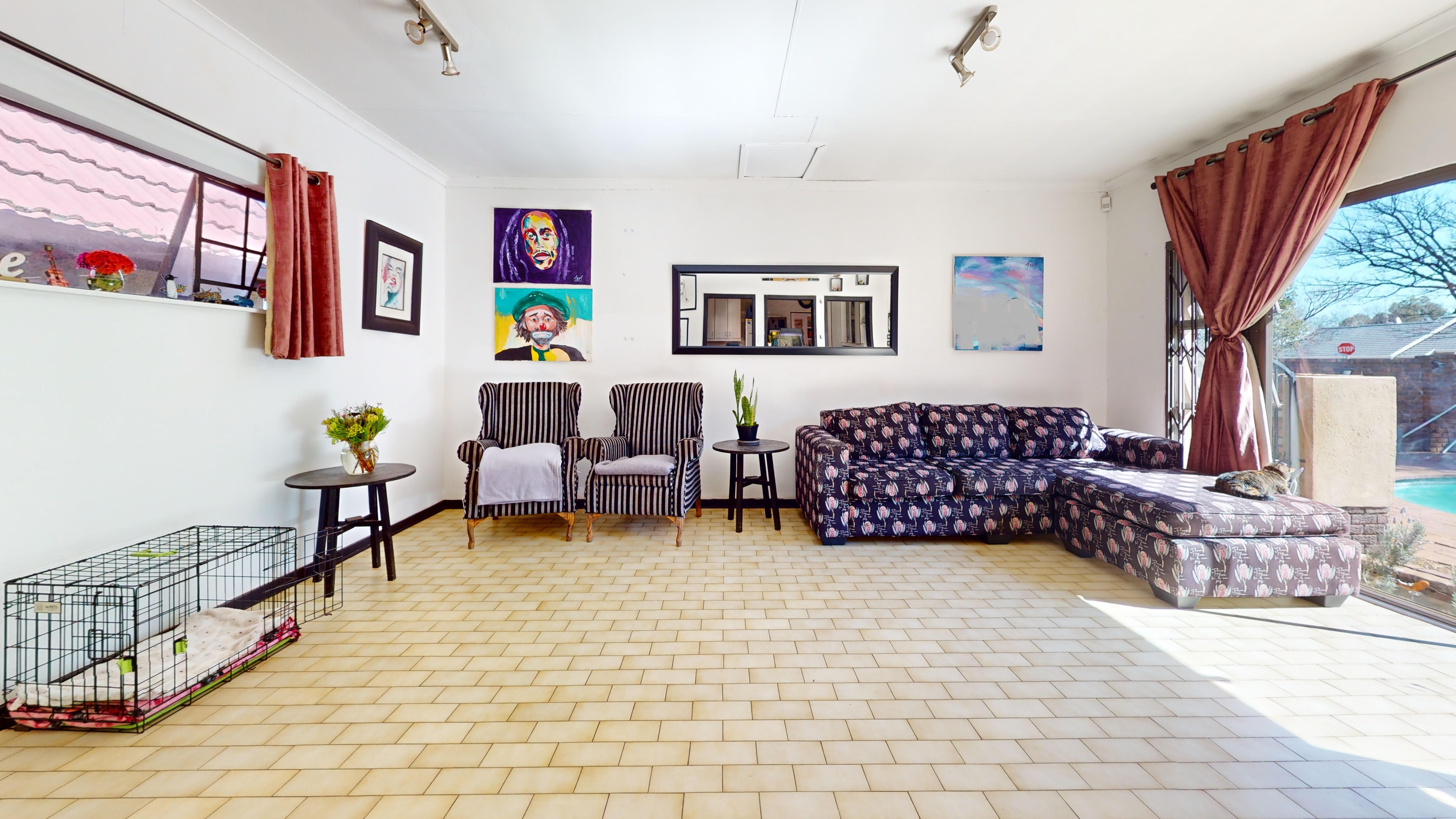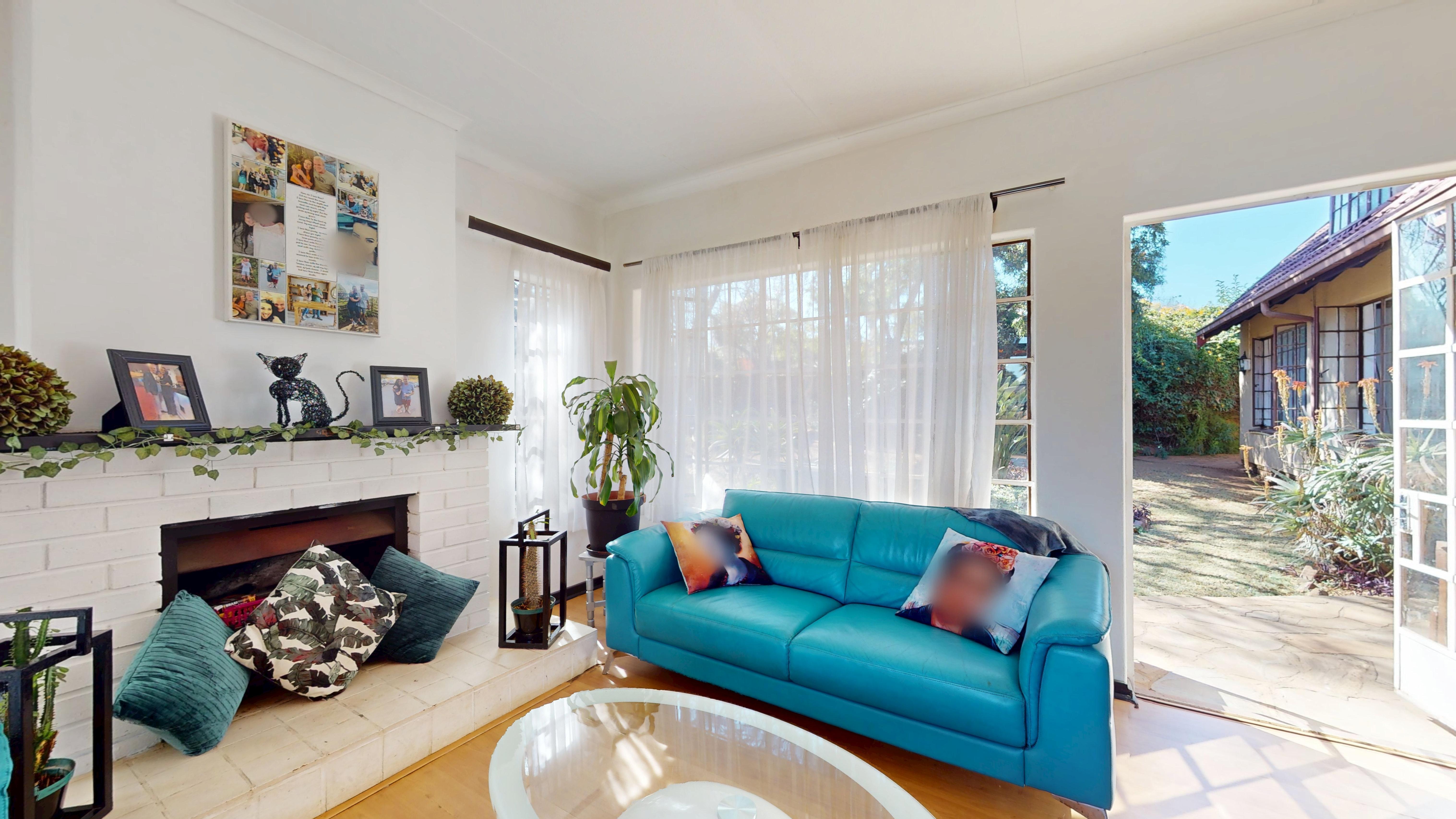 A sunny, open-plan lounge flows seamlessly into a well-established garden and sparkling pool, creating the perfect indoor-outdoor living experience.