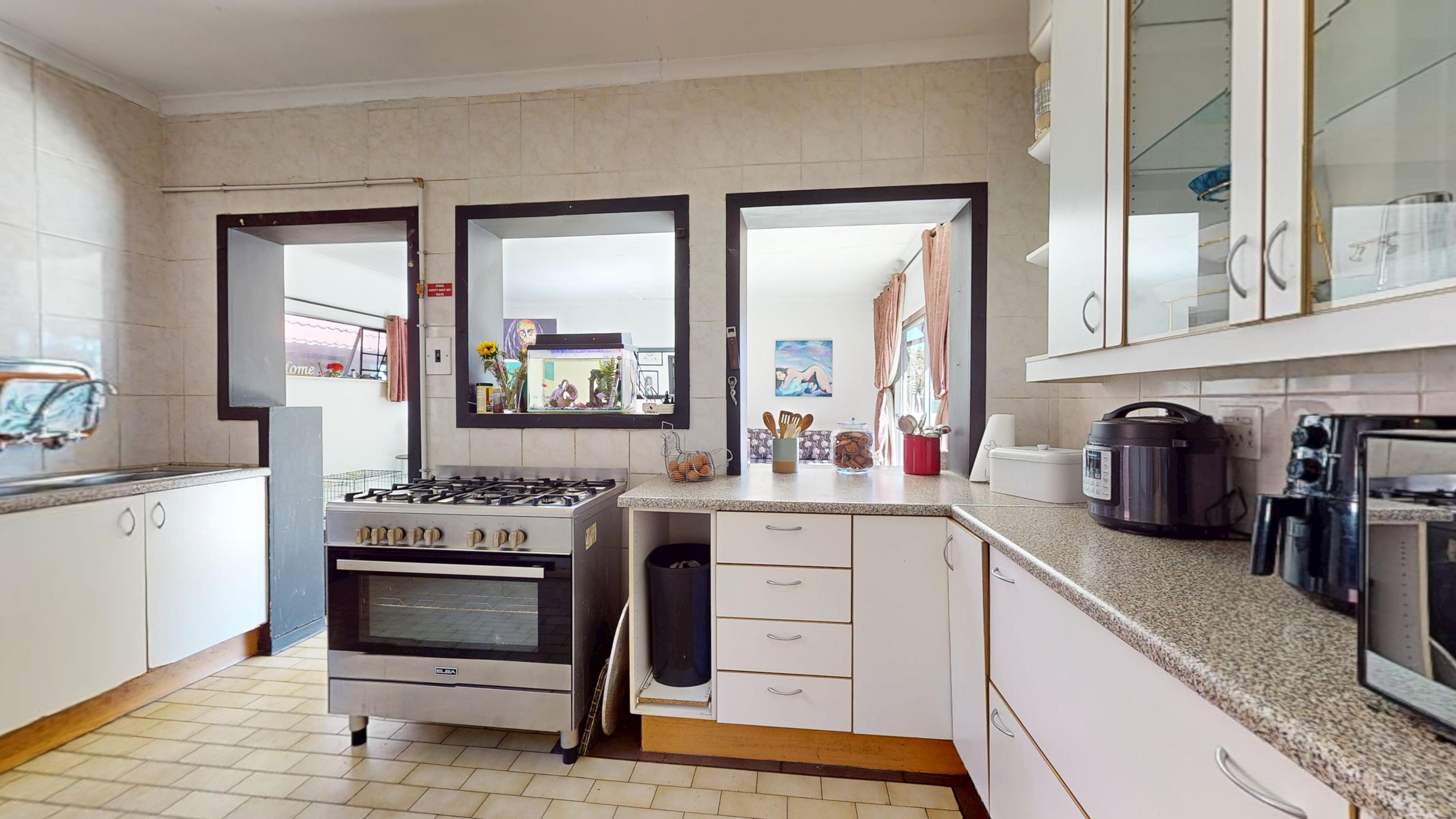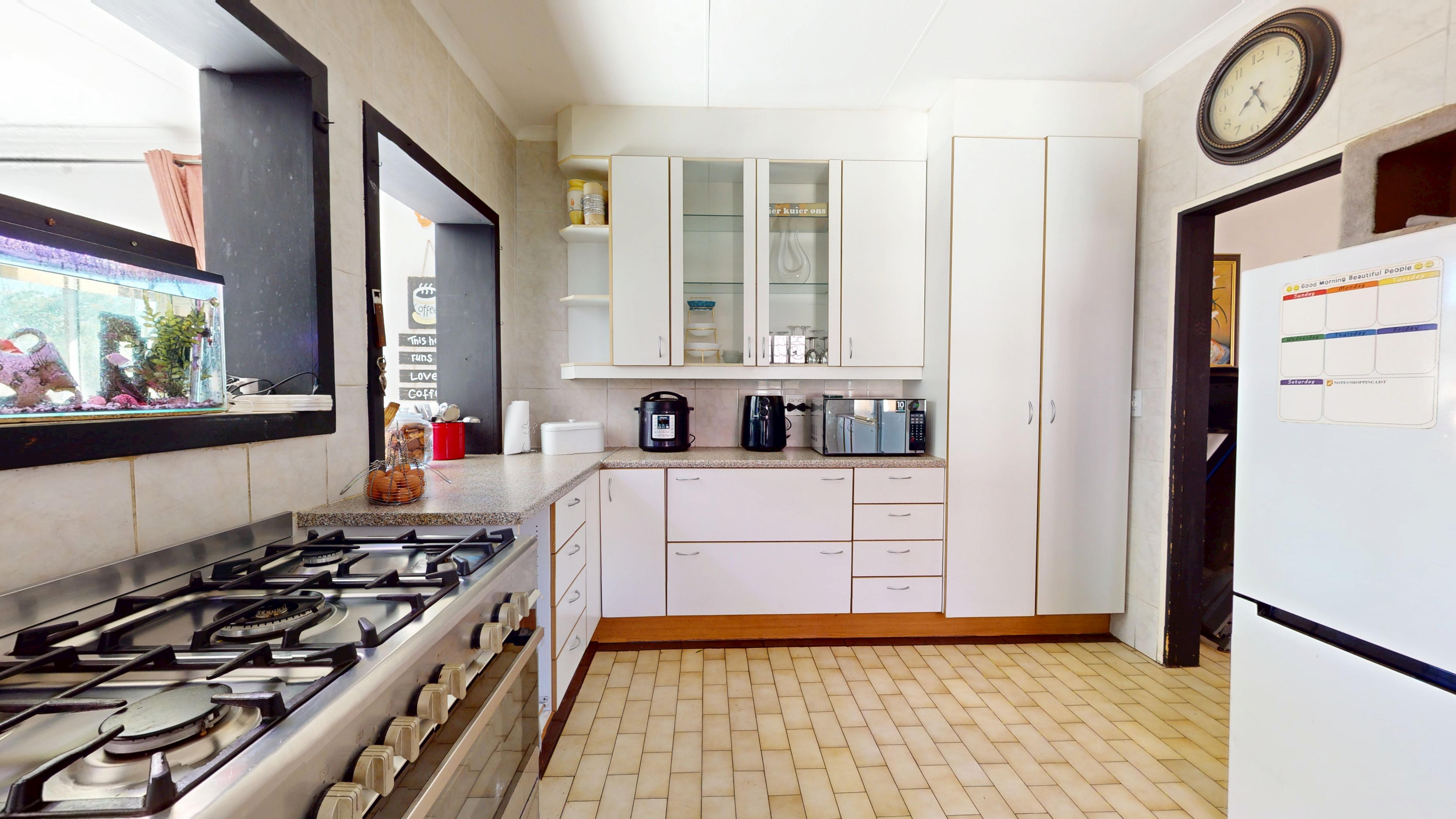 The heart of the home boasts a spacious kitchen equipped with a 5-plate gas stove, ideal for home chefs.