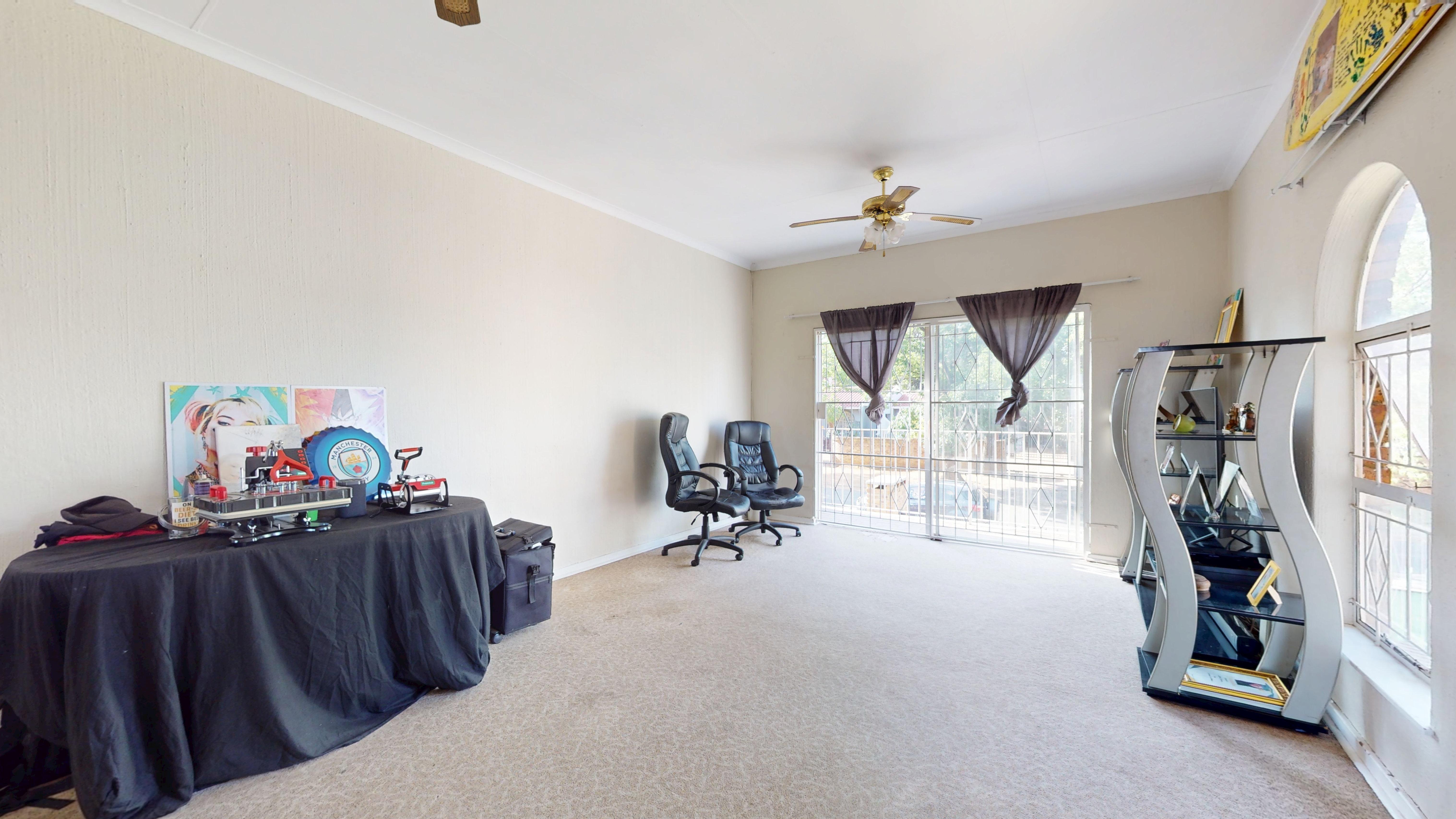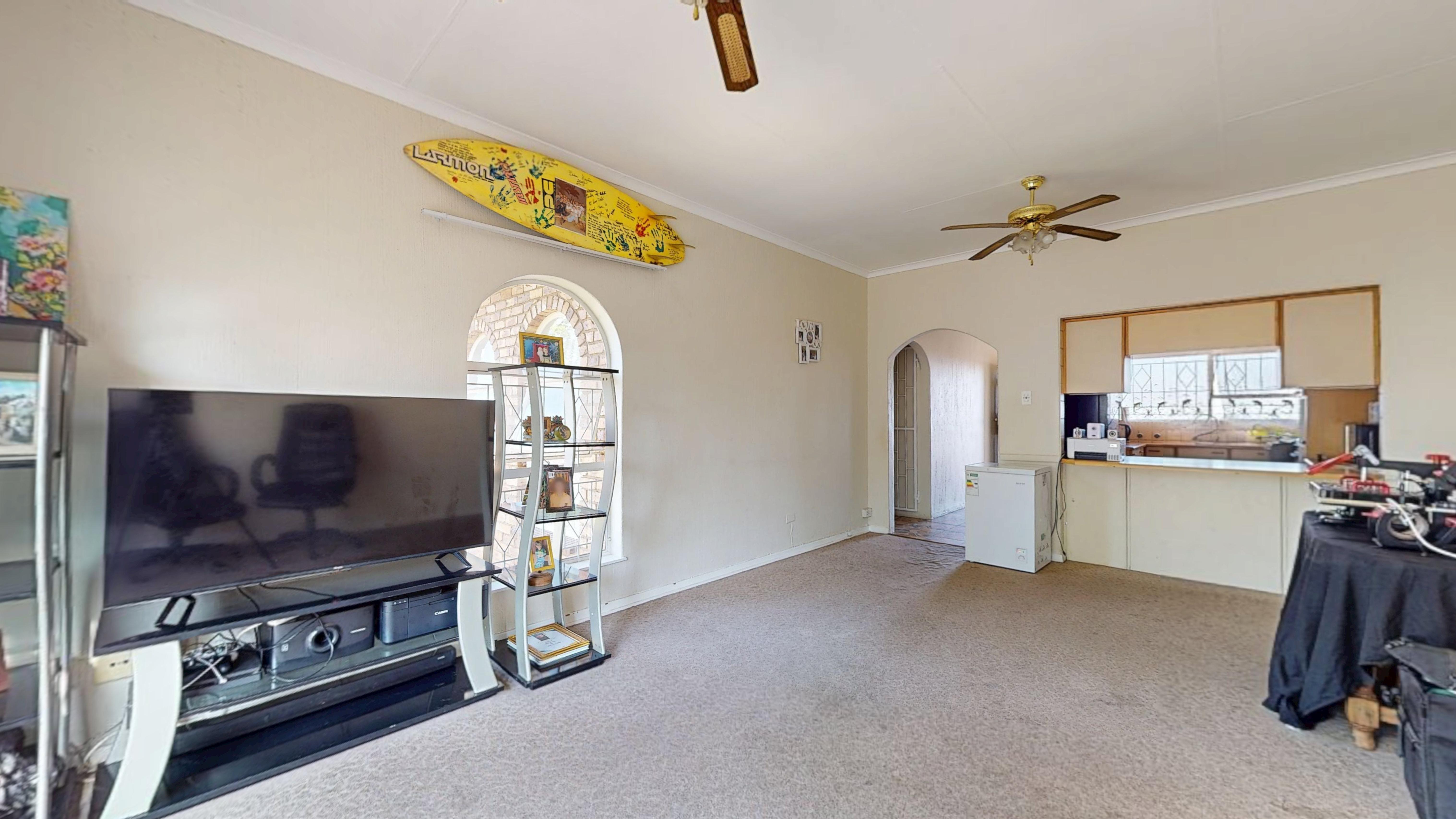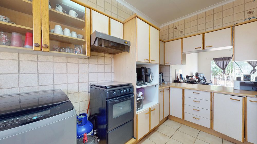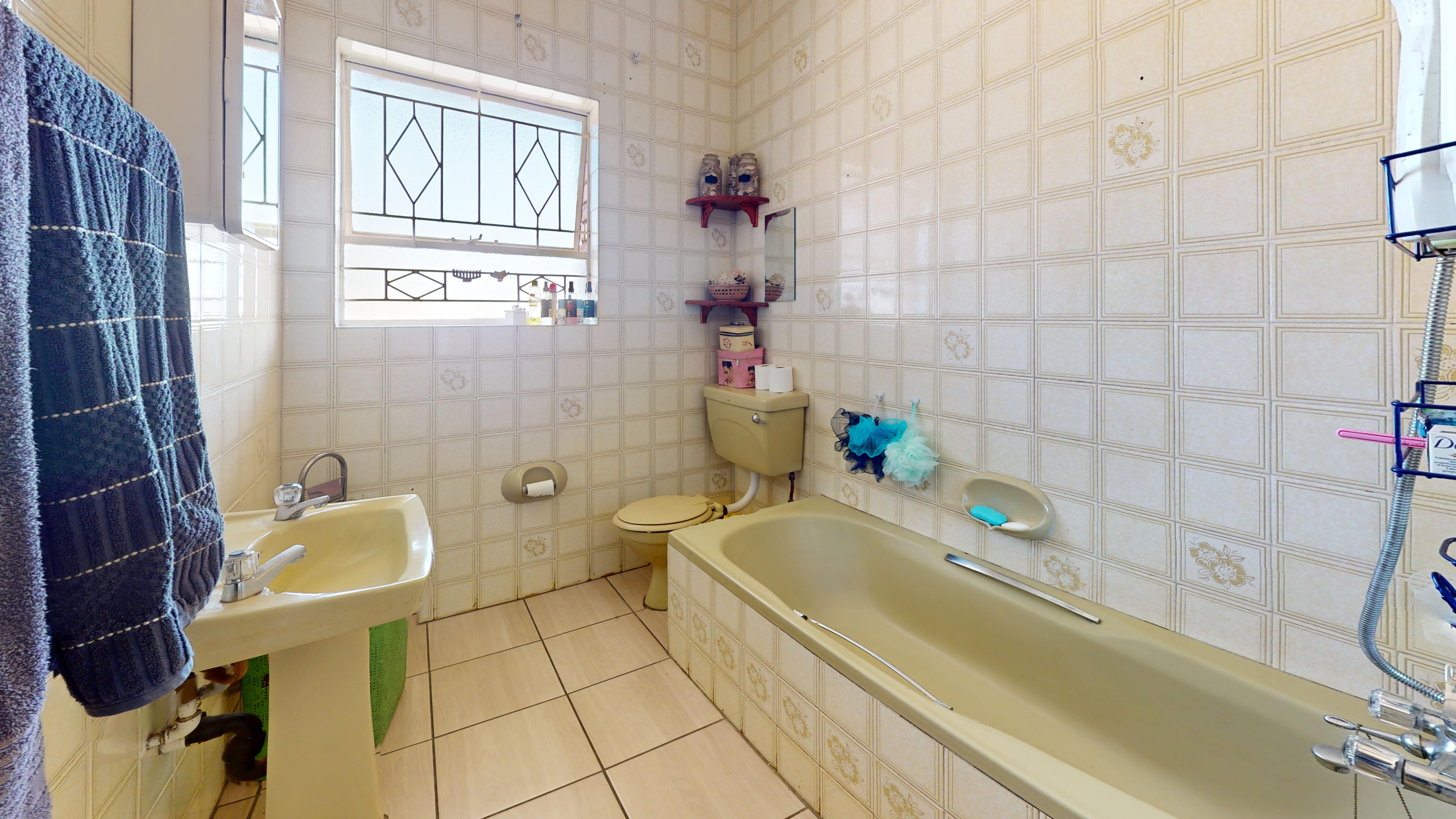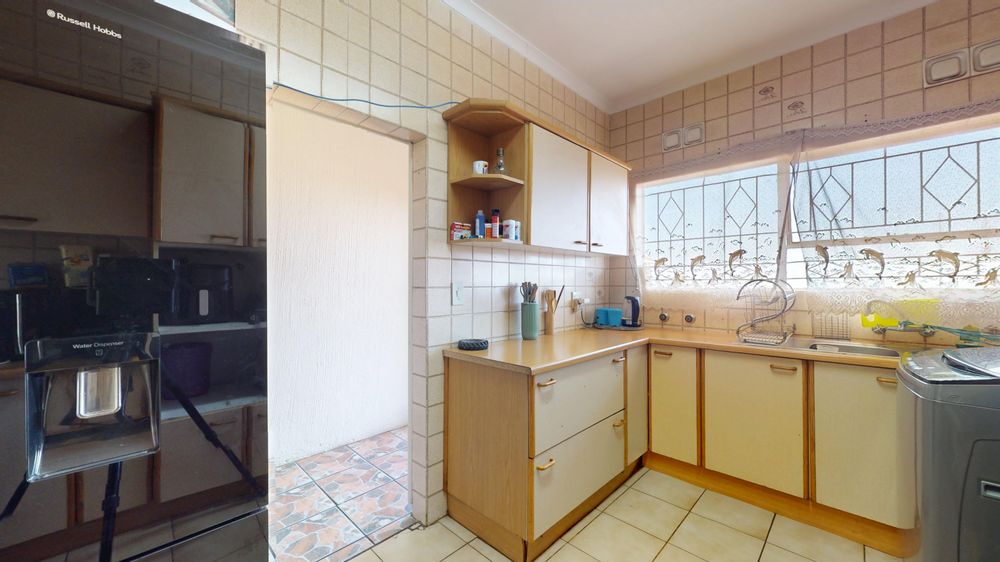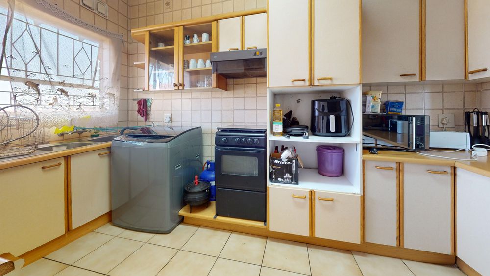 The property features three generously proportioned bedrooms, all with built-in cupboards for ample storage. A practical linen cupboard adds even more convenience. The two bathrooms make family living or hosting guests effortless.