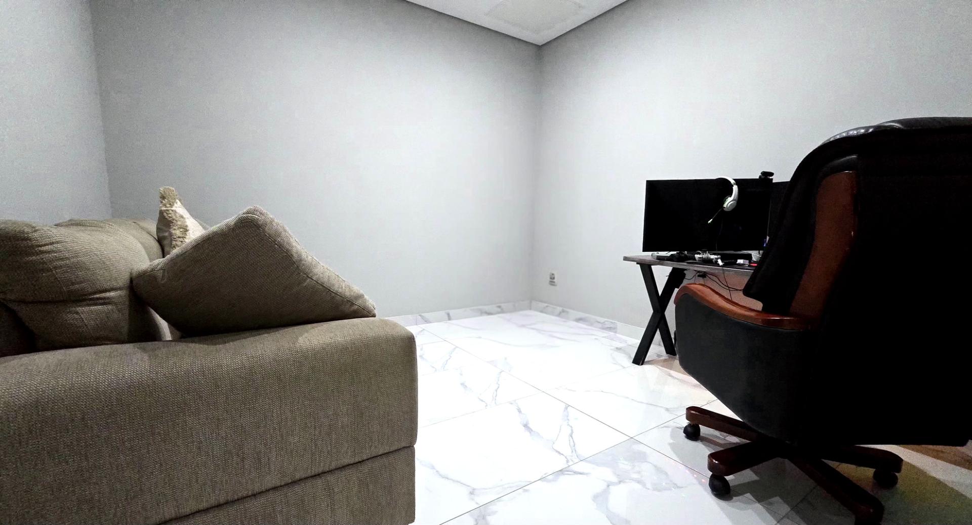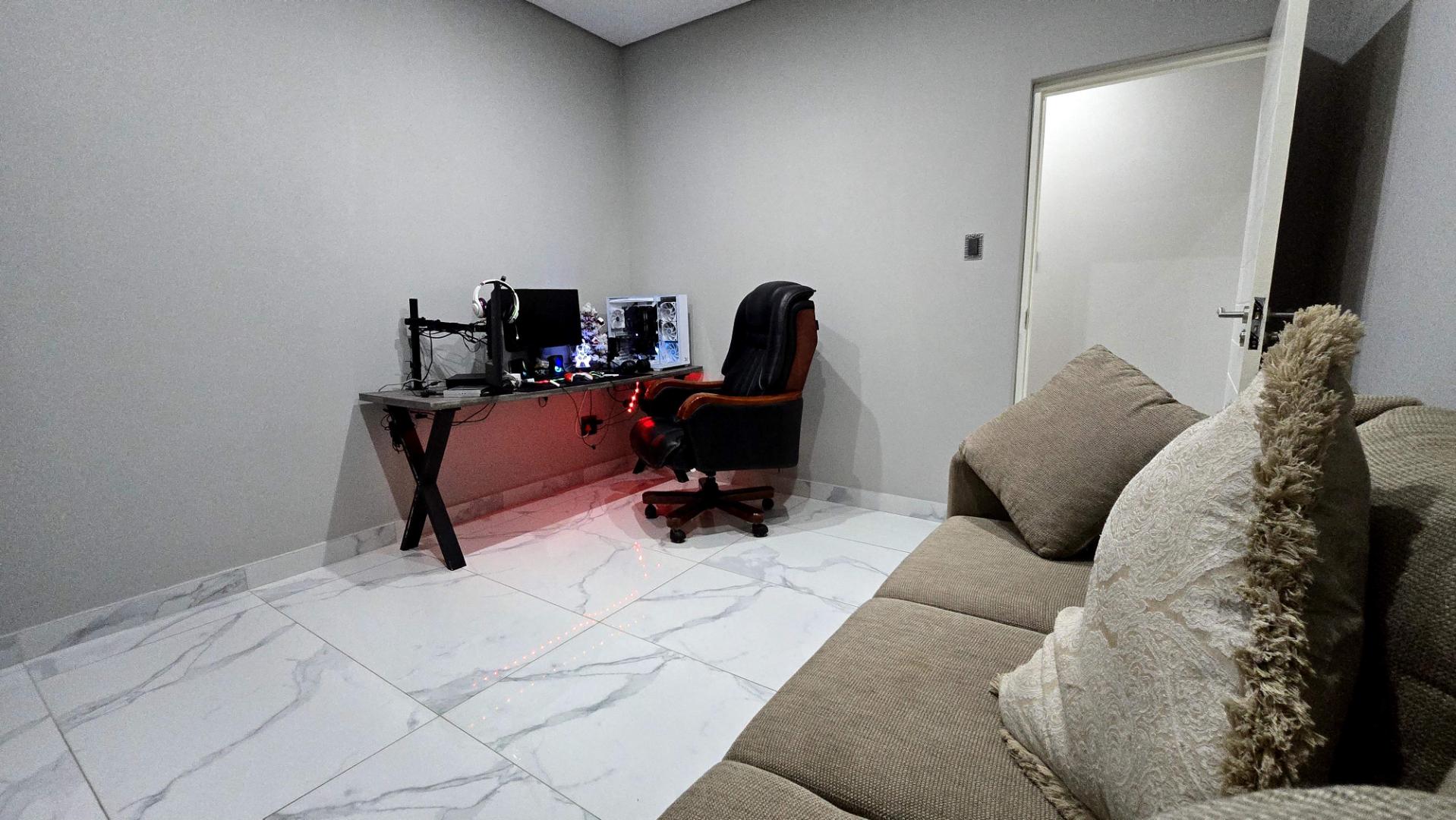 - Bedroom 1: Currently an office space with ample cupboard storage.