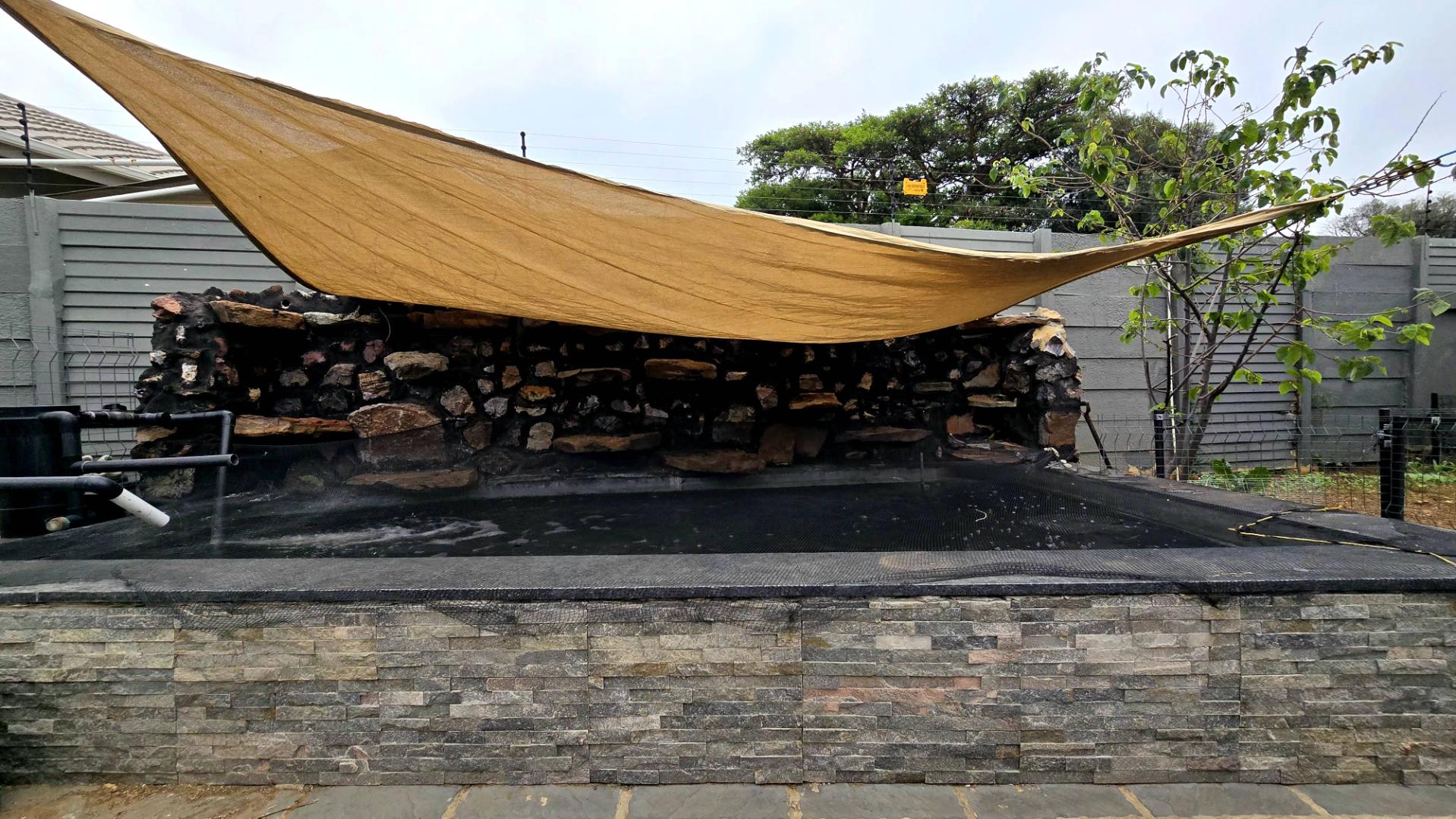 Outside, indulge in the tranquil koi pond and medium-sized pool, leading to an outdoor entertainment area complete with a bar and bathroom. A braai area and outdoor storage room make this space ideal for entertaining.