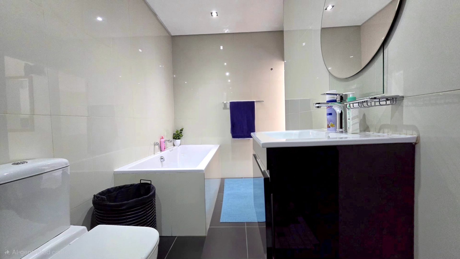 Bedrooms 1 and 2 share a sleek, modern full bathroom.