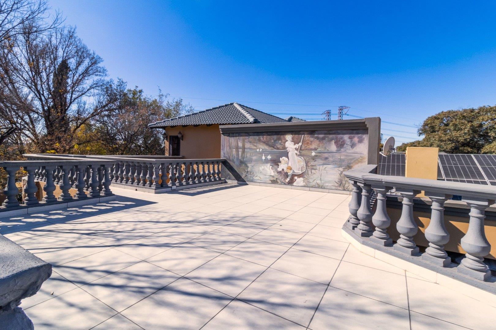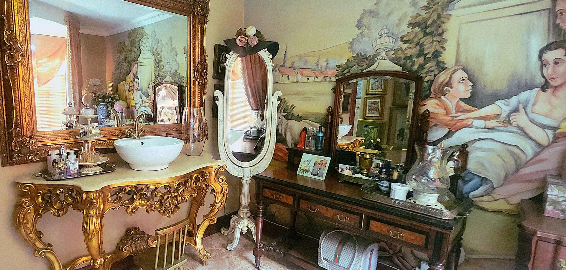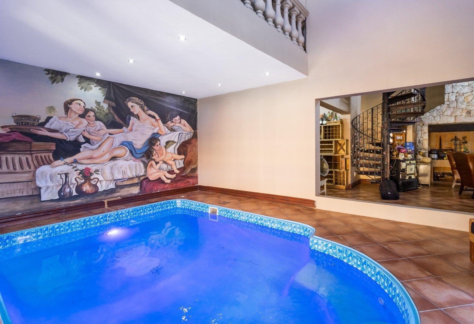The country-style kitchen will delight keen cooks and entertainers alike, featuring granite countertops, Smeg appliances, a separate scullery, and extensive bespoke cabinetry—designed and stained in Kuruman and installed in Alberton. Display niches are perfect for showcasing your Carrol Boyes pieces or Royal Albert tea set, while abundant storage keeps everything beautifully organized.