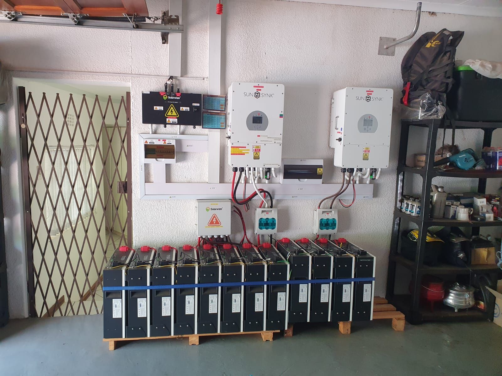 Three-Phase Solar: 24kW Sunsynk Inverter system (2x 12kW) with 60kW Lithium battery storage.