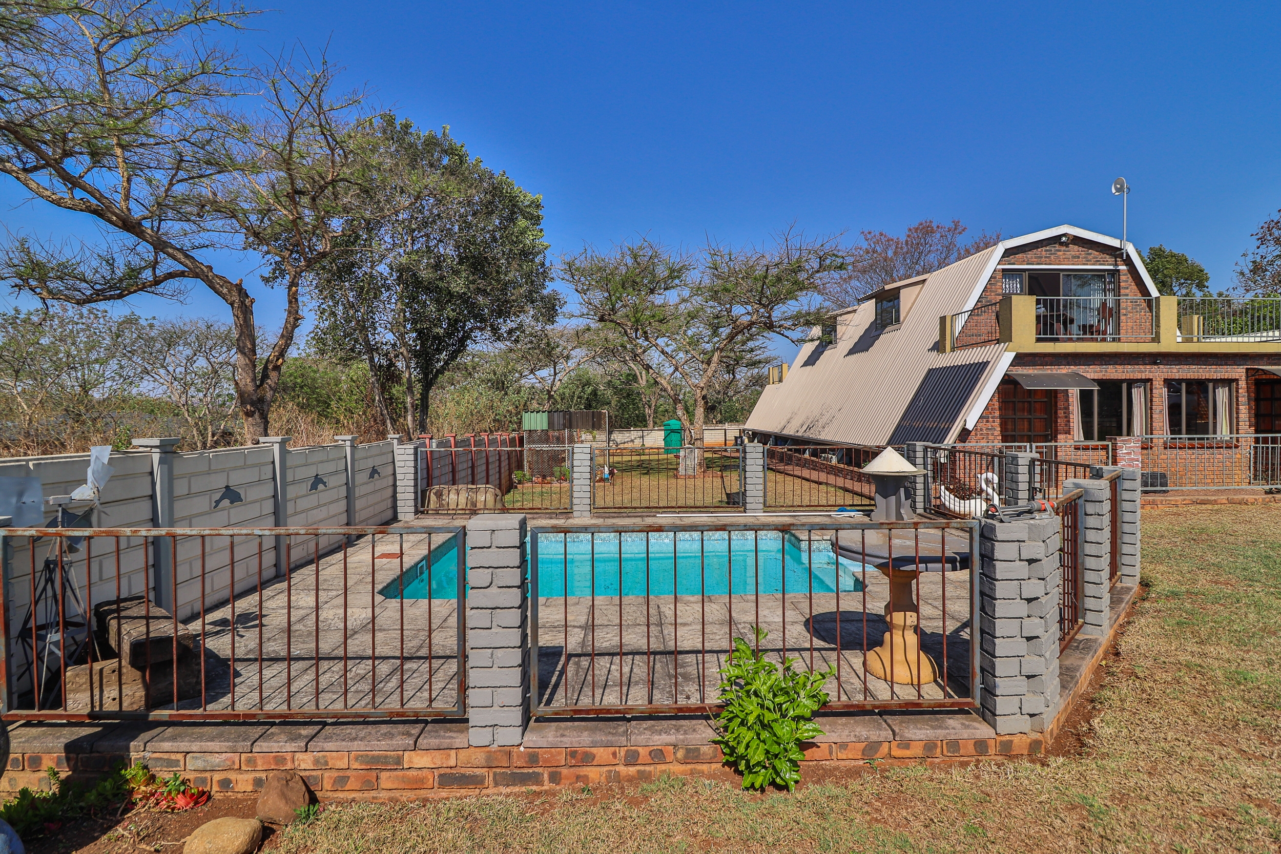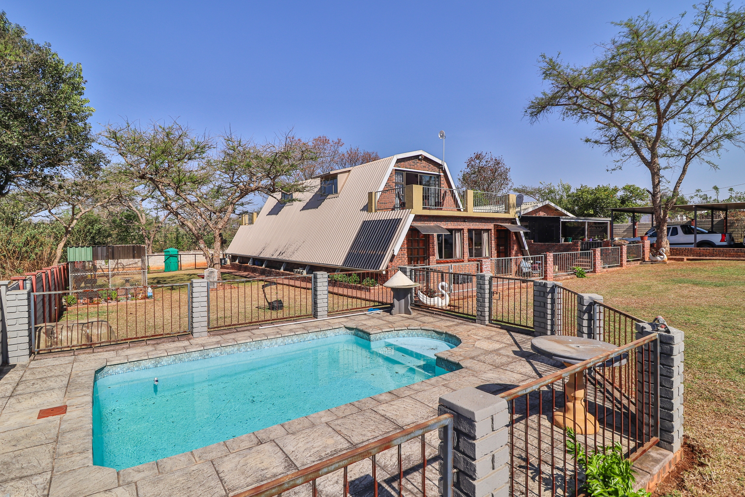 The property also includes a fully fitted granny flat with one bedroom and a bathroom with a shower. Outside, enjoy a sparkling pool, a metallic carport for four cars, and a fully fenced yard with an electric gate. All windows, doors, and trellidors are secured for added safety. Conveniently located within easy commuting distance to Pietermaritzburg.