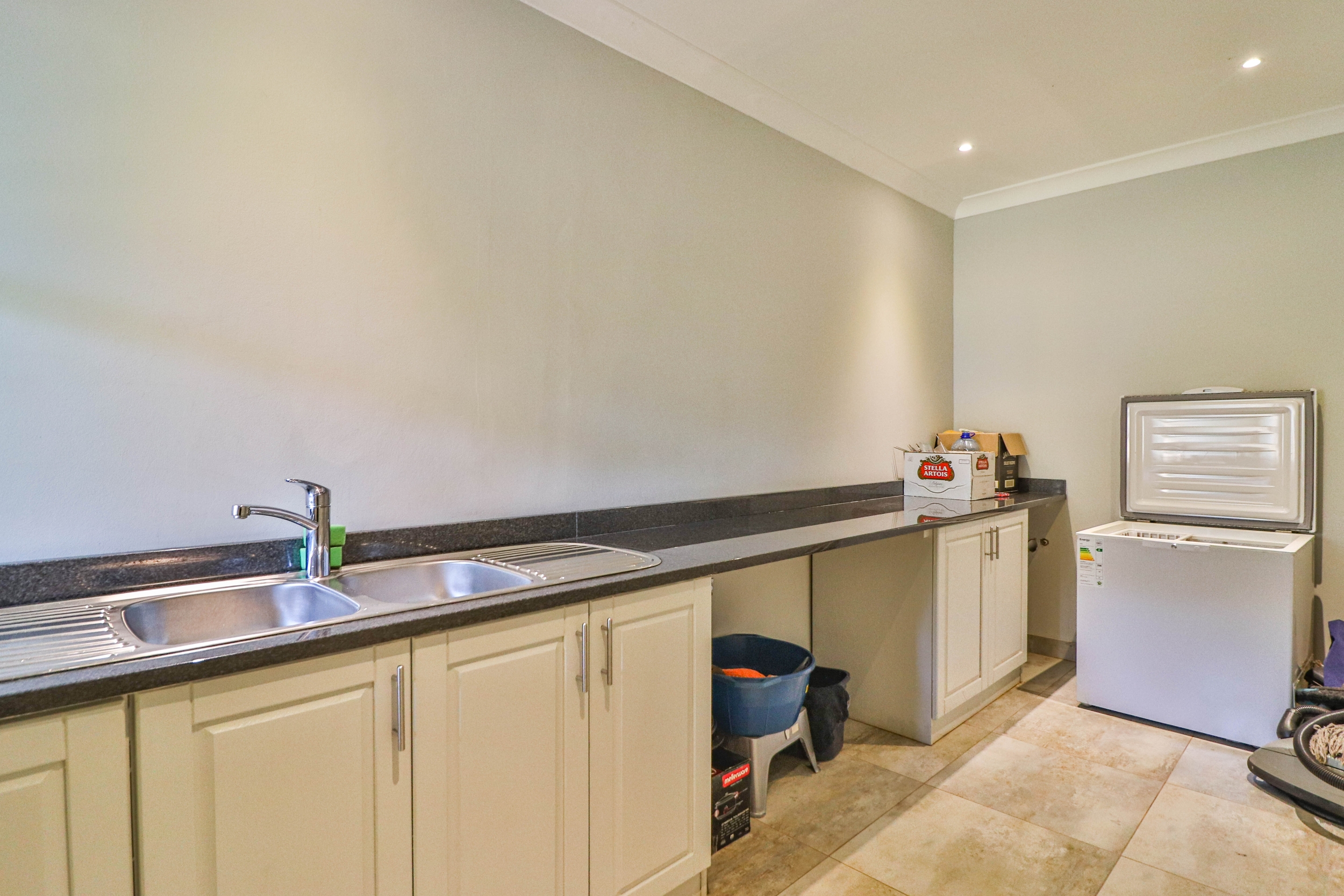 The 467 sqm double-storey home features 4 spacious bedrooms and 3.5 bathrooms. The upstairs bedroom is complemented by a cosy pyjama lounge with serene views of the dam, creating a peaceful retreat.