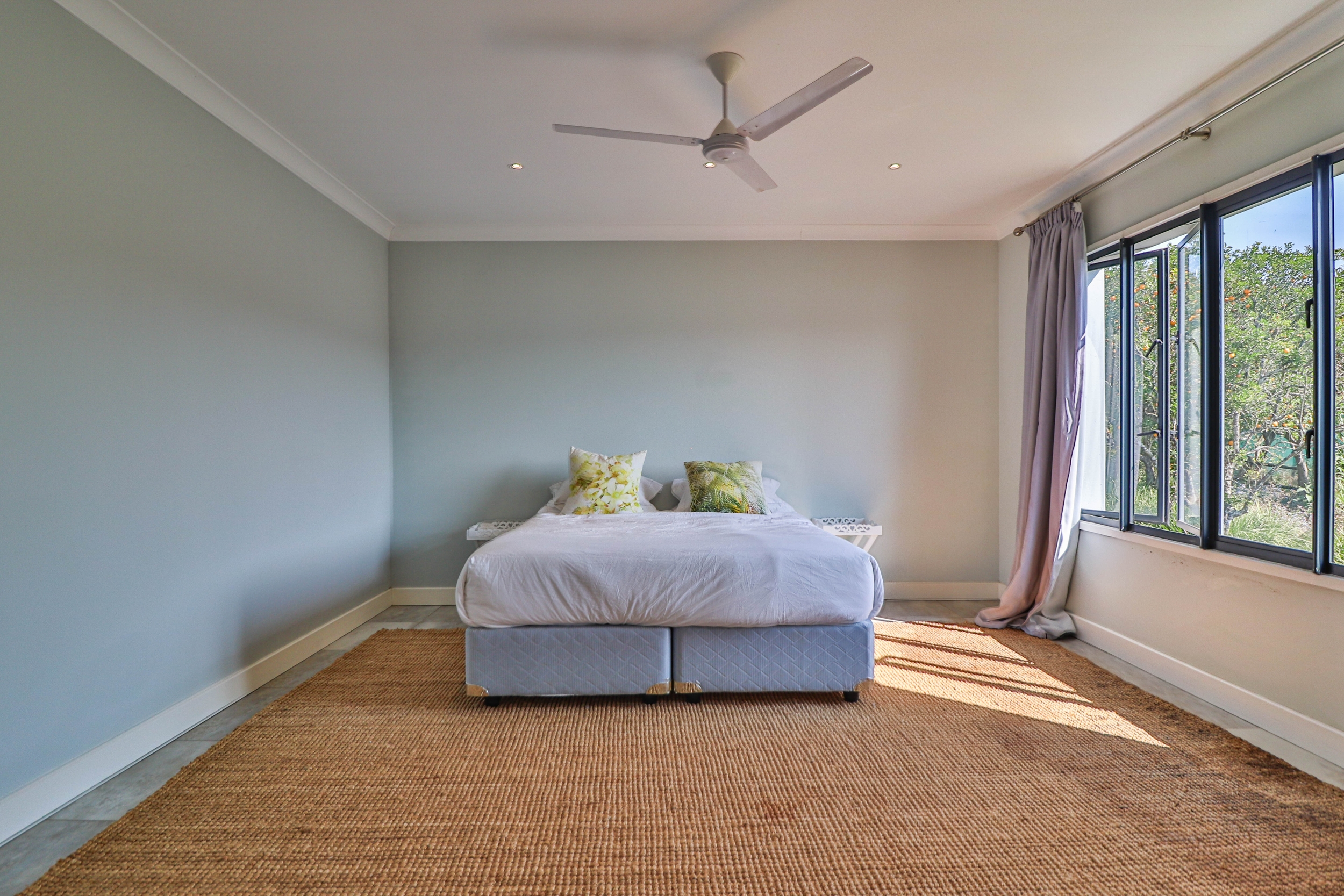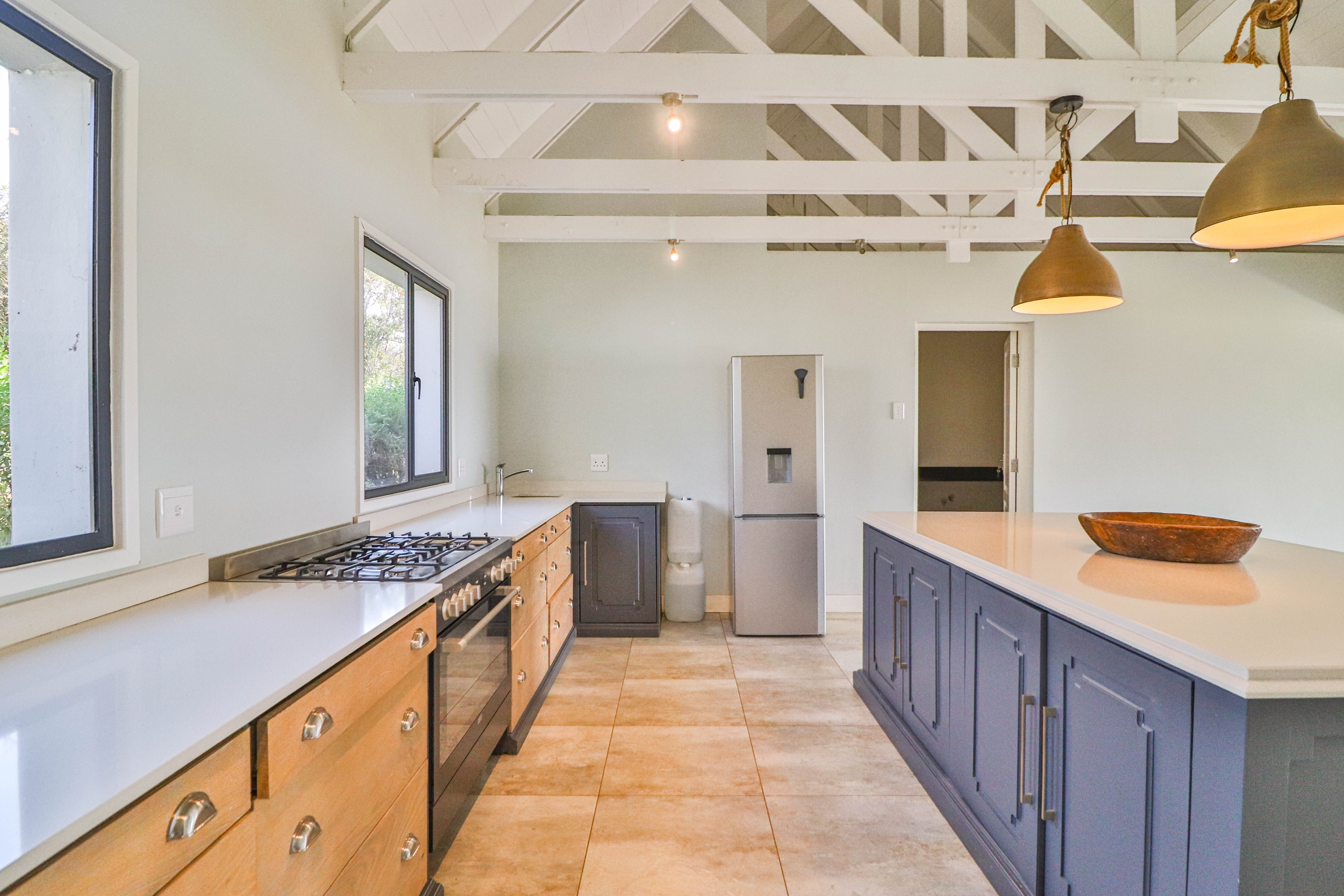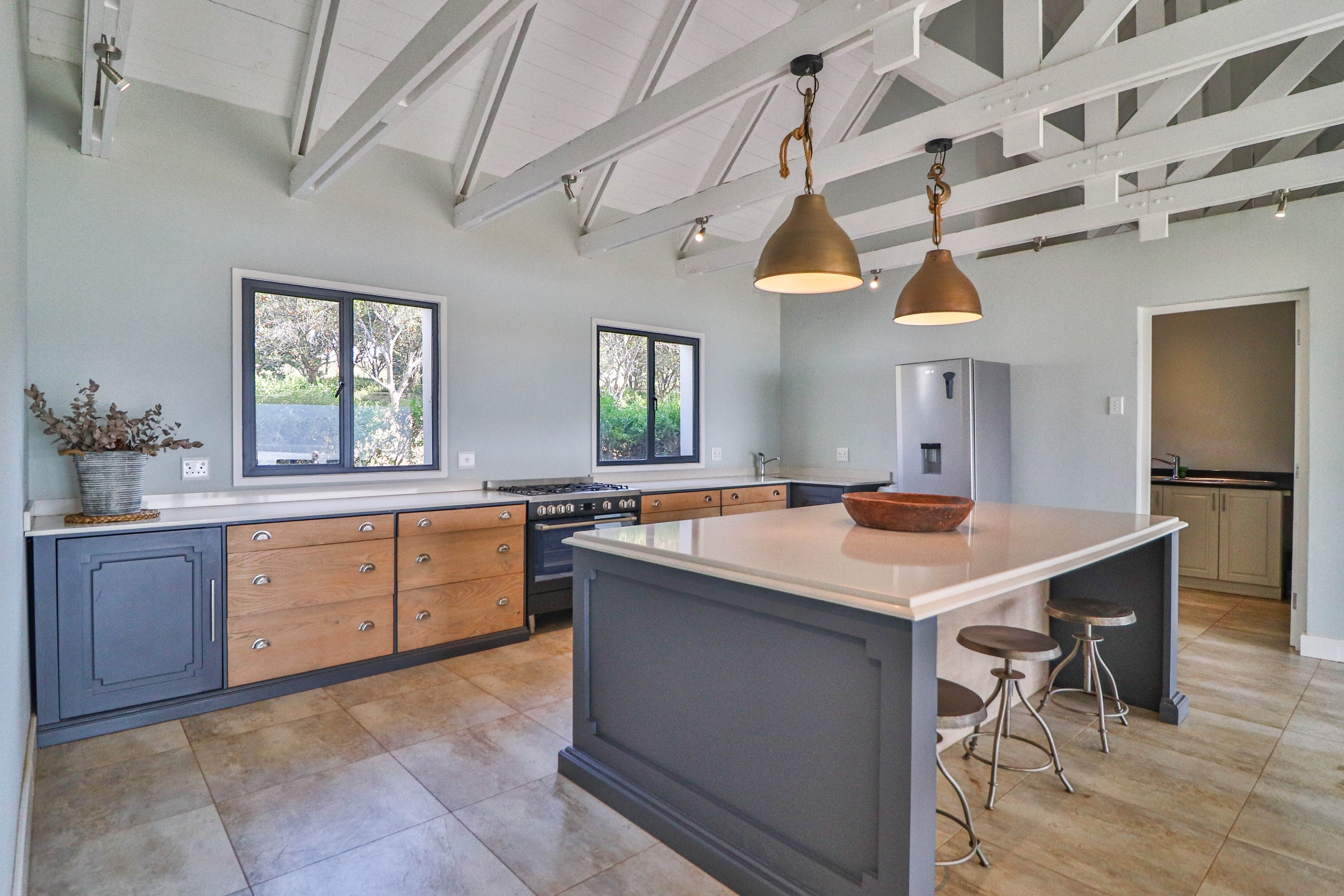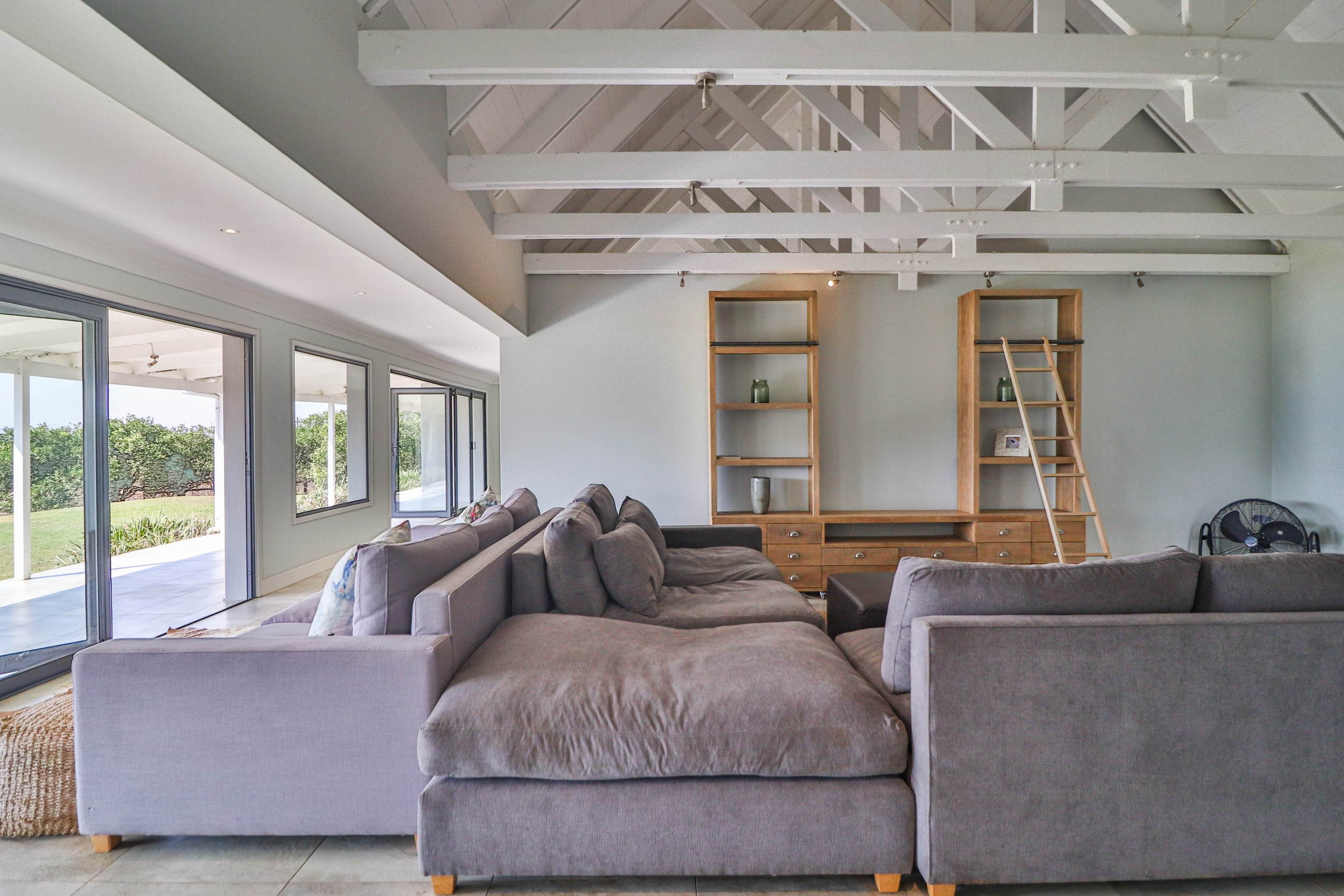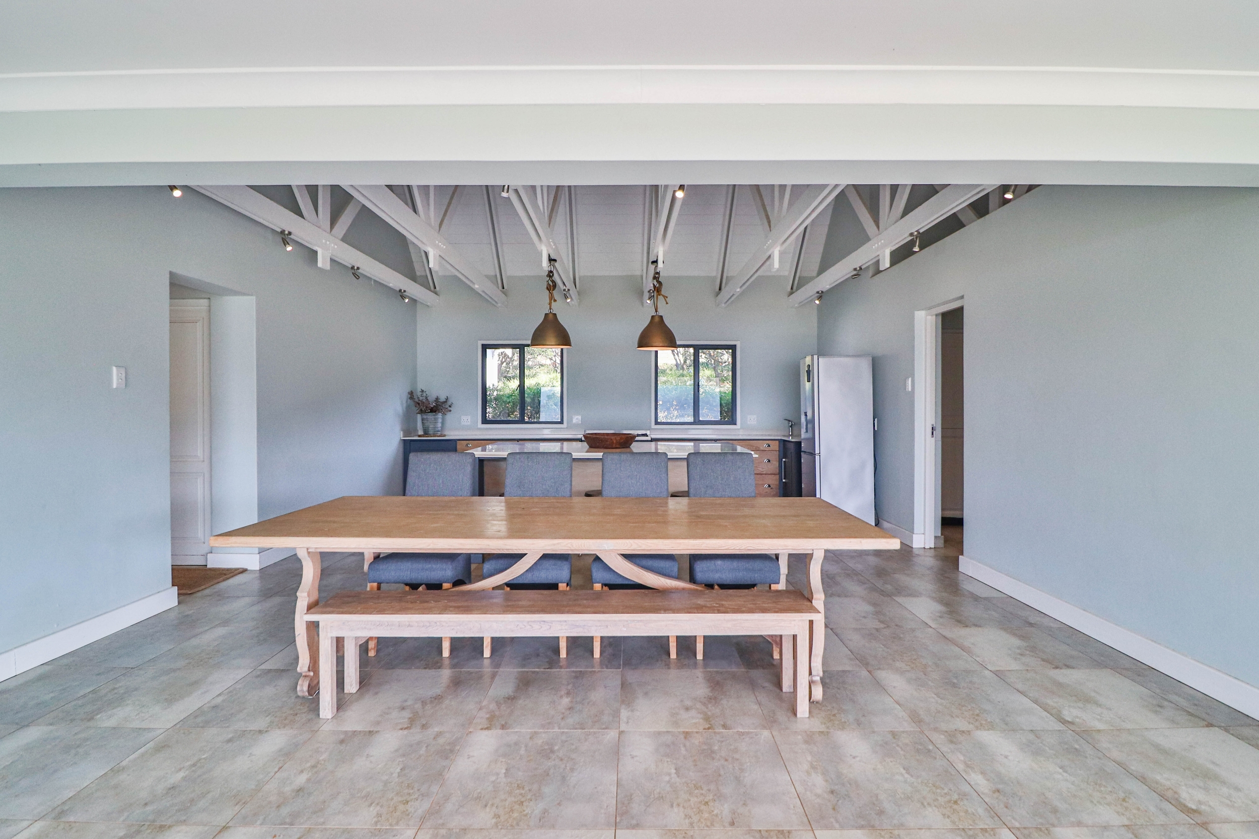 The open-plan kitchen, dining, and living areas seamlessly flow onto a covered verandah, ideal for entertaining guests or enjoying quiet moments outdoors.