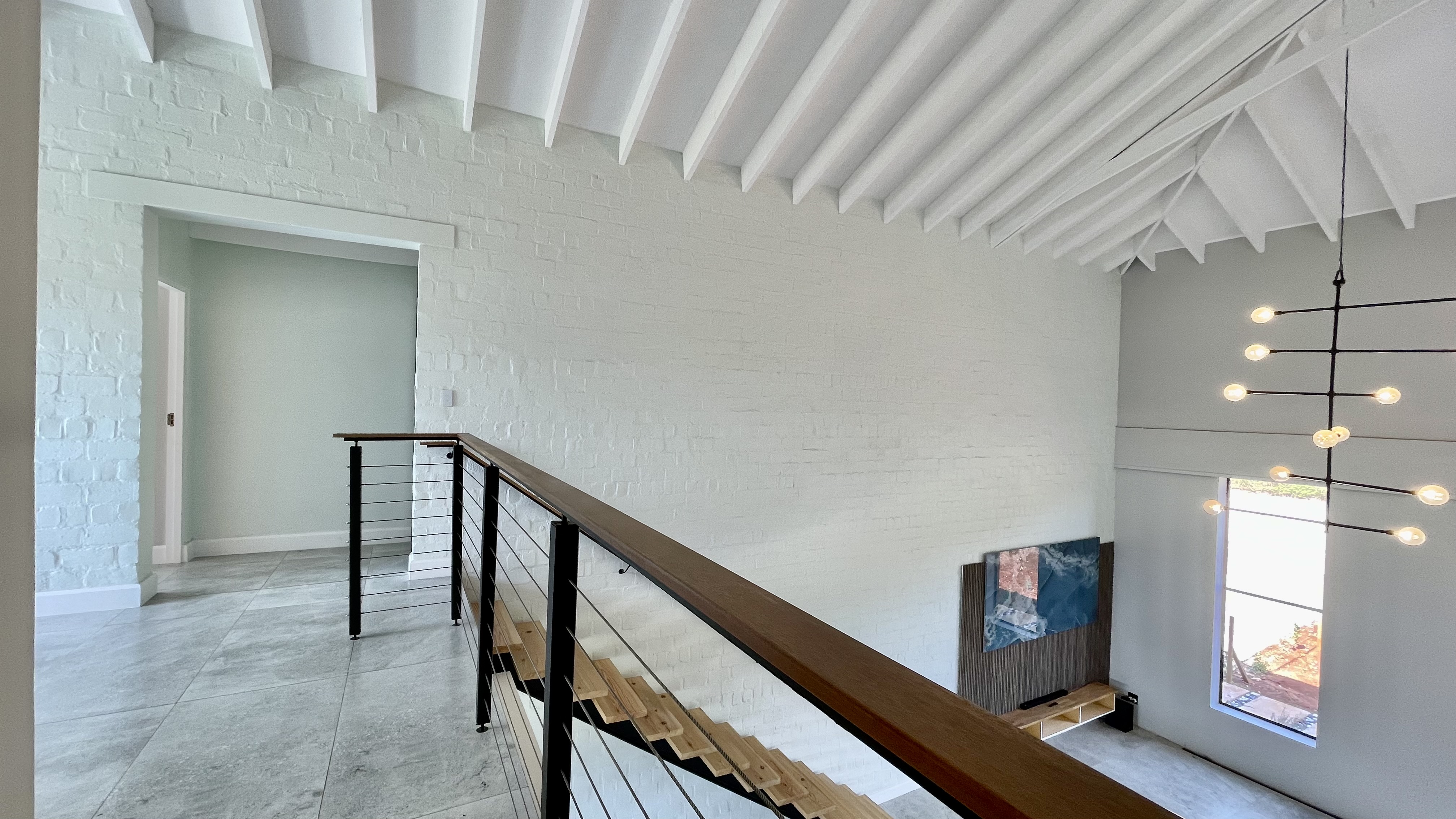 Upstairs, a generous landing overlooks the living space below and offers the flexibility of a pajama lounge, private relaxation area, or even an intimate bar space. Every detail has been thoughtfully considered to combine comfort with high-end functionality.