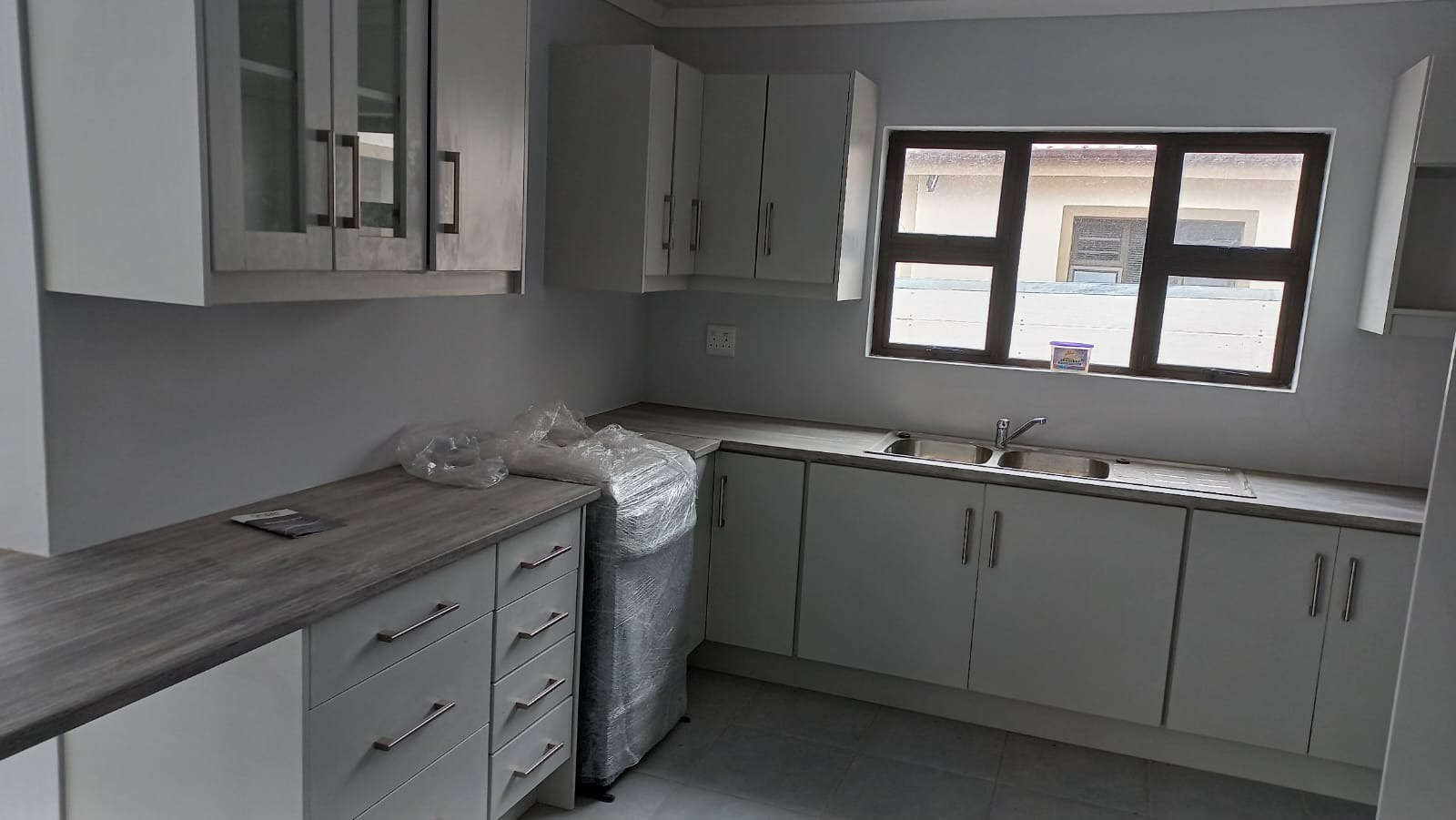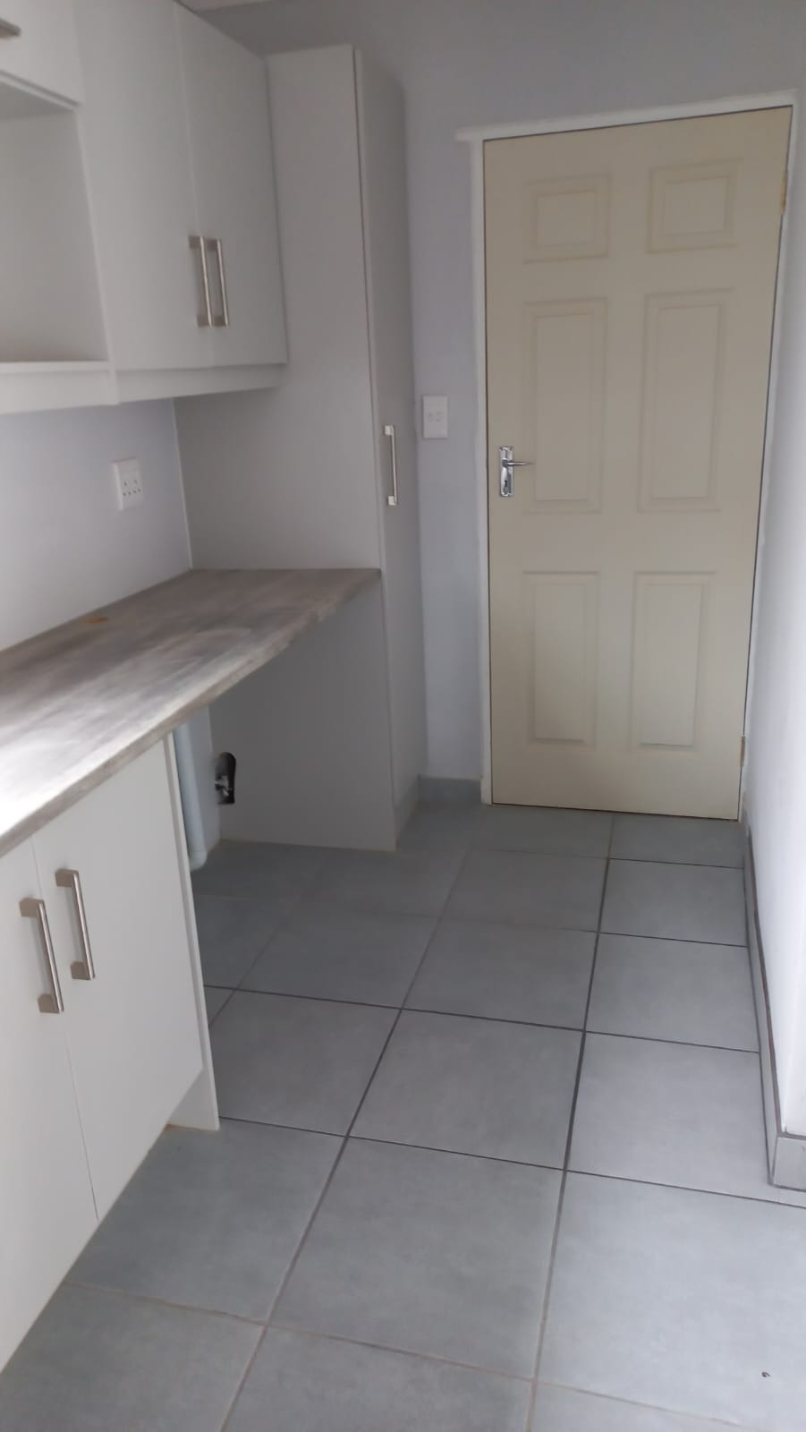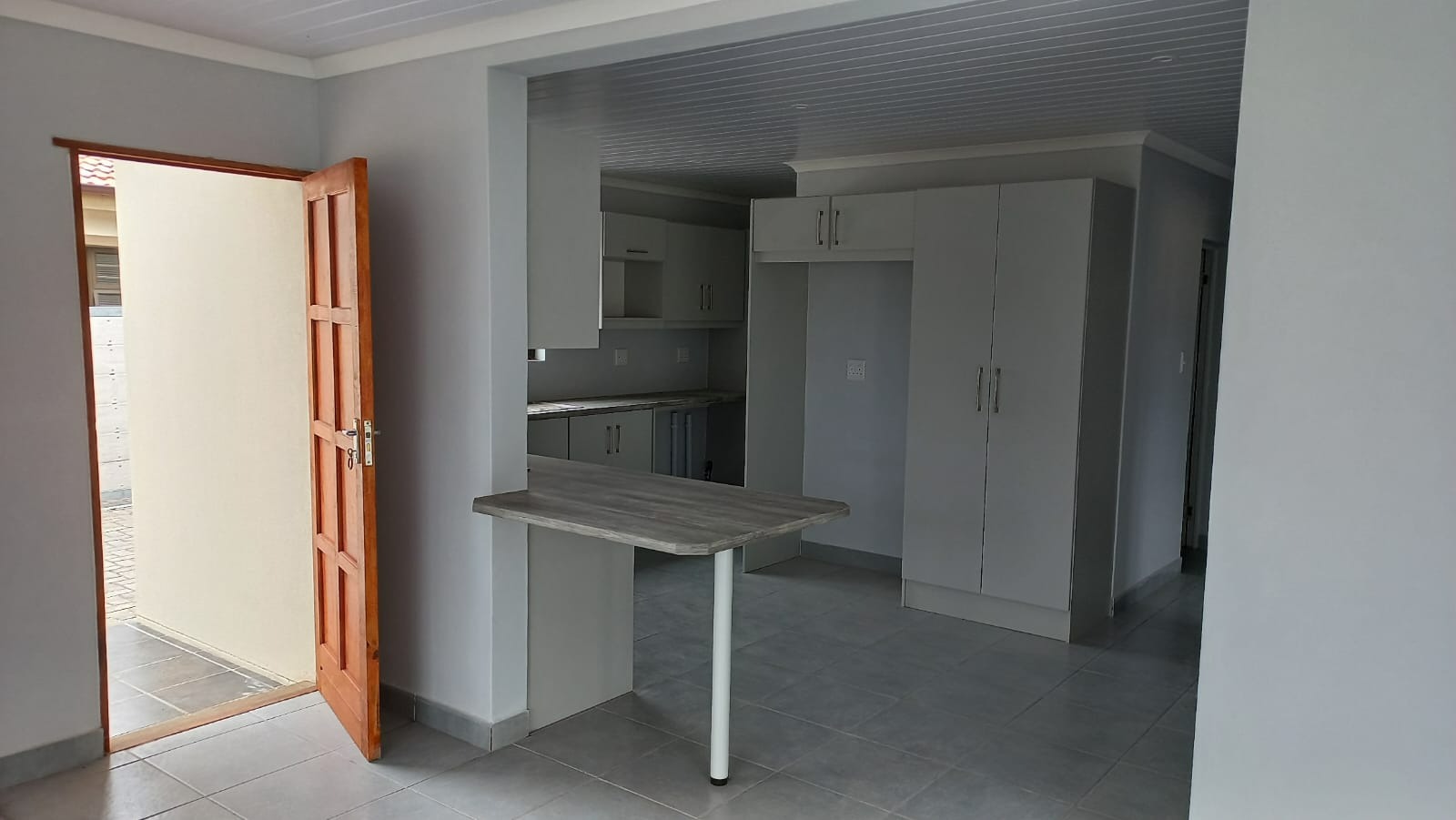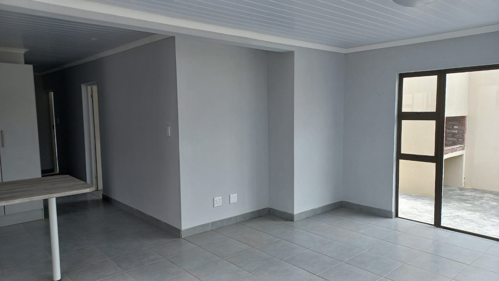 Open-plan living area with sliding doors leading to a built-in braai outside, perfect for entertaining guests.