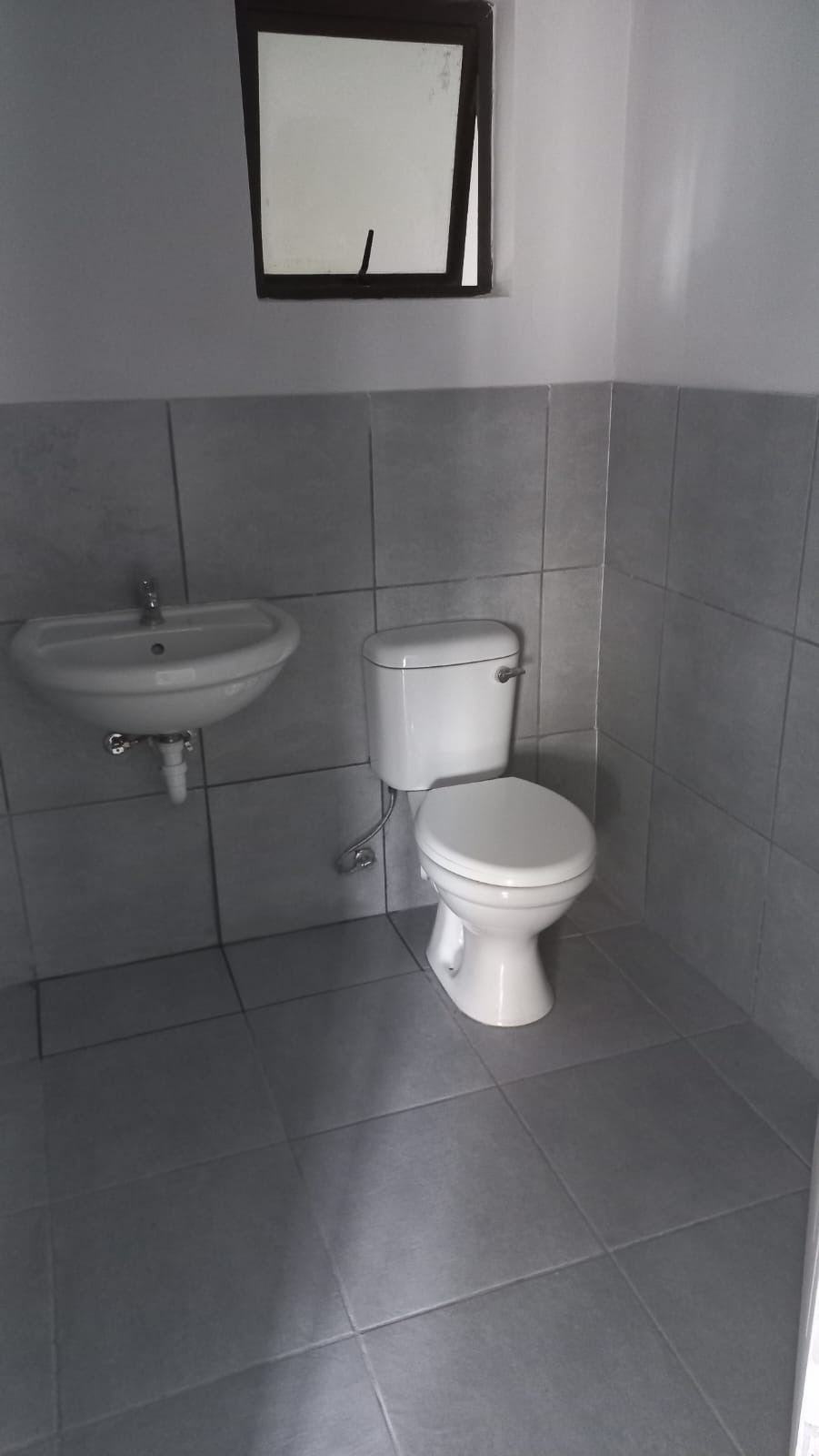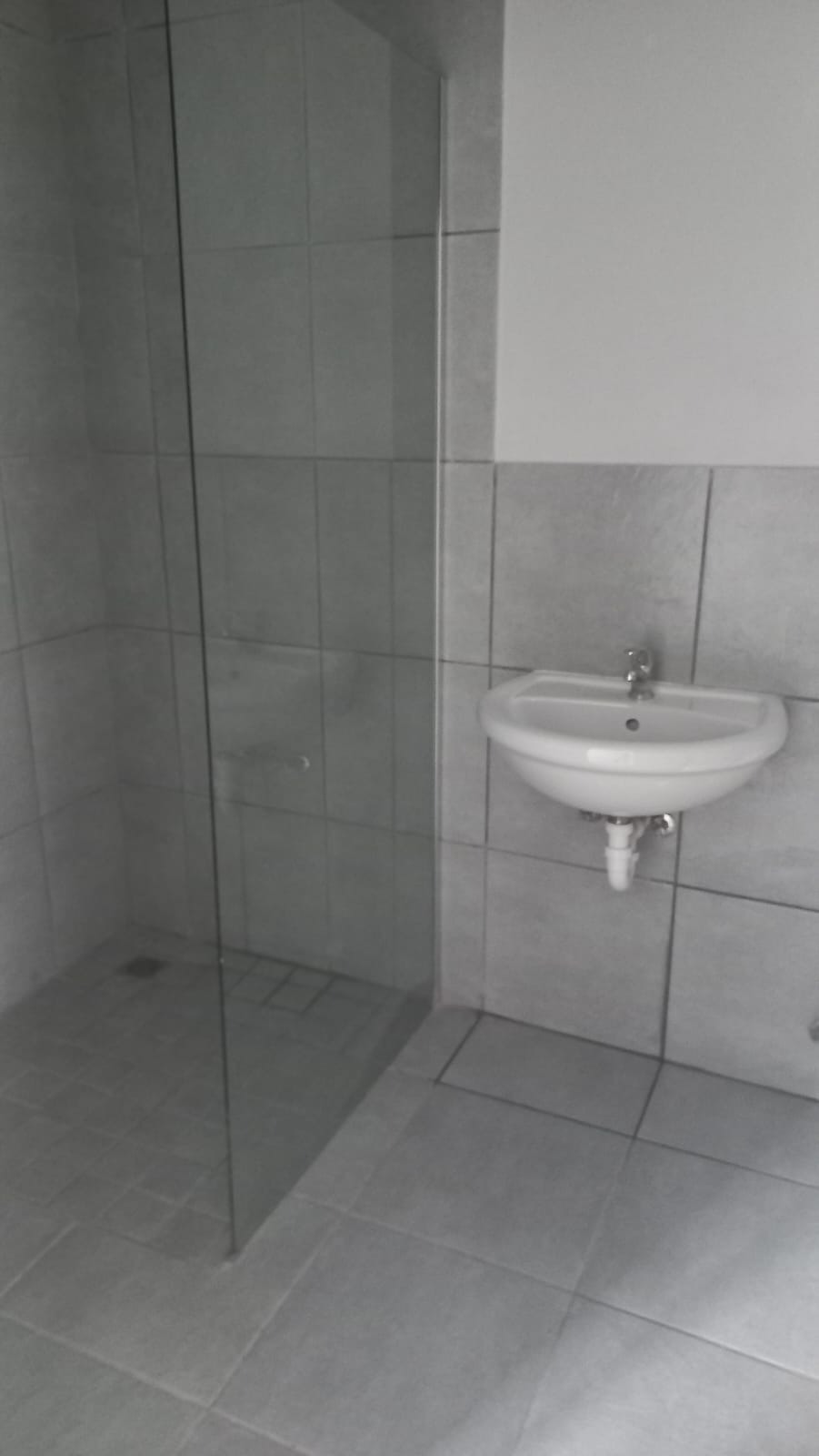 Second bathroom with a modern shower, basin, and toilet, designed for convenience.