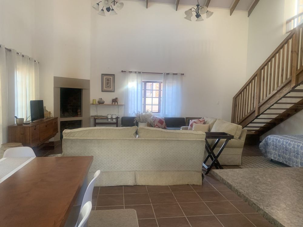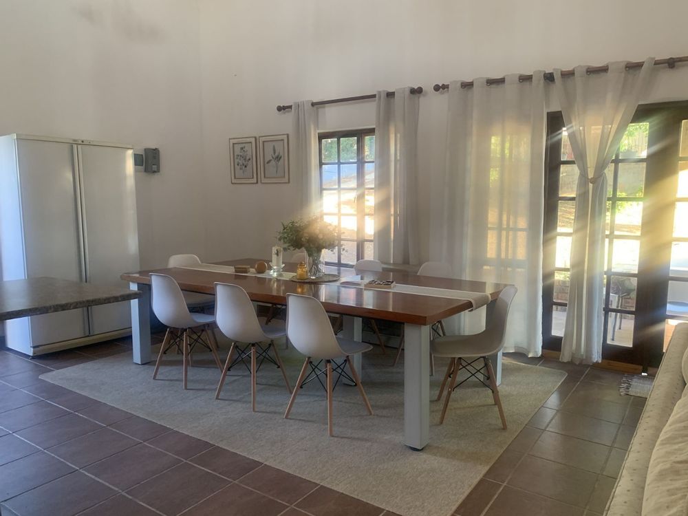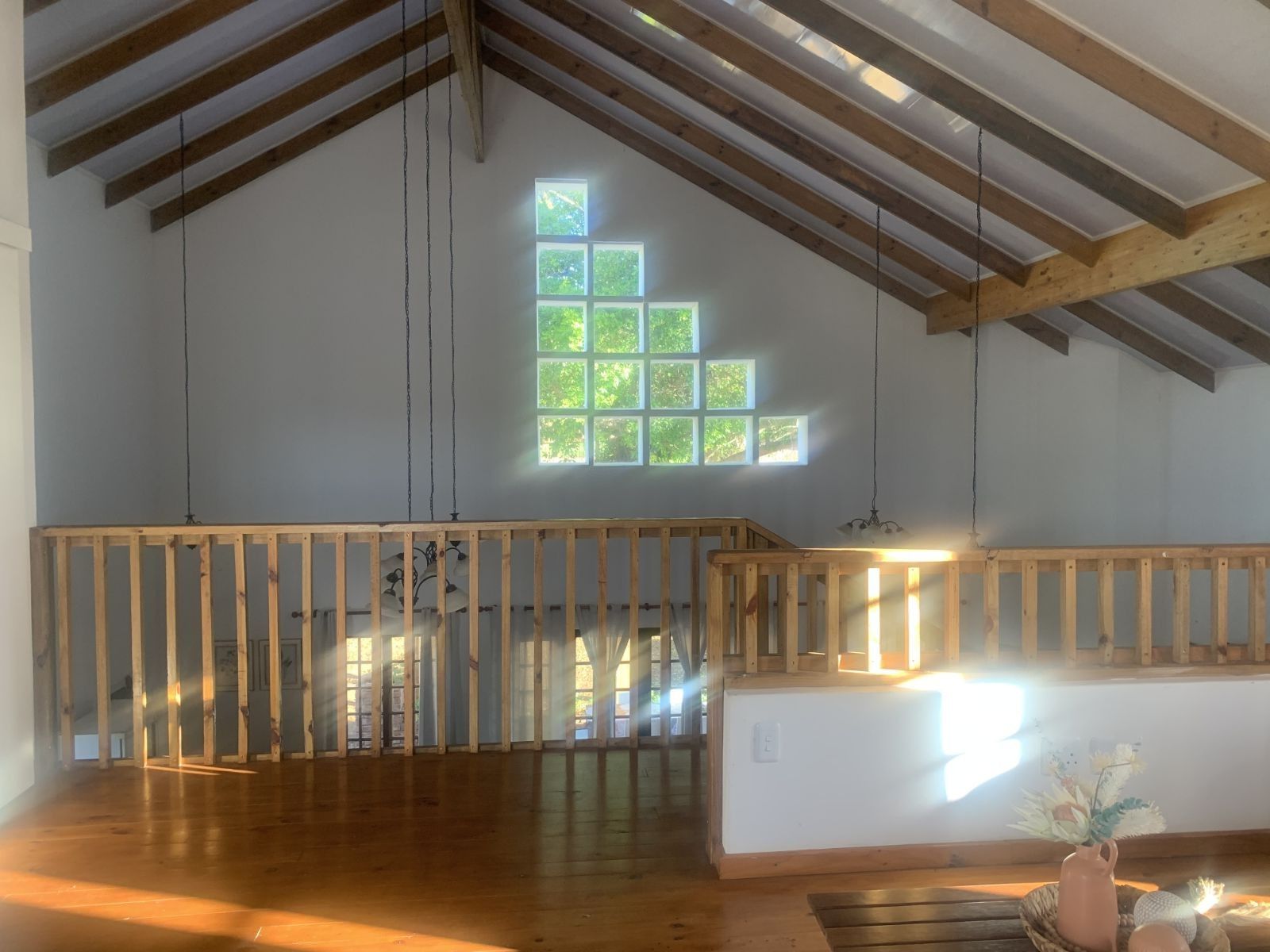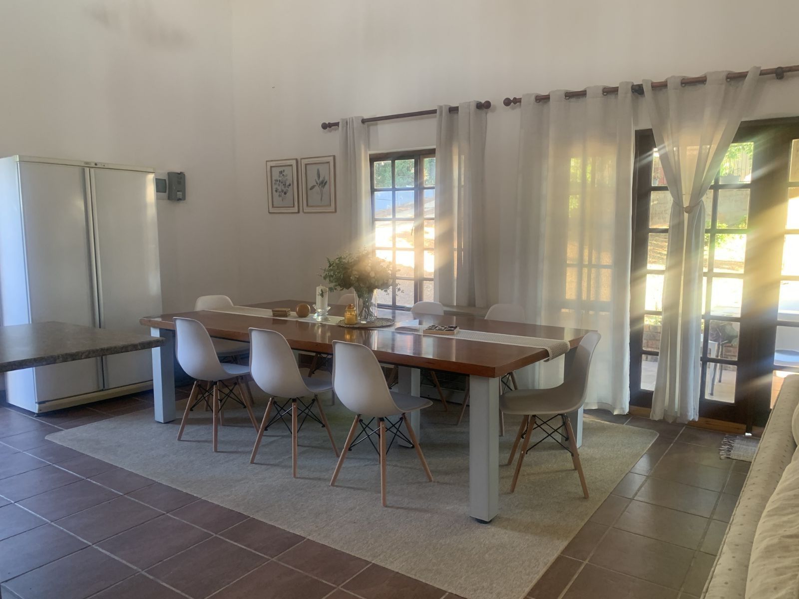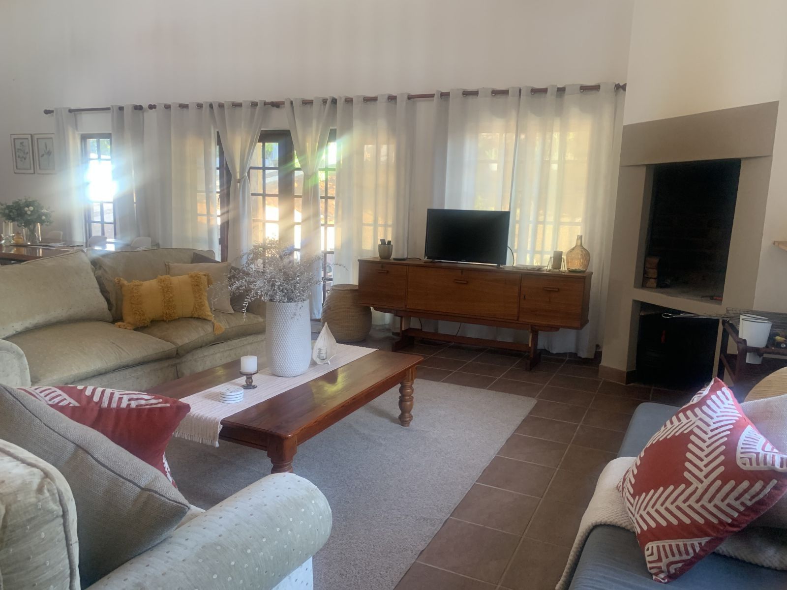 Sunlight floods the interior through charming wooden-framed windows a, creating a warm and welcoming atmosphere throughout. The spacious open-plan layout connects the living and dining areas seamlessly, with a built-in fireplace to keep thigs cozy on cooler days-perfect for family time or quiet evenings in.