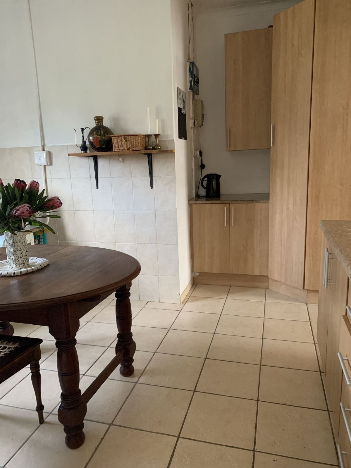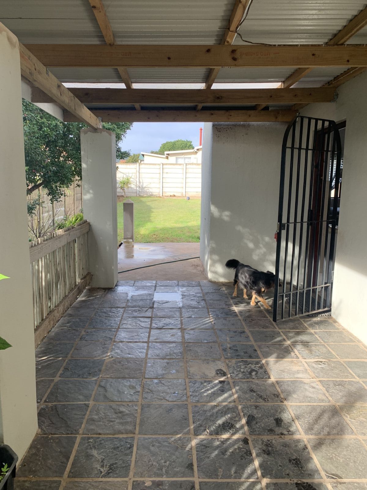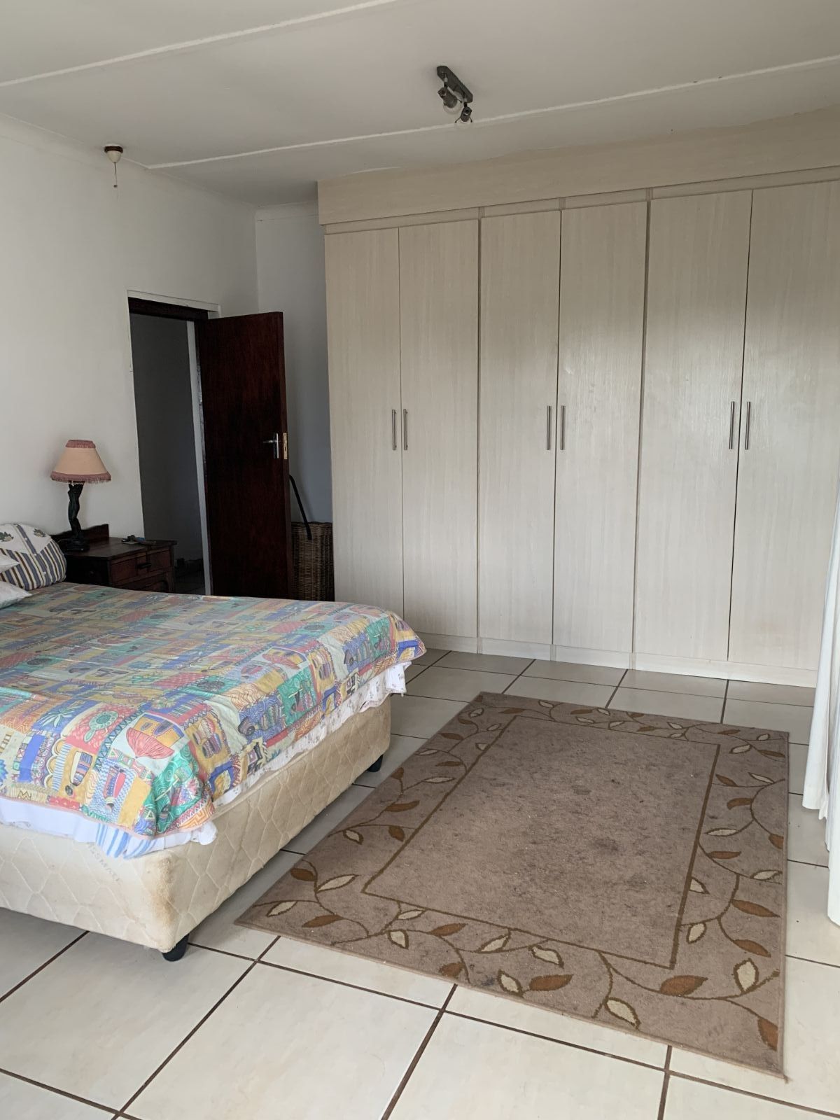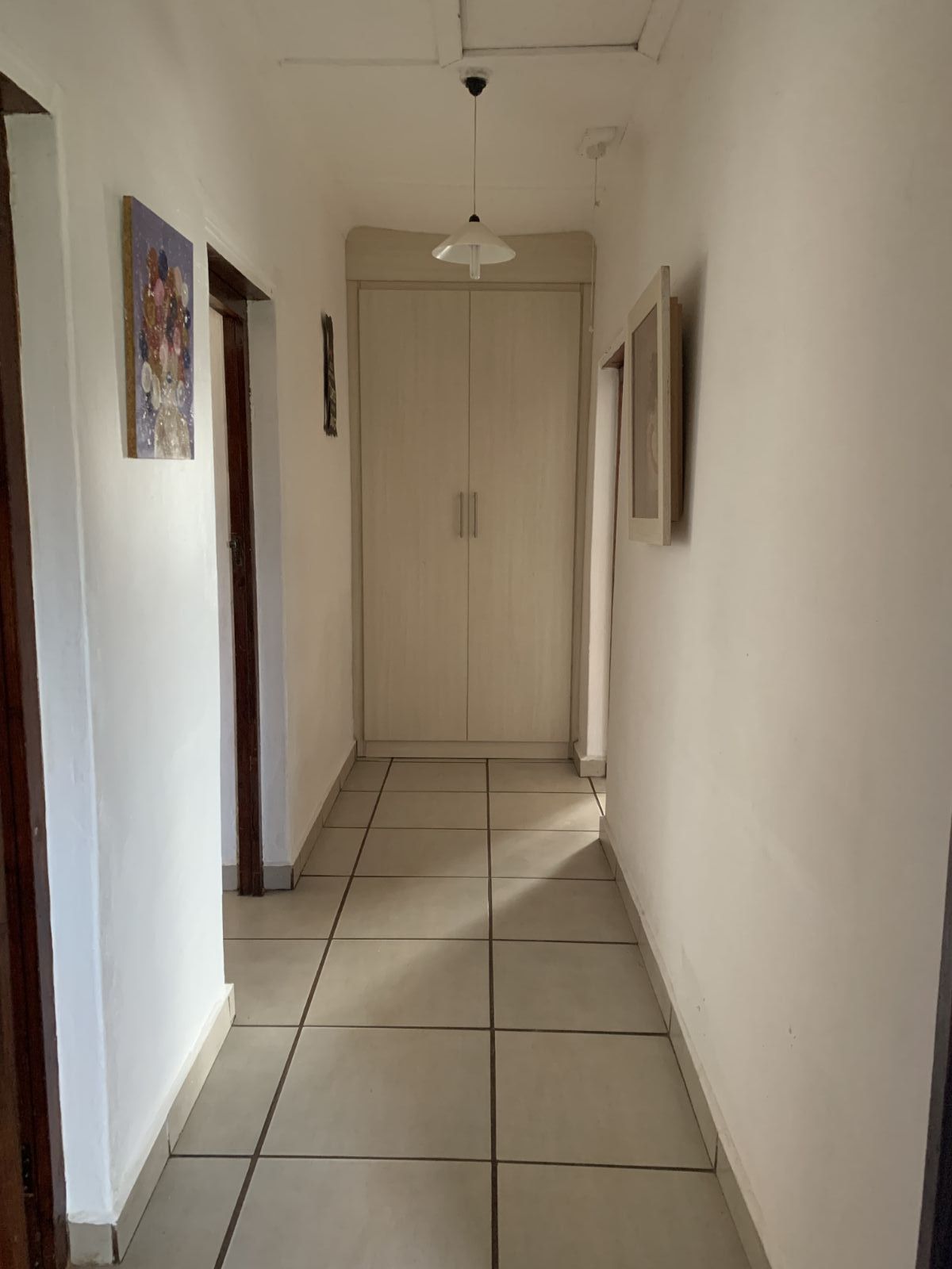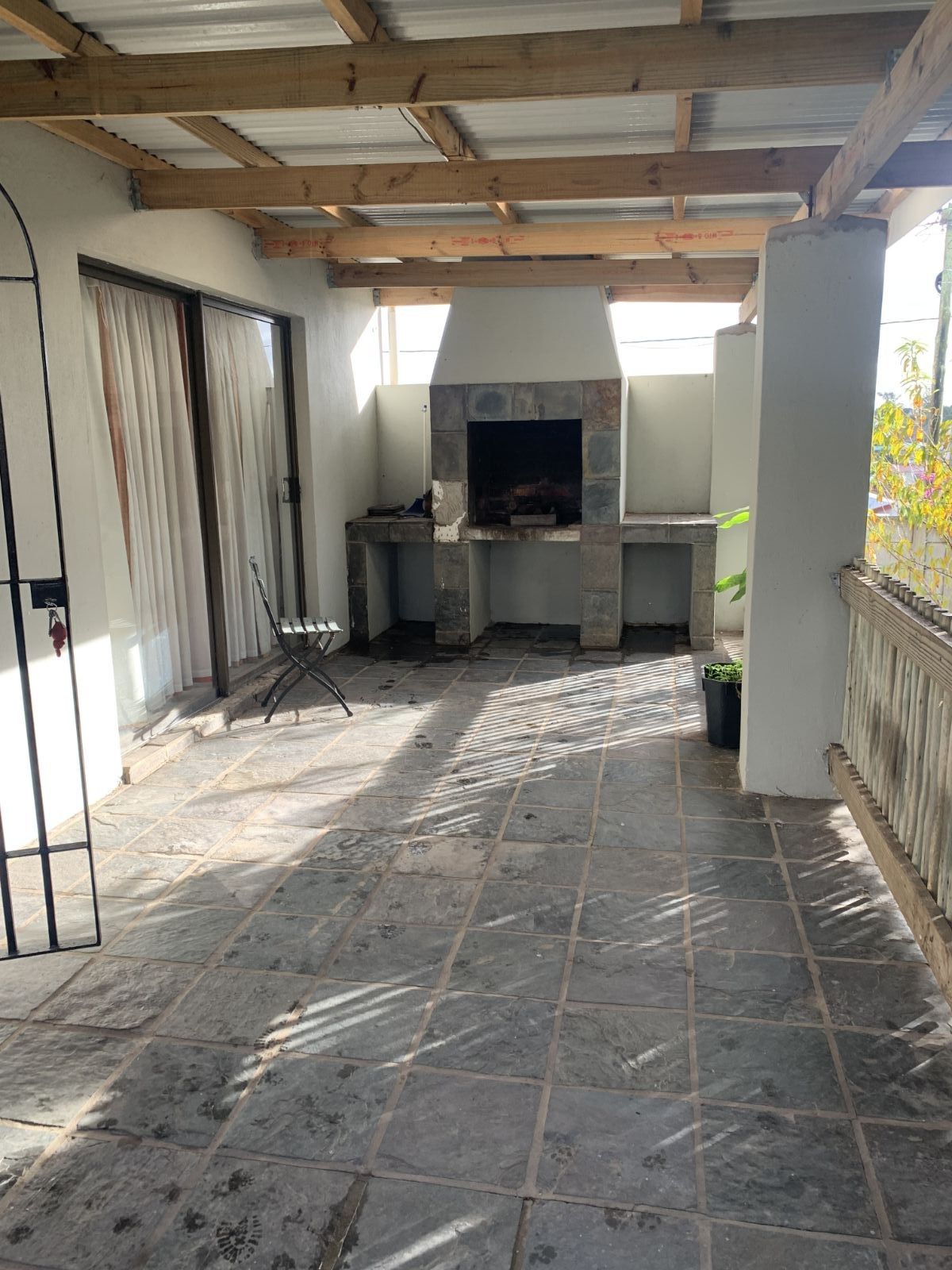 The comfortable lounge opens up through sliding doors onto a lovely patio area with built-in braai - perfect for relaxing or entertaining guests. The kitchen is functional and well laid out and stove is included, and there's a convenient hallway cupboard for extra storage