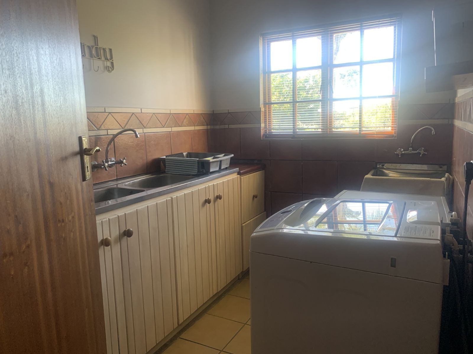 As you enter, a cozy lounge welcomes you, followed by a generous family lounge and dining area. The kitchen flows into a lovely indoor braai room, opening up to the garden - ideal for entertaining. A separate scullery and laundry area includes a double sink, extra basin, and ample space for appliances.