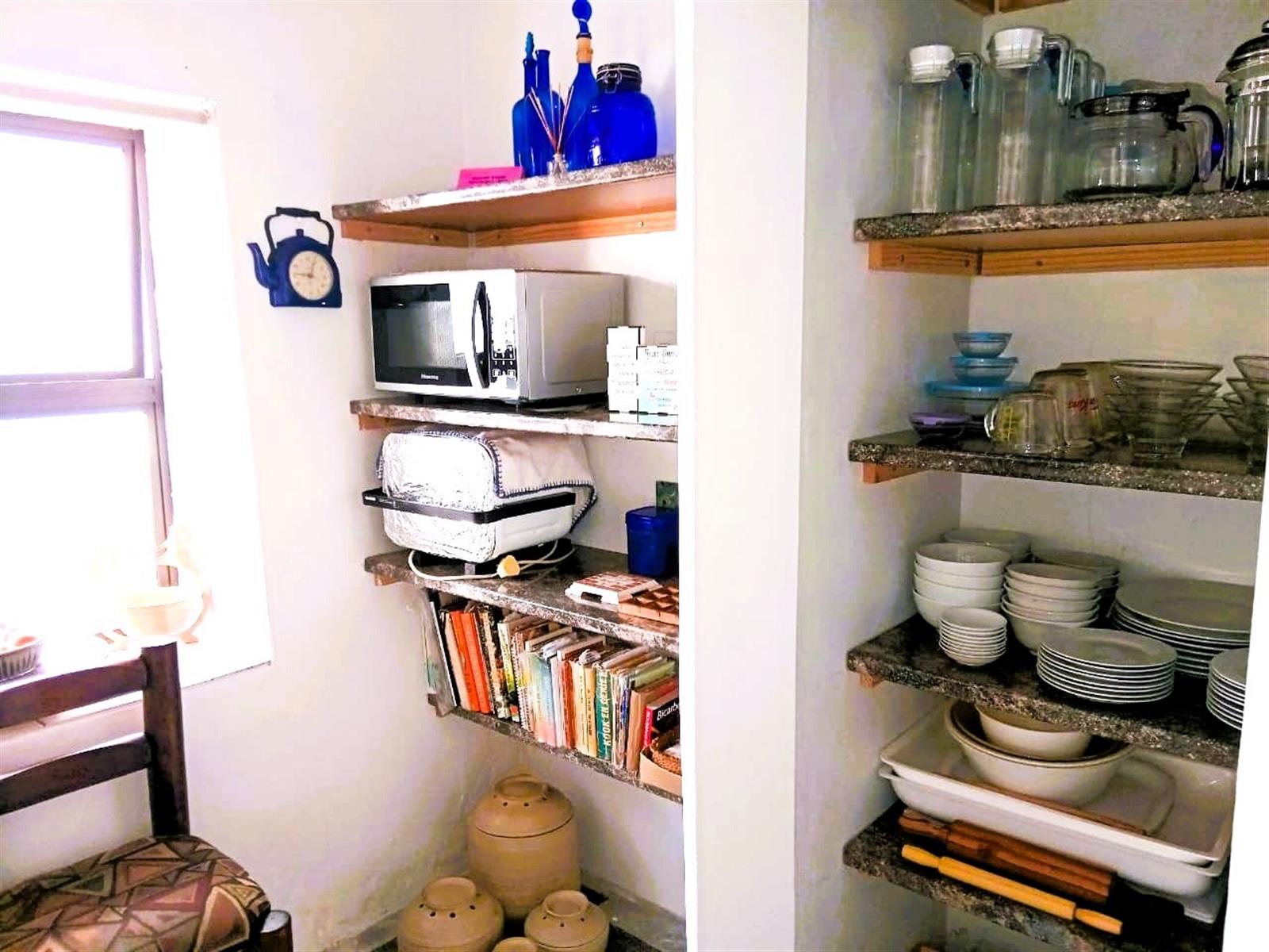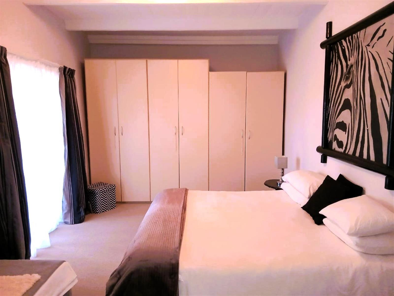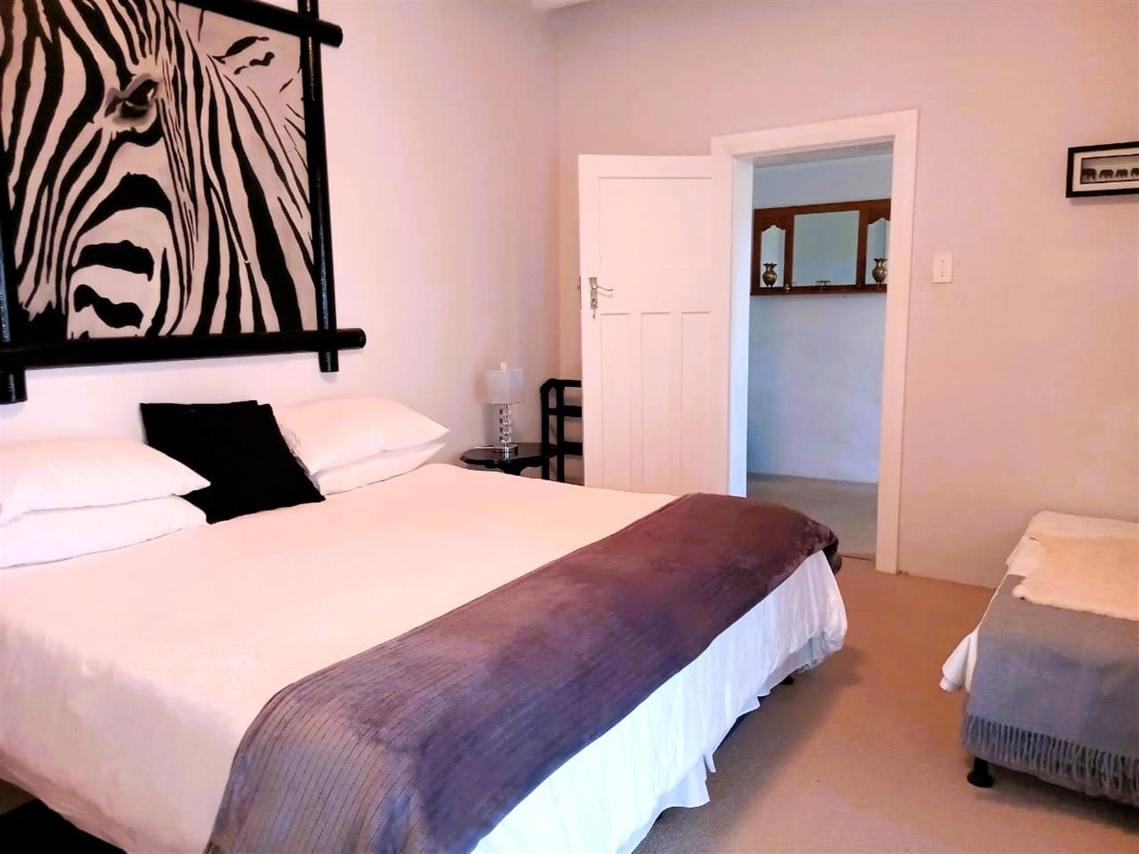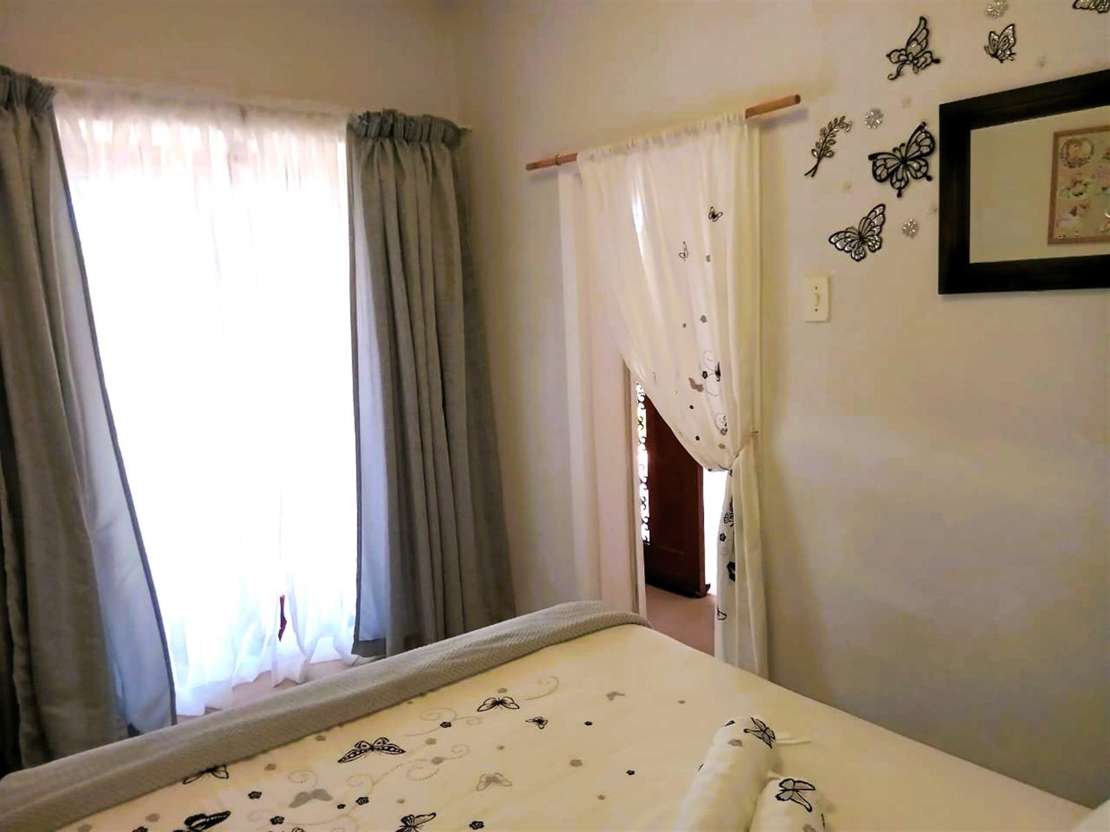 The home’s north-facing layout fills the rooms with natural light throughout the day. Three bedrooms are located within the main house, two of them exceptionally spacious with ample built-in cupboards, while the fourth bedroom — privately positioned near the front stoep — is perfect for guests, an independent young adult, or even a rental suite. (All materials for a future en-suite bathroom are already included.)