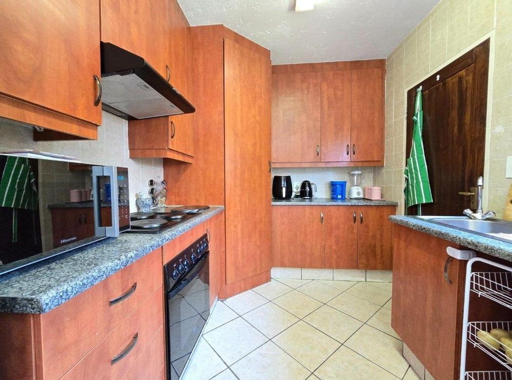Outdoor living is a breeze with a private, pet-friendly garden perfect for relaxation or entertaining. This home is also highly secure, boasting burglar bars throughout and Trellidoors for added peace of mind.