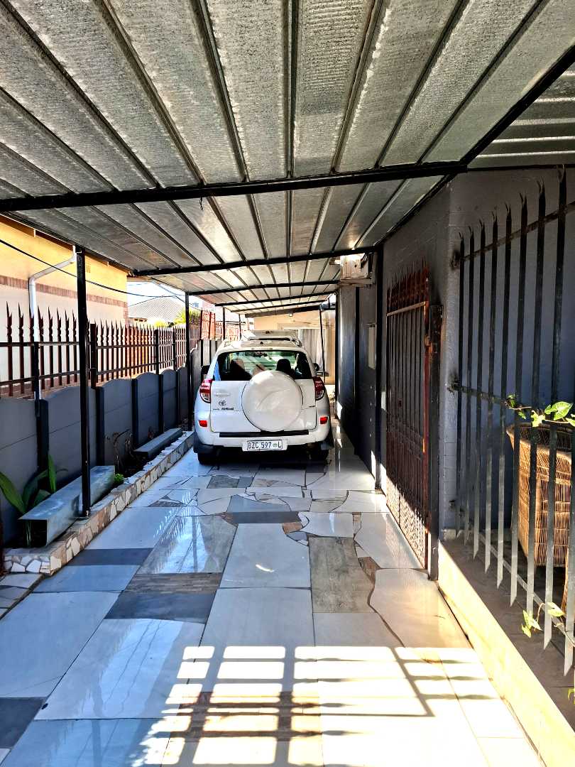 Your peace of mind is a priority, with the property secured by burglar bars and security gates. A huge sliding gate opens to reveal extensive parking options, featuring carports that can accommodate three to four cars. The well-maintained yard and sizable front garden provide a warm and inviting entrance, setting the stage for memorable outdoor gatherings.