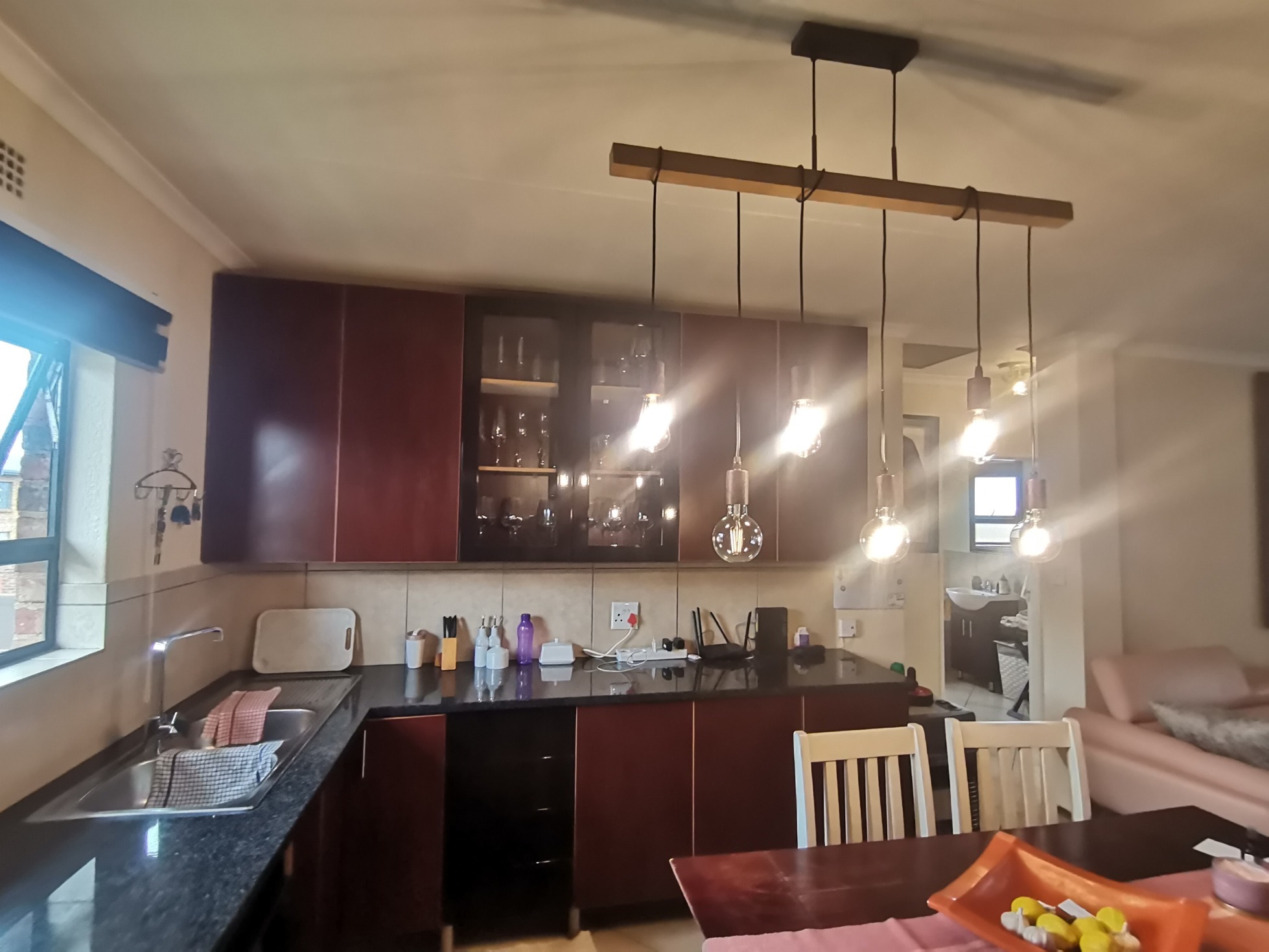 Open-Plan Kitchen & Lounge featuring granite countertops and a gas stove—ideal for entertaining