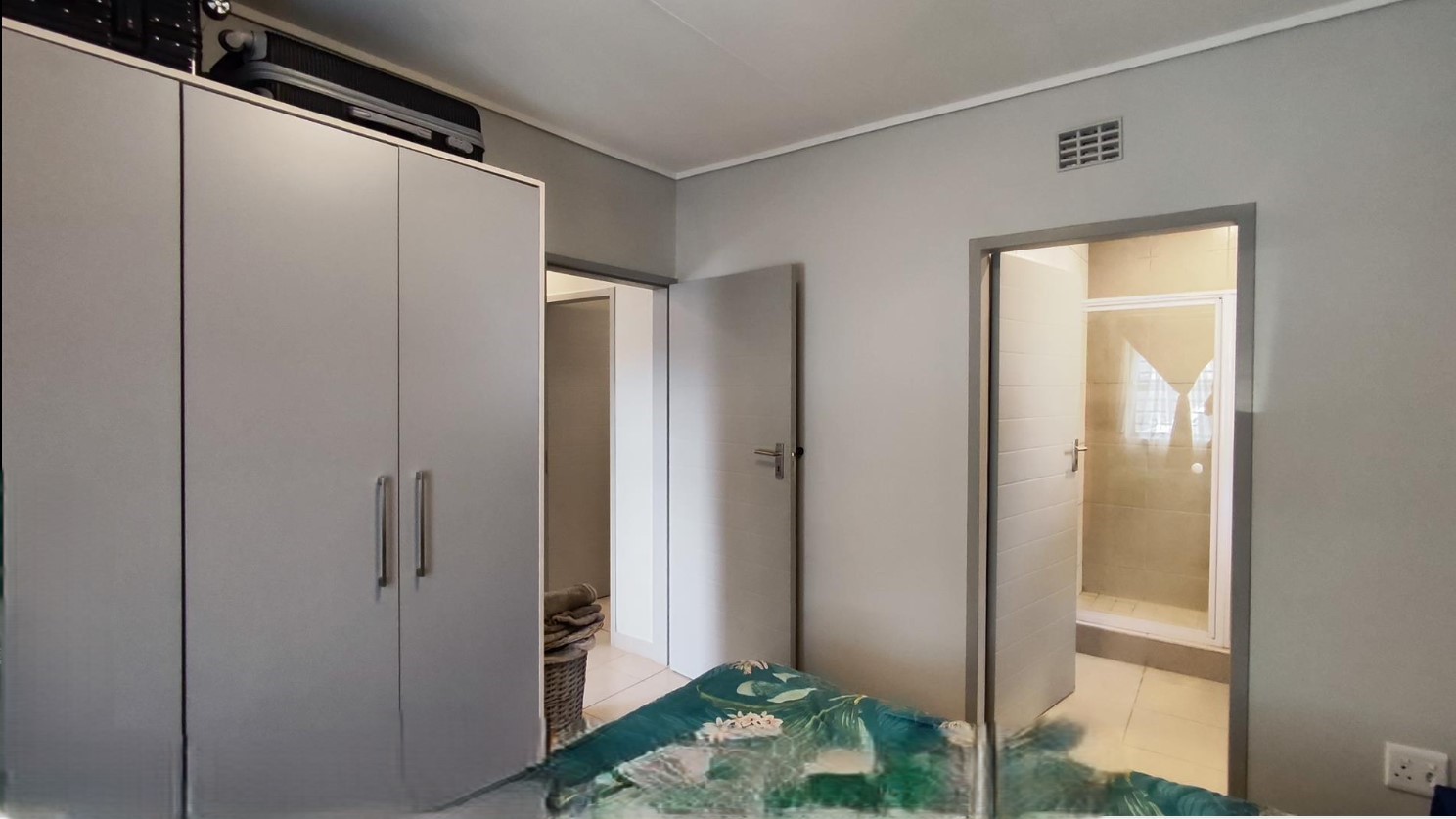 Enjoy the convenience of solar, ensuring you never go without a hot shower or bath, and always have a warm cup of coffee. The main bedroom features an en-suite bathroom with a shower, toilet, and sink, while the other two comfortably sized bedrooms also come with built-in cupboards. The entire property is tiled throughout, including wall-to-wall tiles in the bathrooms.