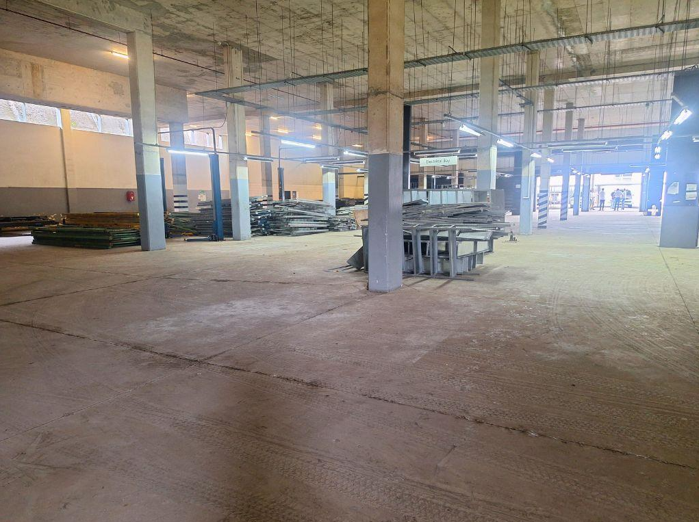 The executive office area features energy-efficient motion sensor lighting. The reception area has an exclusive entrance and parking area, separate from the warehouse, creating a separation of works and a professional environment.