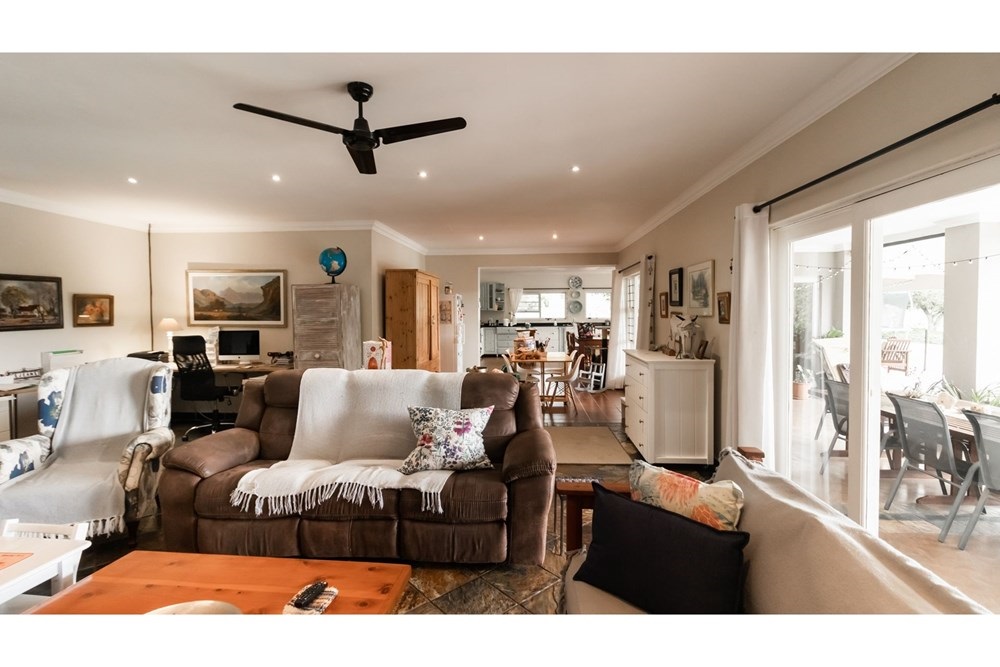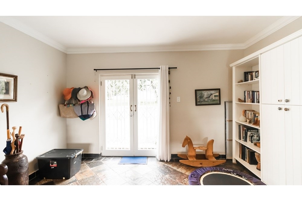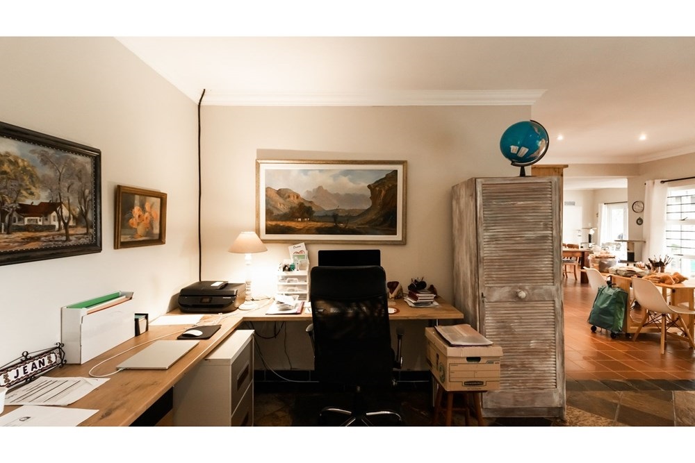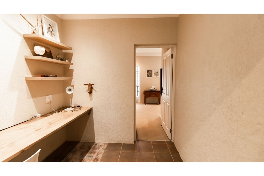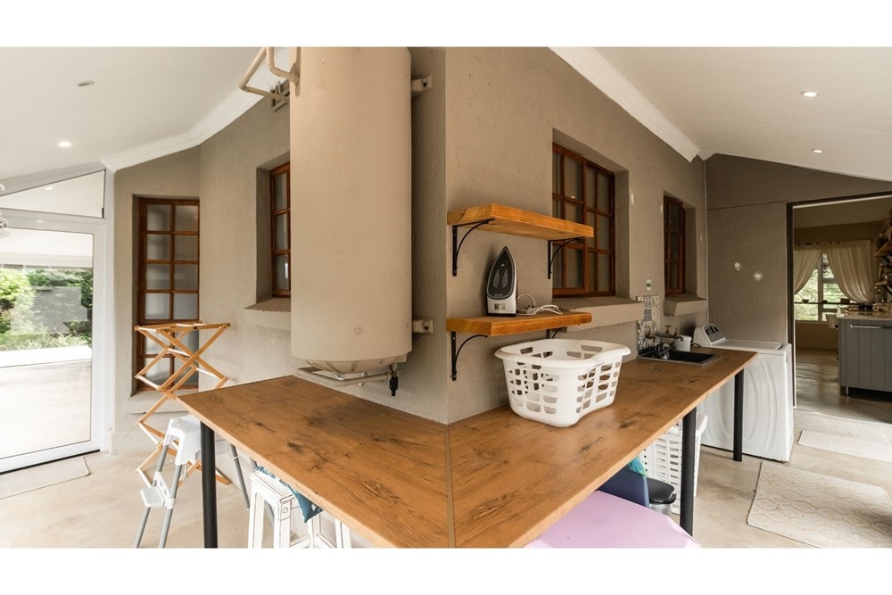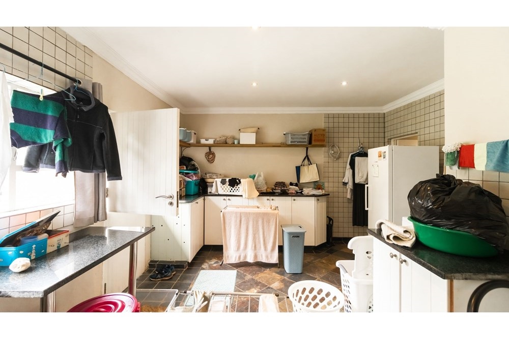 The home`s exterior is equally impressive, featuring a sparkling swimming pool, a well-maintained garden, and a veranda. Enjoy outdoor dining and gatherings at the built-in braai pit. Storage won`t be an issue thanks to the spacious garage with an automatic door that accommodates two cars, as well as an additional storage room. Security is a top priority, with a system that includes alarms and surveillance to ensure the peace of mind you deserve.