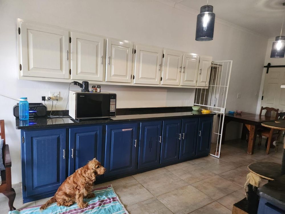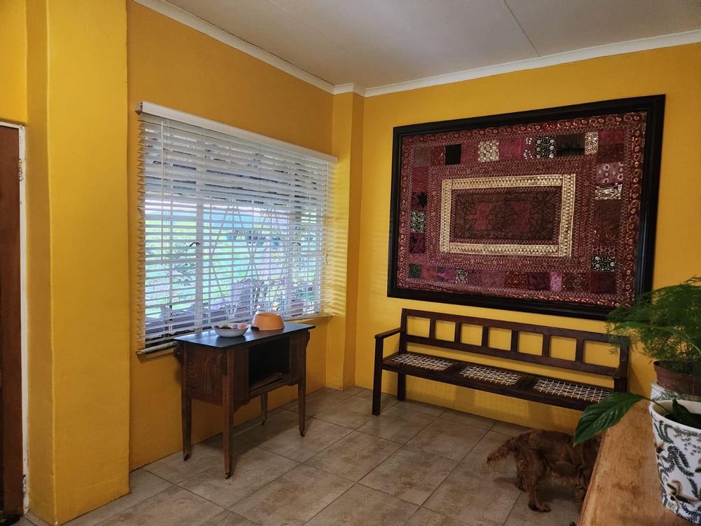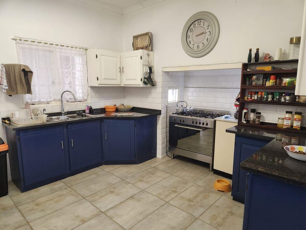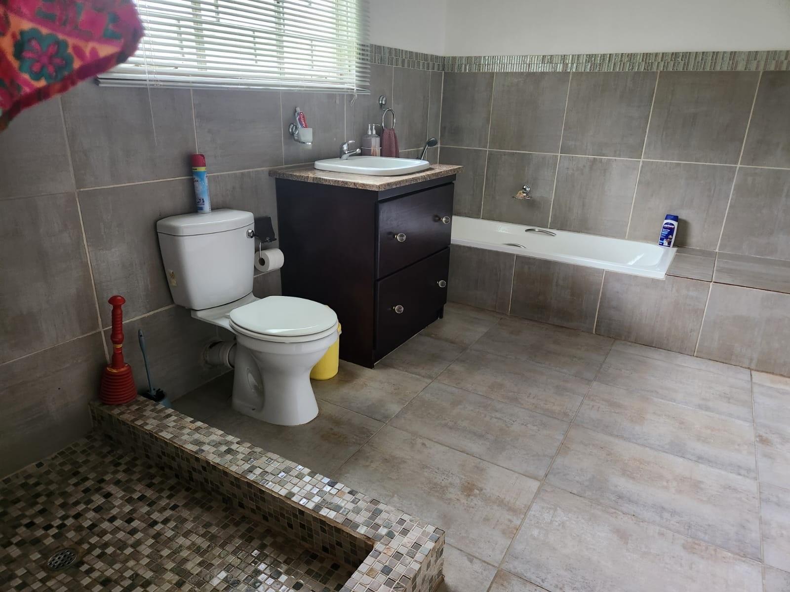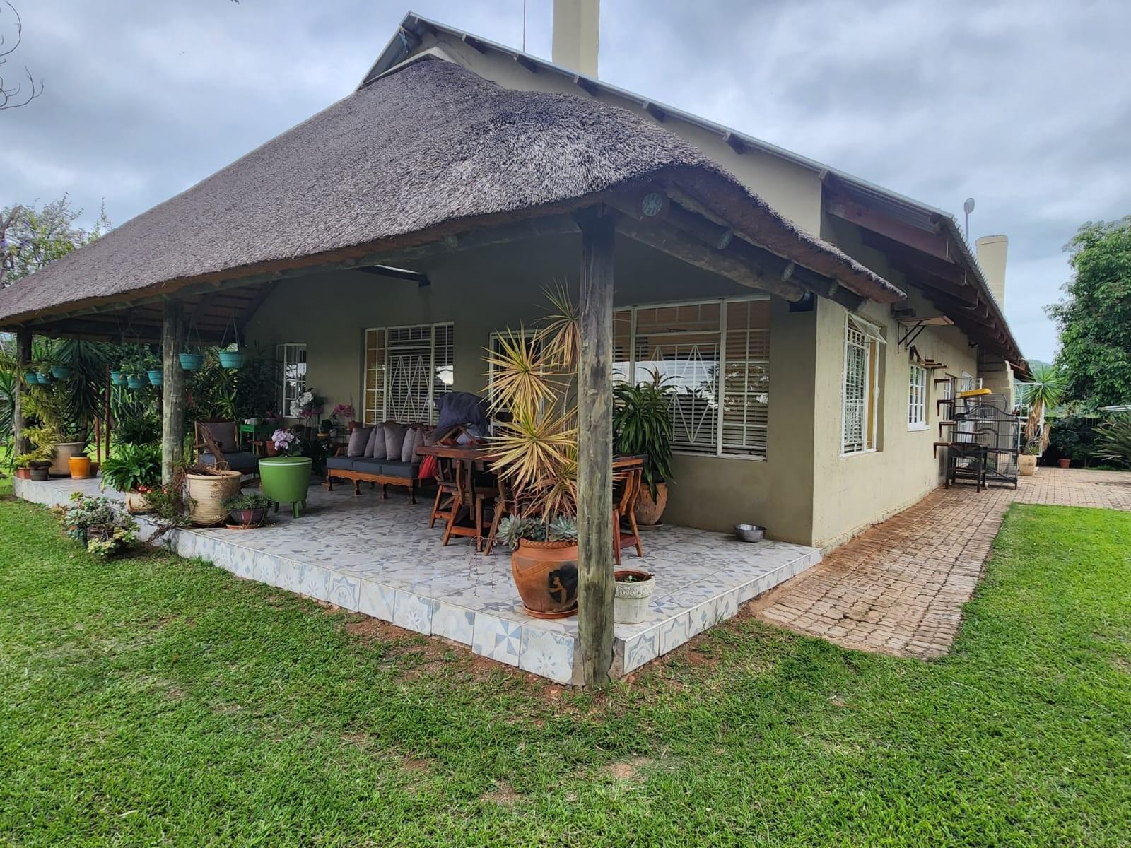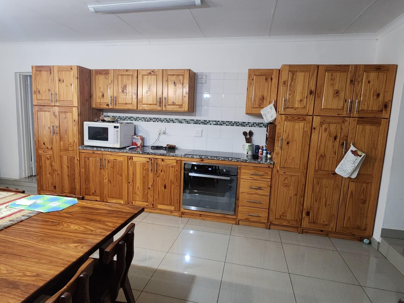 When you continue down the access road you will find the second home. A large 3 bedroomed house with double garage. The house is neat with a modern kitchen that serves a formal dining room. Down the passage is a lounge with enclosed patio and Lapa. This house boasts a wonderful garden with swimming pool and scenic view over the alkmaar orchards and hillside. Additionally there is a Rondawel-like 2 bedroom apartment that needs a bit of maintenance but can offer a comfortable living solution along with a storage room and 2 secured parking spaces. The staff accommodation is found behind the storage building and also in fair condition.