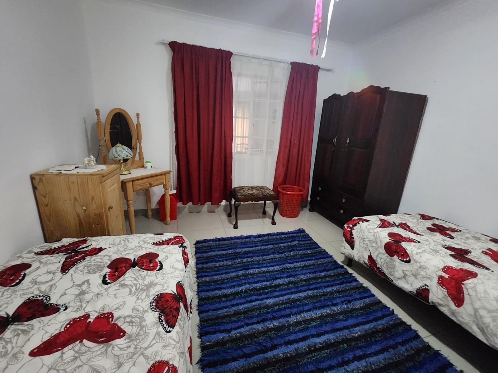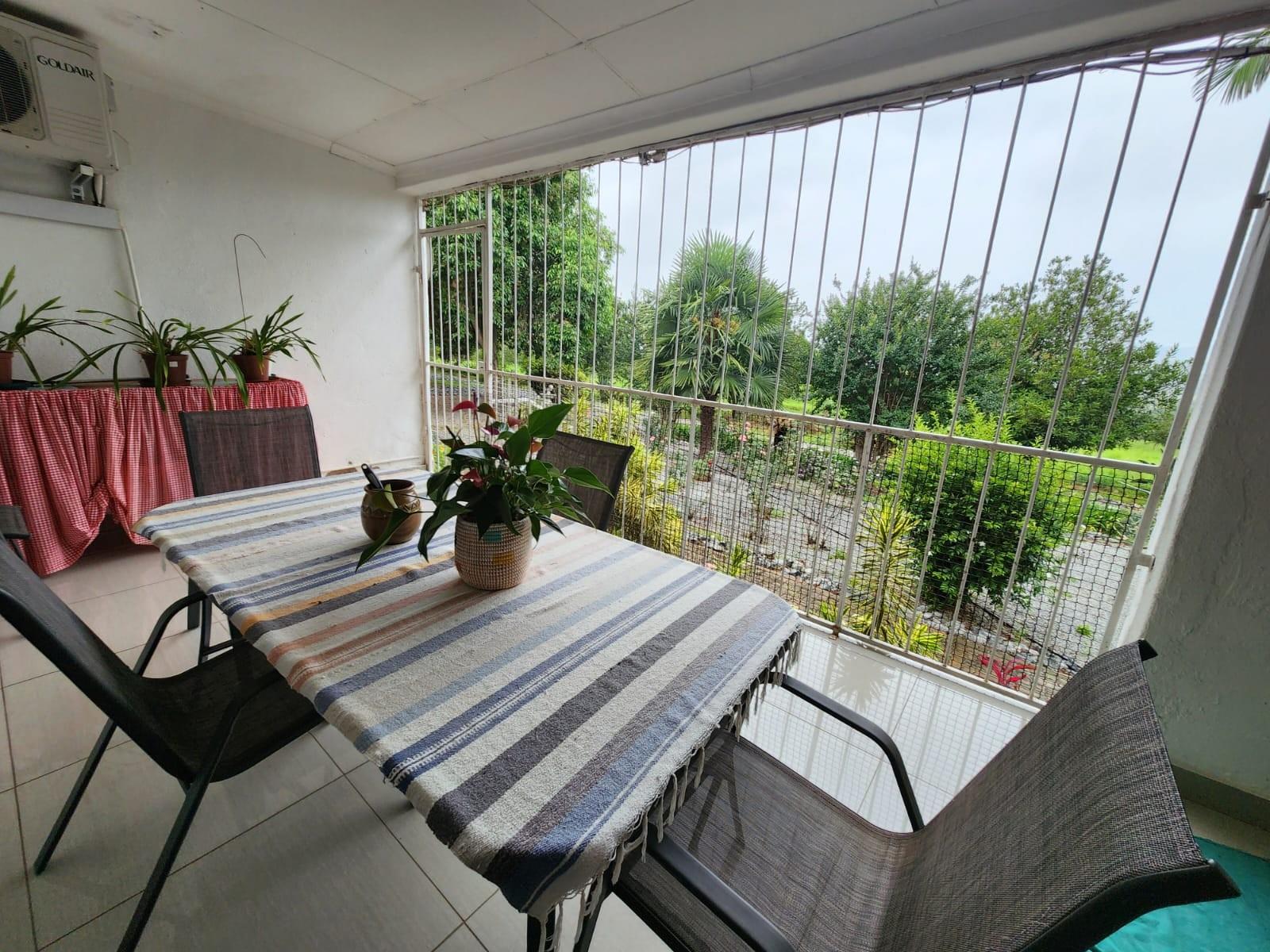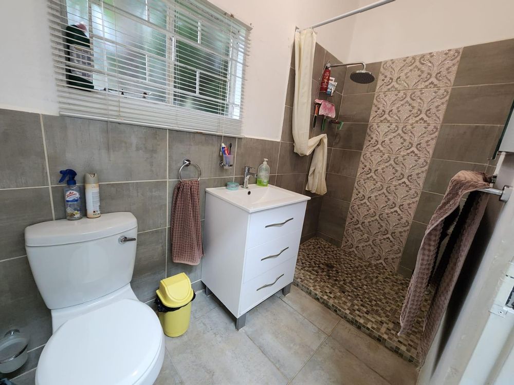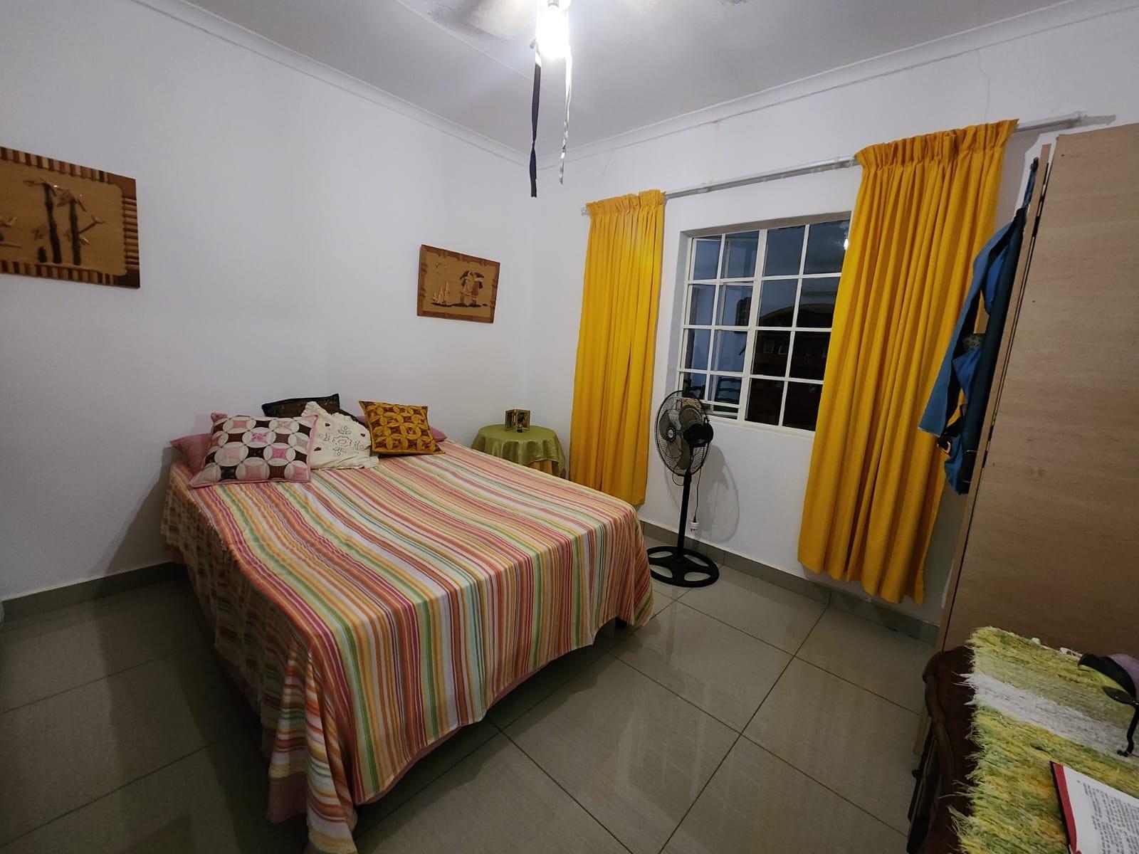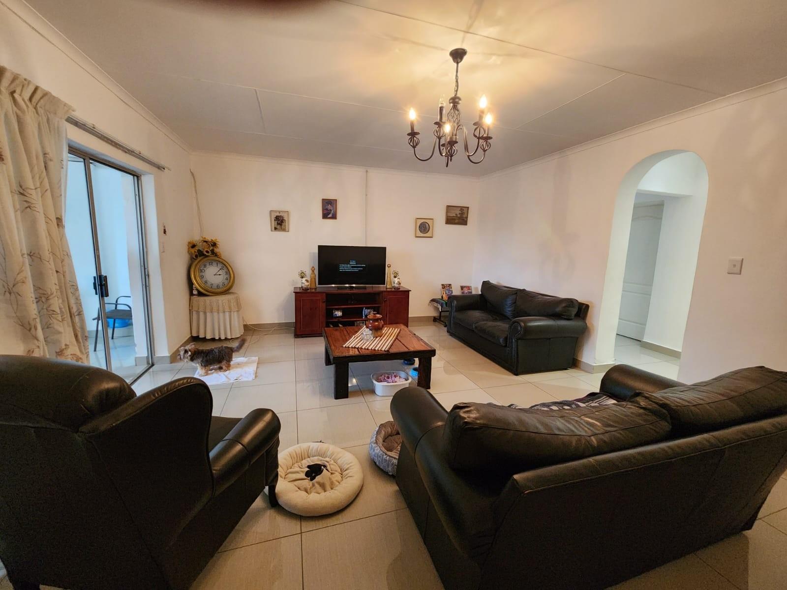 When you continue down the access road you will find the second home. A large 3 bedroomed house with double garage. The house is neat with a modern kitchen that serves a formal dining room. Down the passage is a lounge with enclosed patio and Lapa. This house boasts a wonderful garden with swimming pool and scenic view over the alkmaar orchards and hillside. Additionally there is a Rondawel-like 2 bedroom apartment that needs a bit of maintenance but can offer a comfortable living solution along with a storage room and 2 secured parking spaces. The staff accommodation is found behind the storage building and also in fair condition.