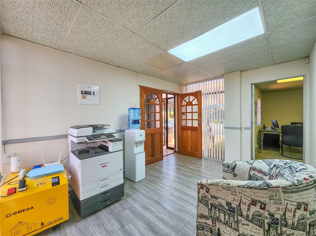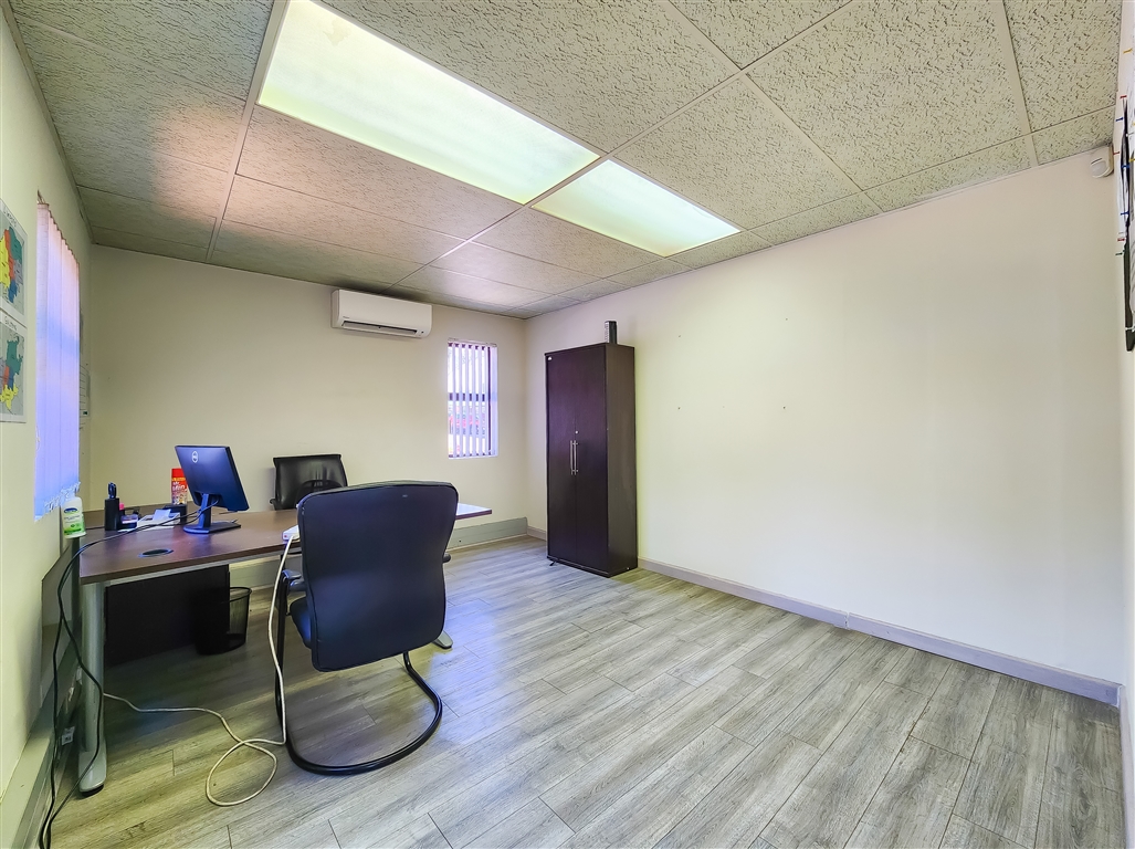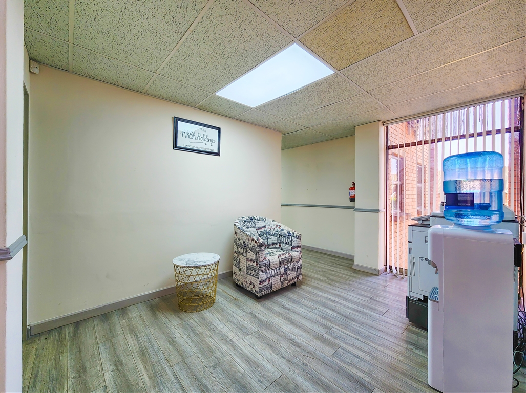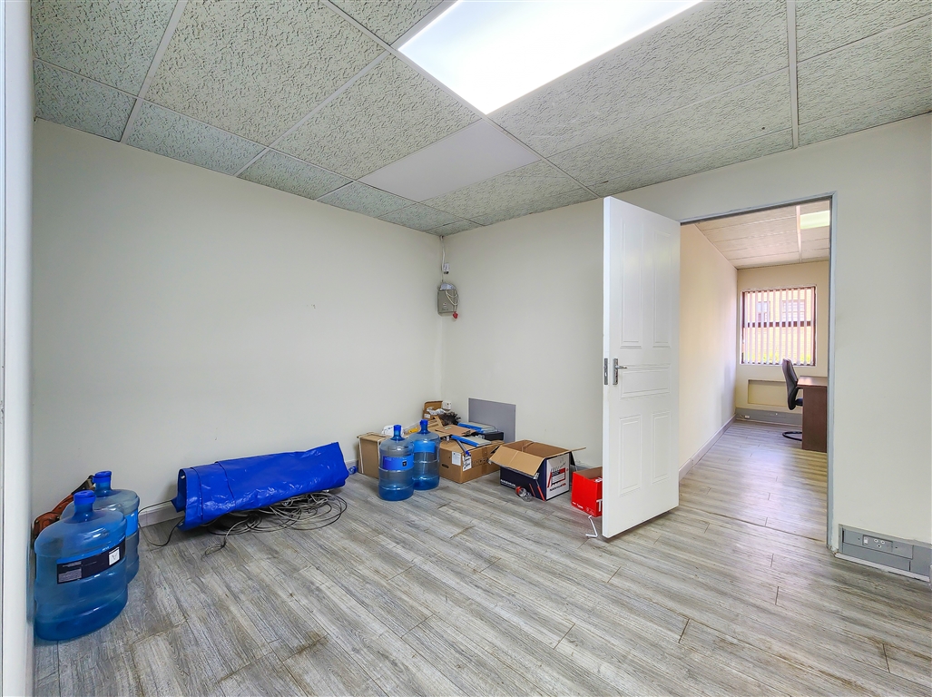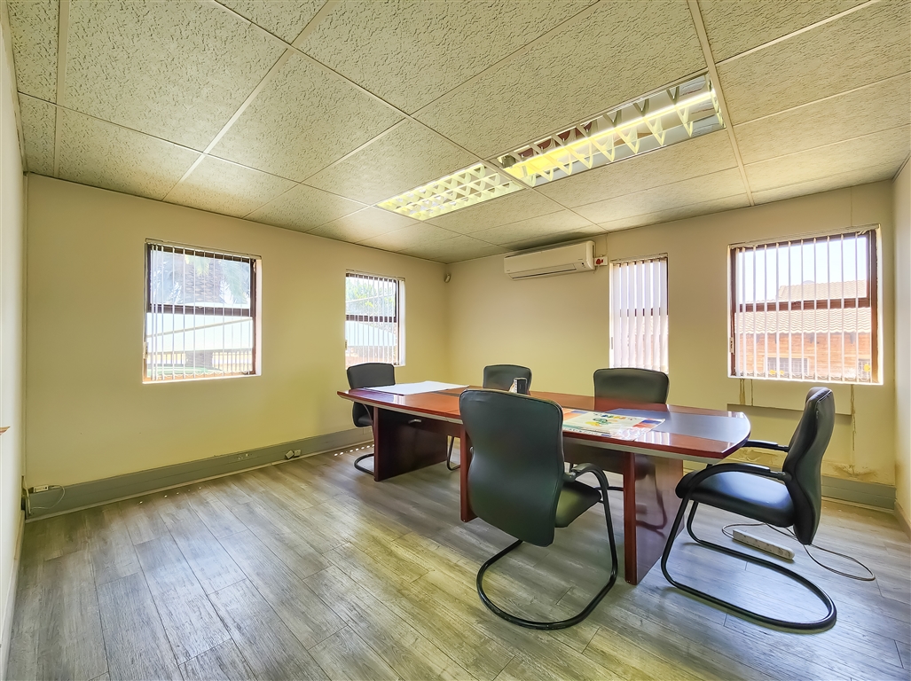 This moderrn office to let in Westwood Office Park is located on the ground floor and welcomes you with a spacious reception area followed by a boardroom that can accommodate a 6-seater. A passage further leads you to 4 individual offices, a private dedicated kitchen and private dedicated ladies and gents restrooms. All the windows have ready fitted blinds. The office enjoys vinyl floors throughout. Fibre ready and is conveniently supported by a backup generator.