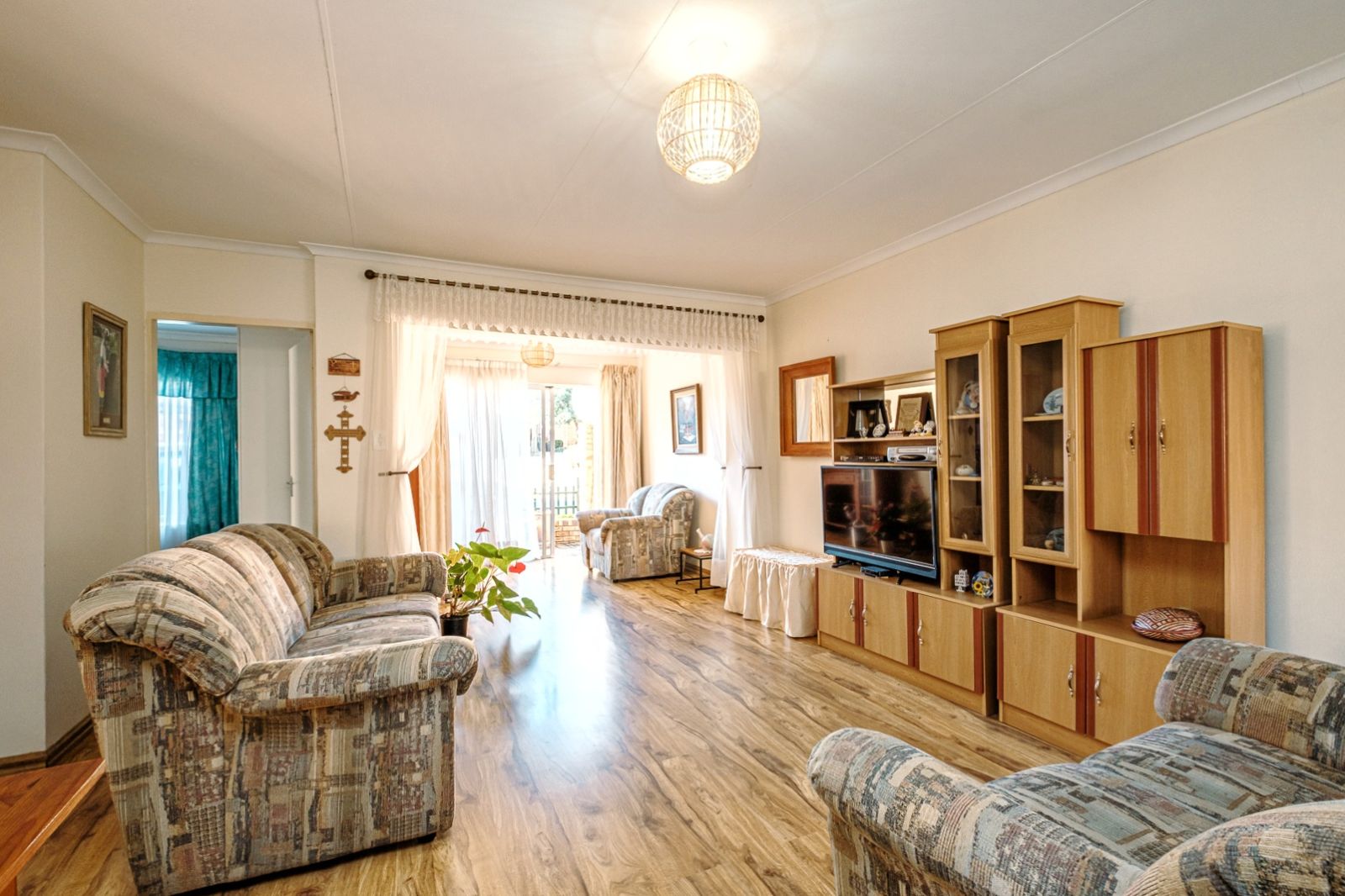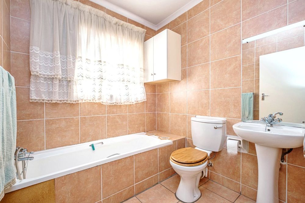 This lovely and spacious 2-bedroom, 2-bathroom simplex townhouse is the ideal blend of comfort and convenience. The home has been newly renovated and features a stunning open-plan kitchen with a centre island, undercounter oven, hob with extractor fan, and space for a double fridge and washing machine. The kitchen flows seamlessly into the lounge and dining area, finished with laminated wooden flooring, and extends into a charming sunroom. Both bedrooms include built-in cupboards – one carpeted and the other tiled, with the main bedroom offering an en-suite bathroom with shower, toilet, and basin, while the second bathroom serves as a guest bathroom with bath, toilet, and basin. A private back courtyard with washing lines adds extra practicality. The property includes one carport and one open parking bay, with plenty of visitors’ parking available.