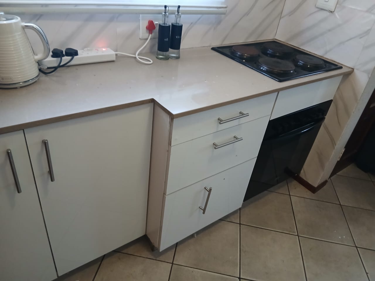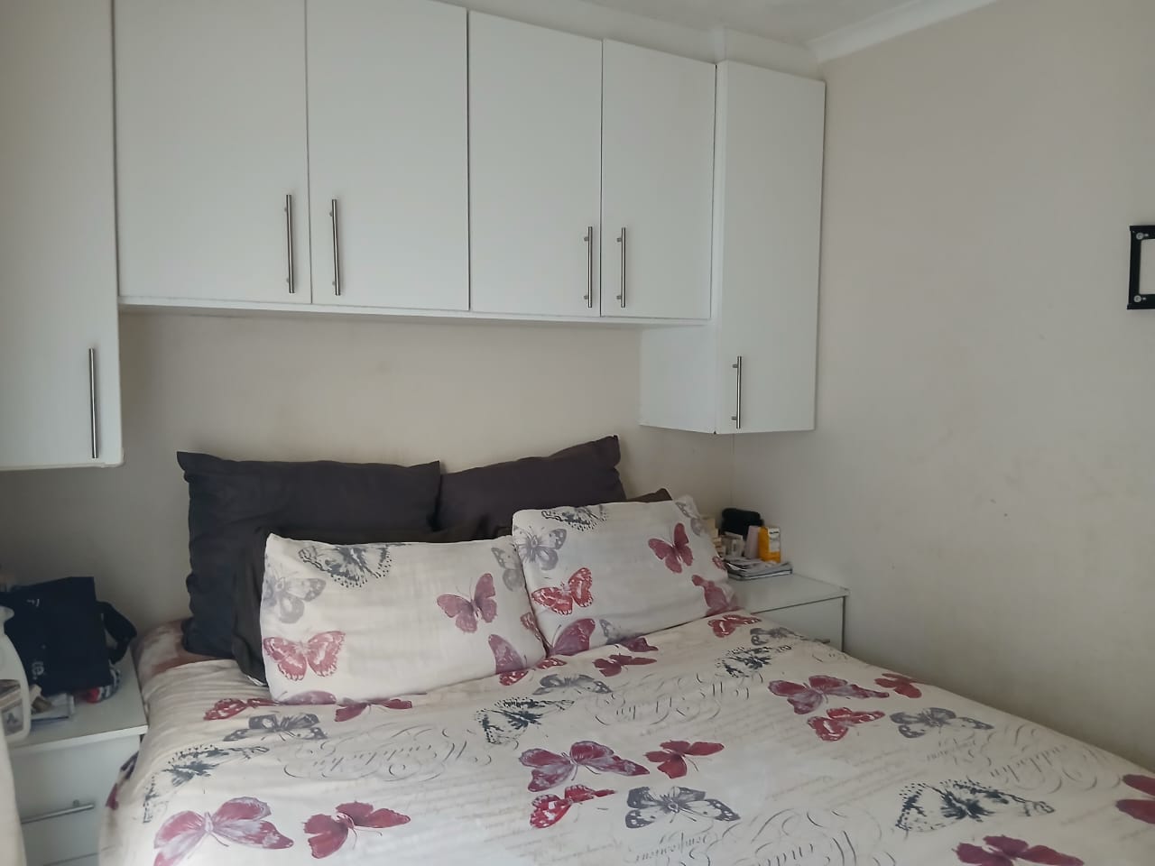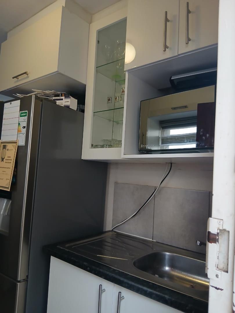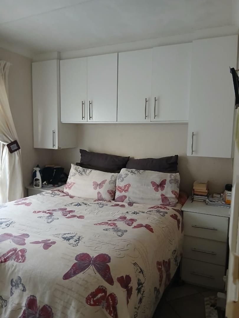 Step inside to find two spacious bedrooms, each equipped with built-in cupboards. The main bedroom boasts additional storage space, comfortably fitting queen and double-size beds. Enjoy cooking in the fitted kitchen, which provides ample room for all your appliances. The home is tiled throughout, adding a touch of elegance and ease of maintenance. The bathroom is well-appointed with a bath, basin, and toilet.