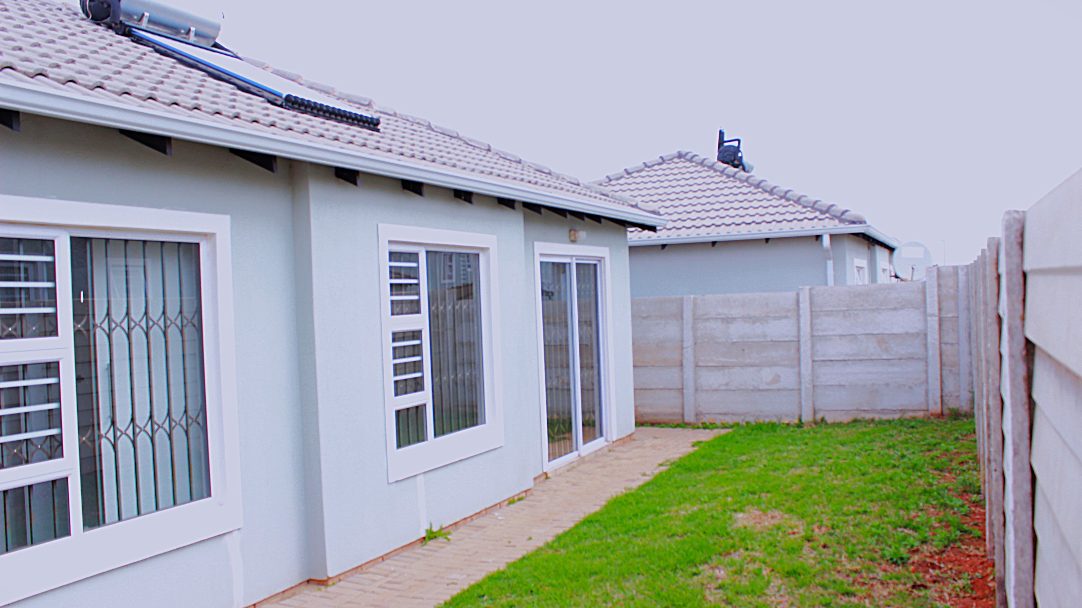 This beautiful three-bedroom house in Greenwood Gardens offers comfortable and secure family living. It features two modern bathrooms, a spacious private yard, and a lovely outdoor braai area — perfect for entertaining. The home is equipped with air conditioning, burglar bars, and an alarm system for added peace of mind. Enjoy energy-efficient living with a solar geyser and a backup water tank. The estate provides 24/7 security and offers easy access to the N12, making commuting convenient. Ideal for families seeking a secure, modern, and well-located home.
