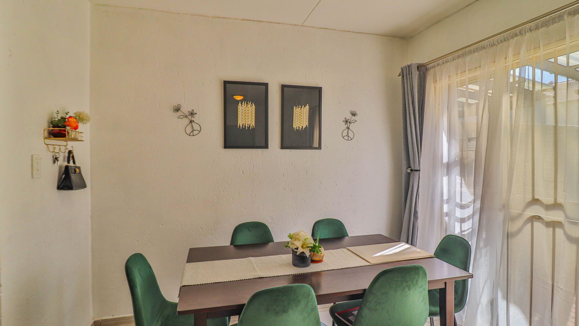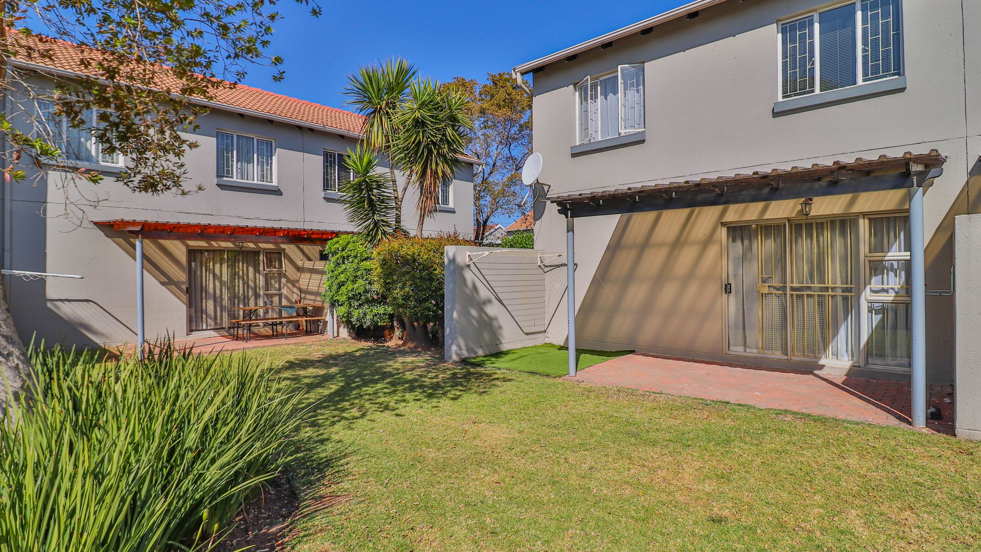 Lounge and dining area open up to patio overlooking tranquil communal garden.
