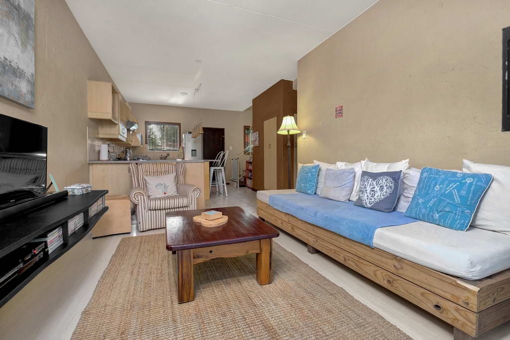Open plan modern kitchen open up to lounge. Main bedroom is downstairs with mes.