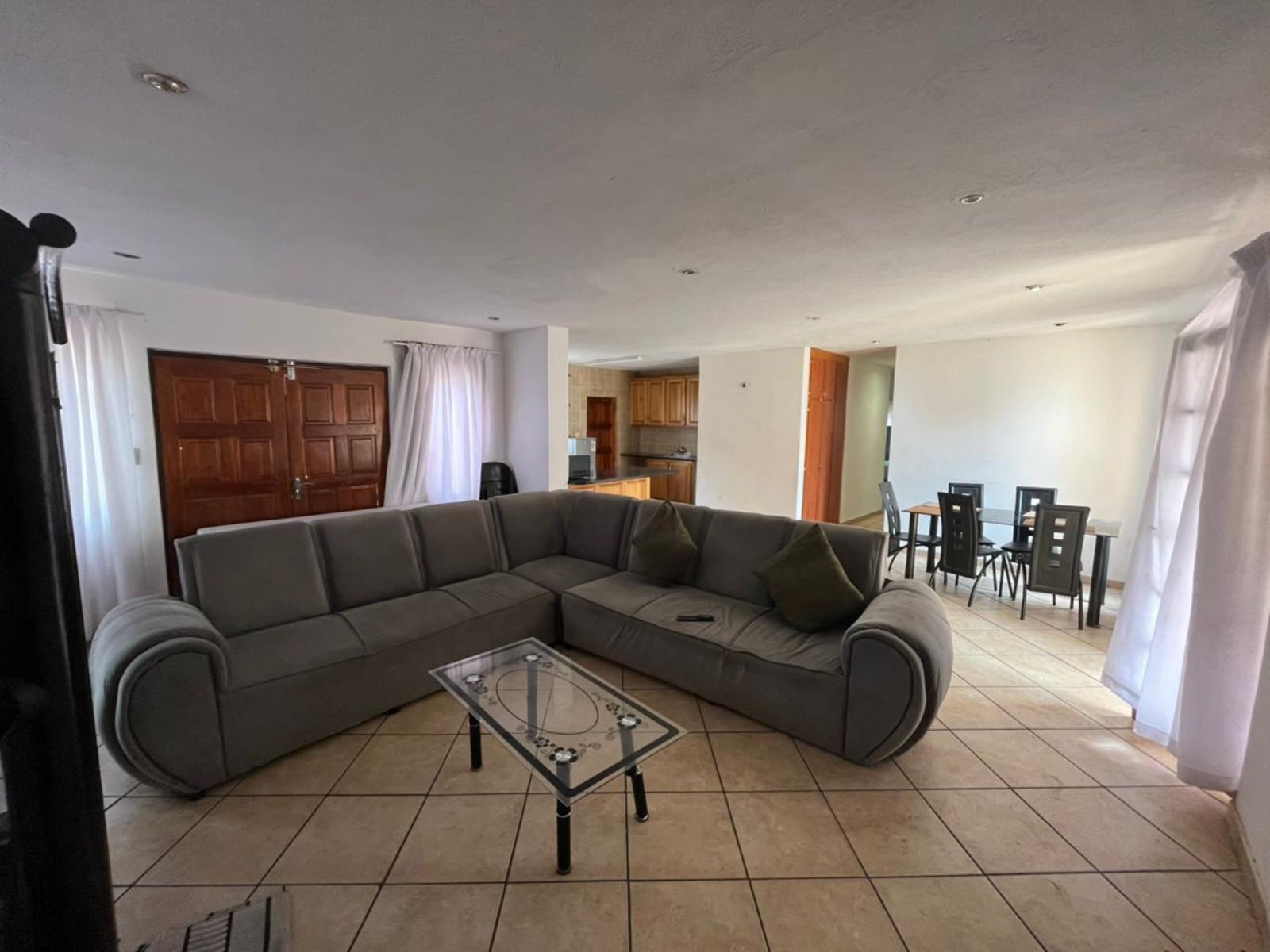 The open-plan kitchen seamlessly flows into the dining and TV area, creating a warm and inviting space ideal for family gatherings or entertaining guests. Designed for comfort and convenience, this apartment offers a balance of functionality and style, making it a great choice for both families and working professionals.