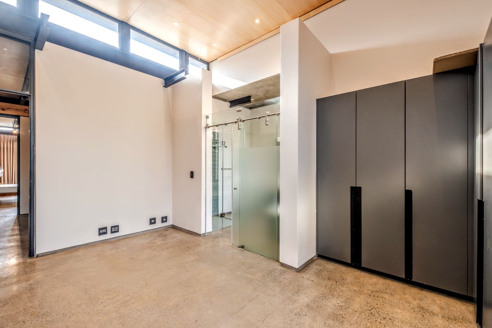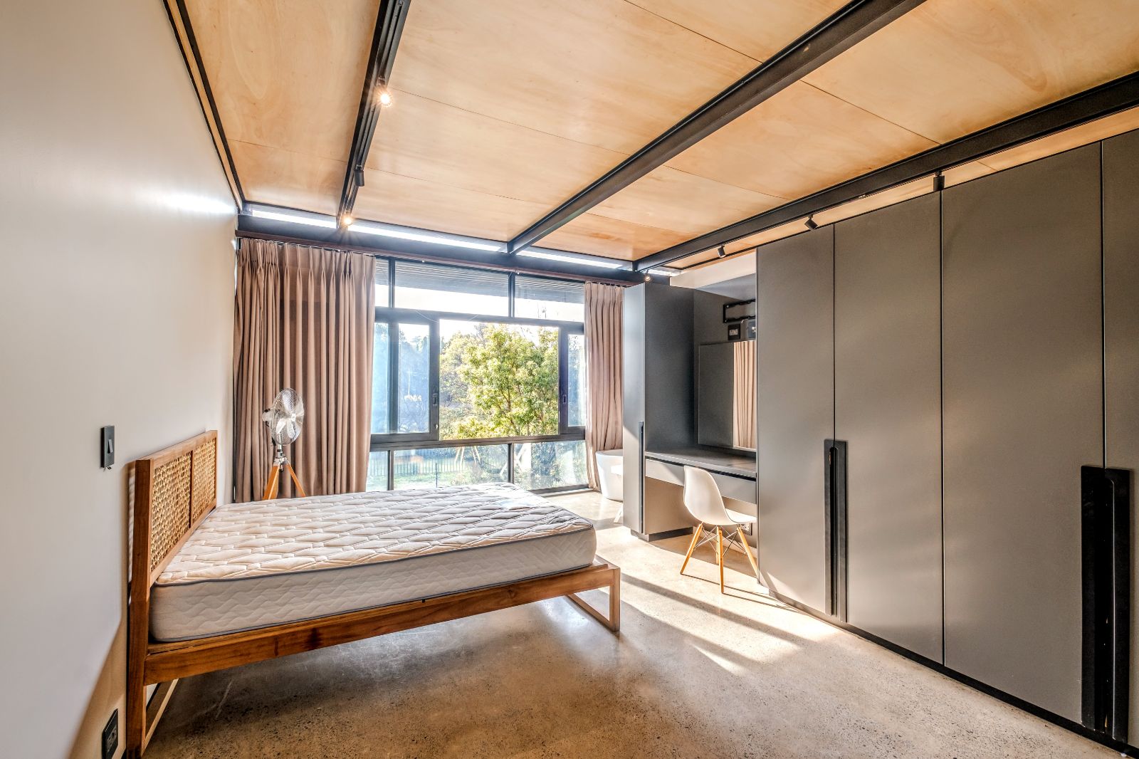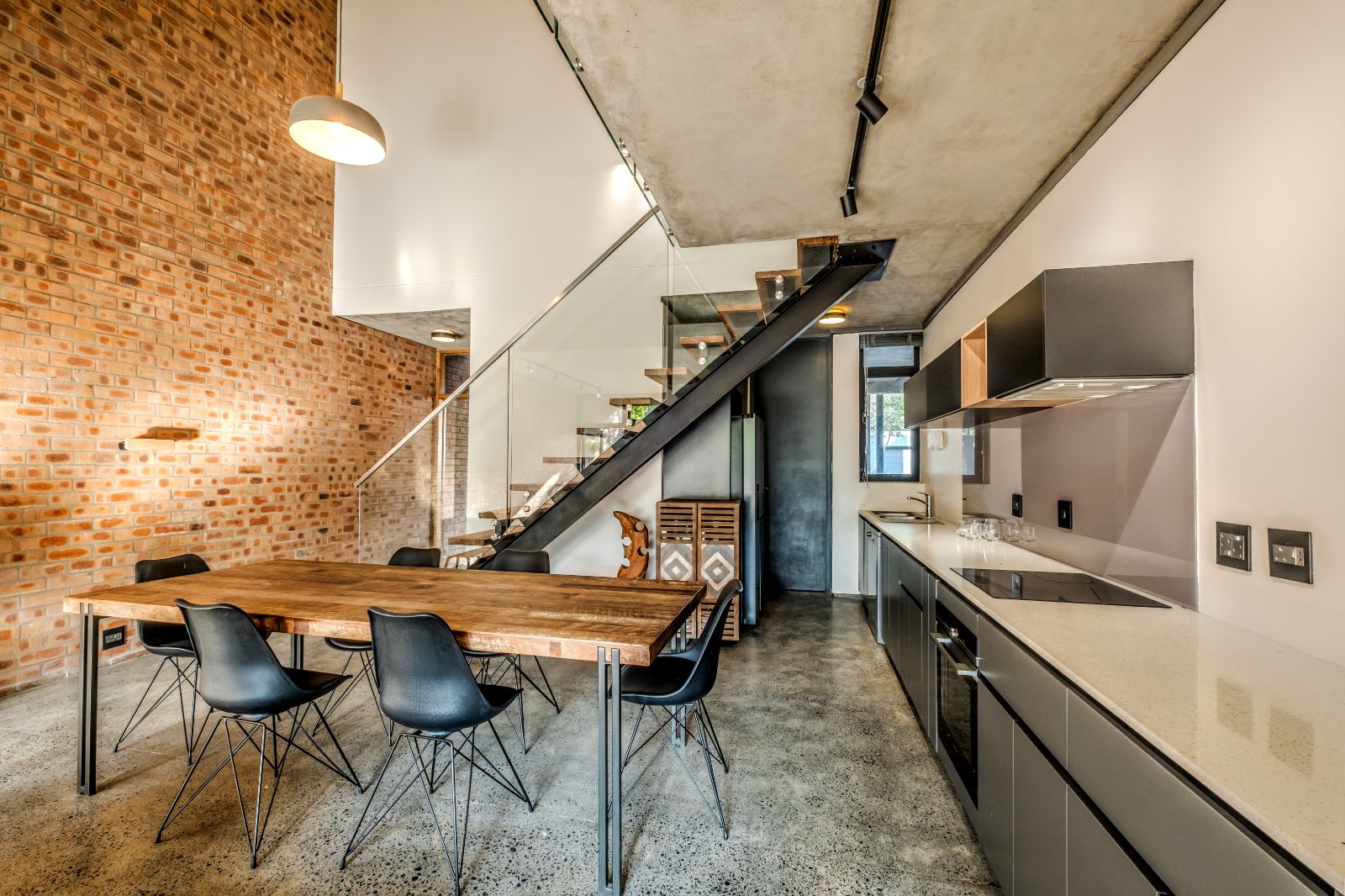 The architectural aesthetics of this uniquely styled duplex with its double volume concrete slab ceilings on the ground floor and quality wood panelled ceilings on the second floor is longing to be enhanced by your unequivocally tasteful interior.