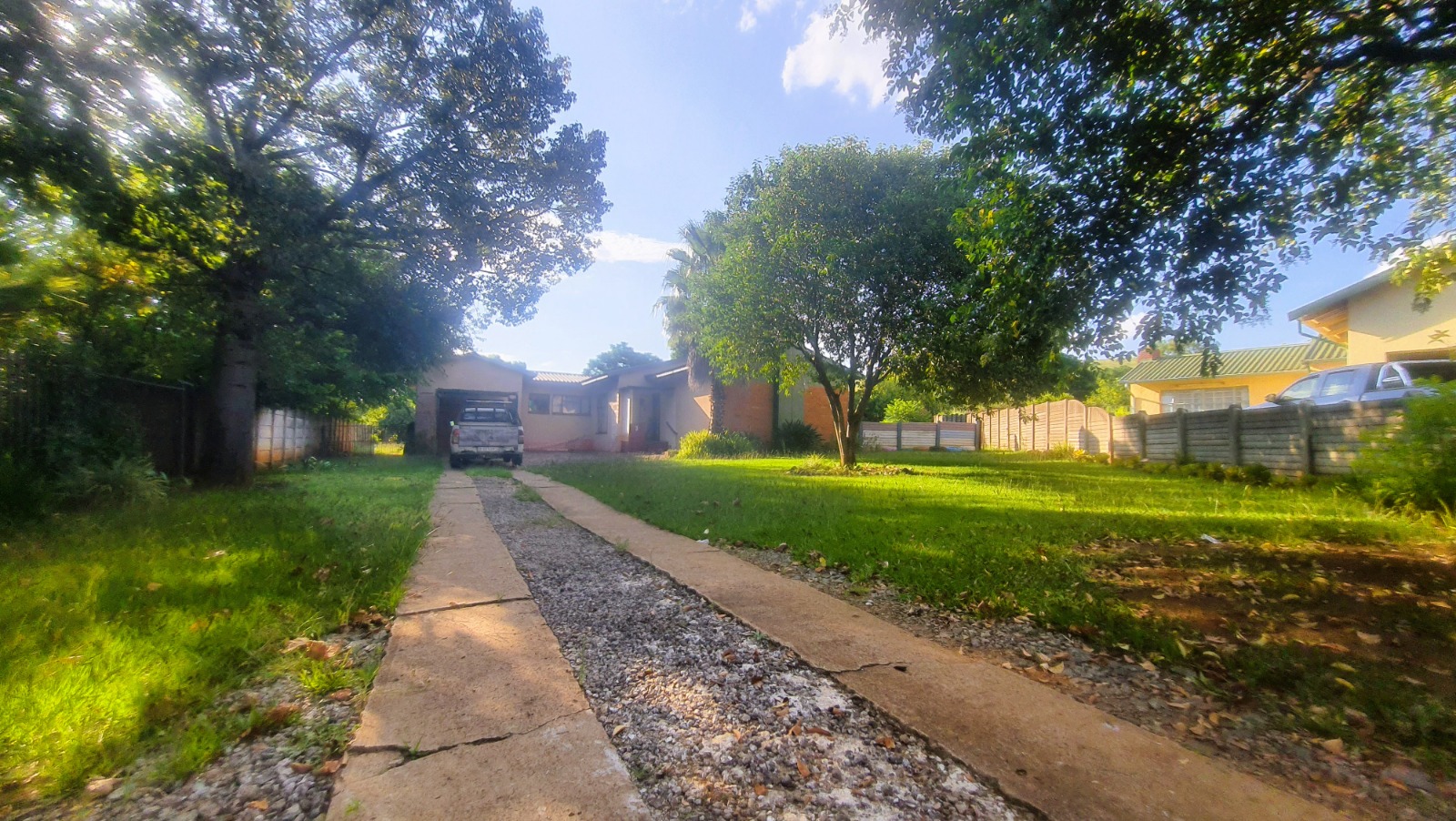 The kitchen has been refreshed with new cupboards and a stove, ready for home-cooked feasts and family gatherings. Outside, you’ll find a built-in braai, a single garage with carport, and even a domestic room with toilet for extra convenience. The large yard is the real star here — perfect for kids to play, pets to roam, or future extensions to turn this home into your personal kingdom. There is also an alarm system in the house for extra security.