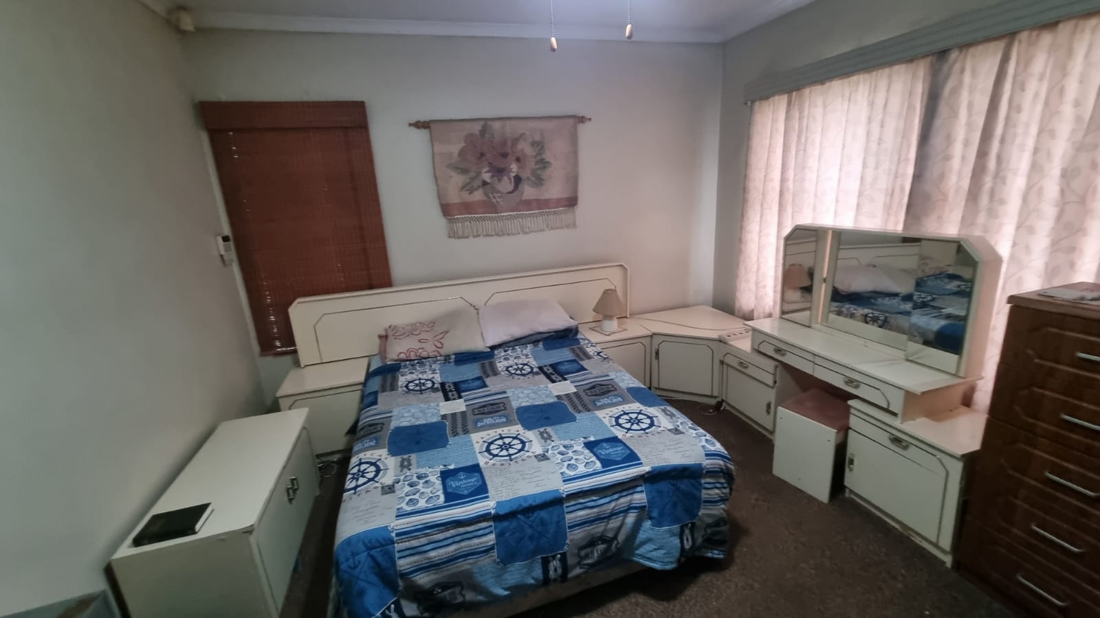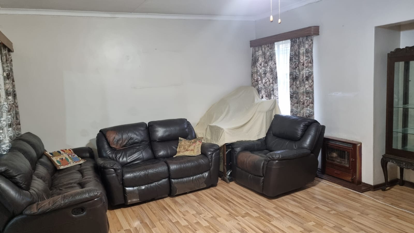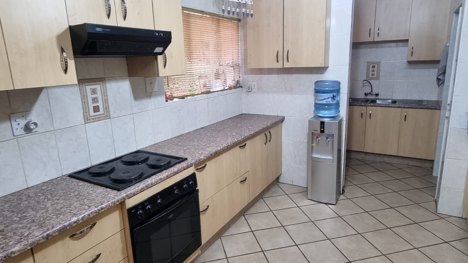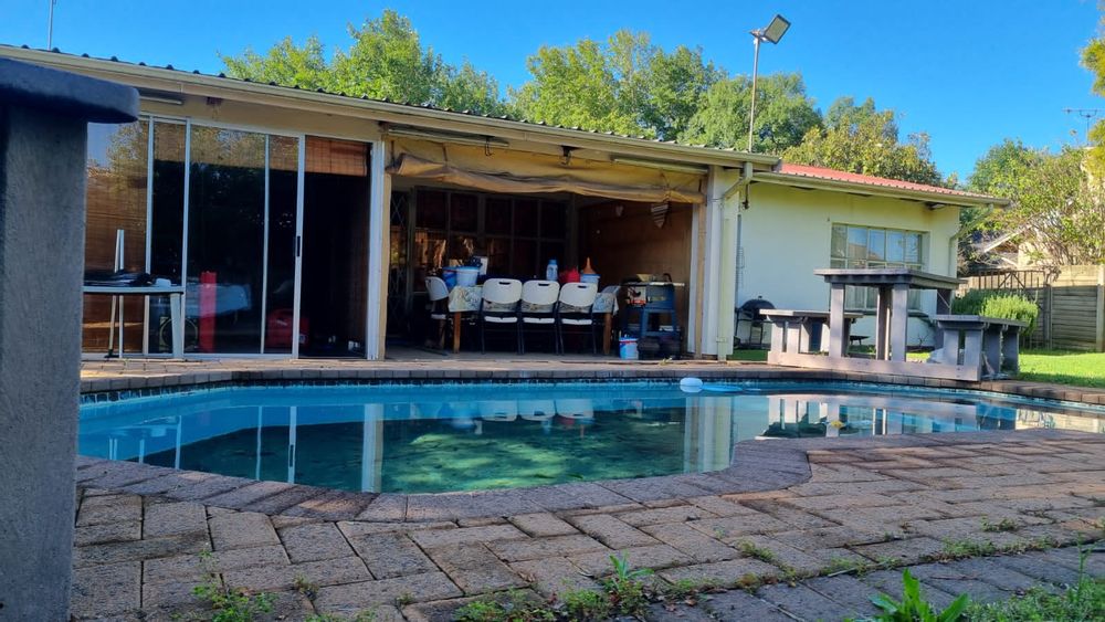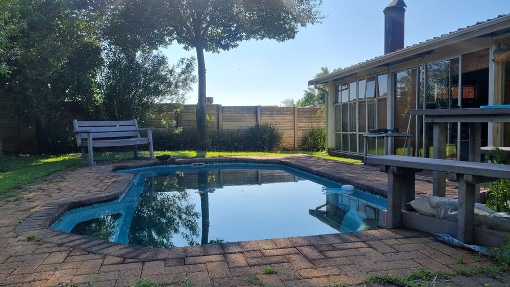 This upgraded and well-maintained family home features an inviting entrance hall, a spacious lounge, a dining room, and a family room/entertainment area complete with a built-in braai. It boasts three bedrooms, all equipped with built-in cupboards, a modern kitchen fitted with an under-counter oven and hob, a convenient scullery, and two bathrooms.