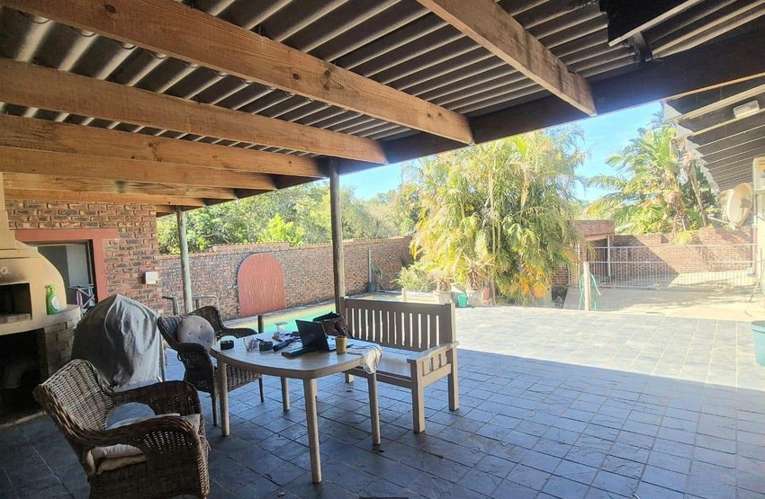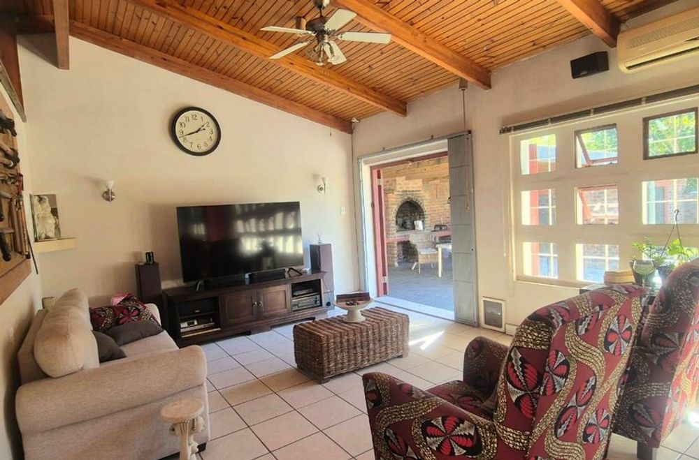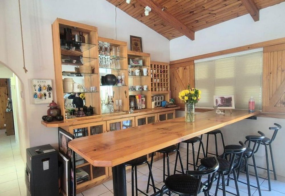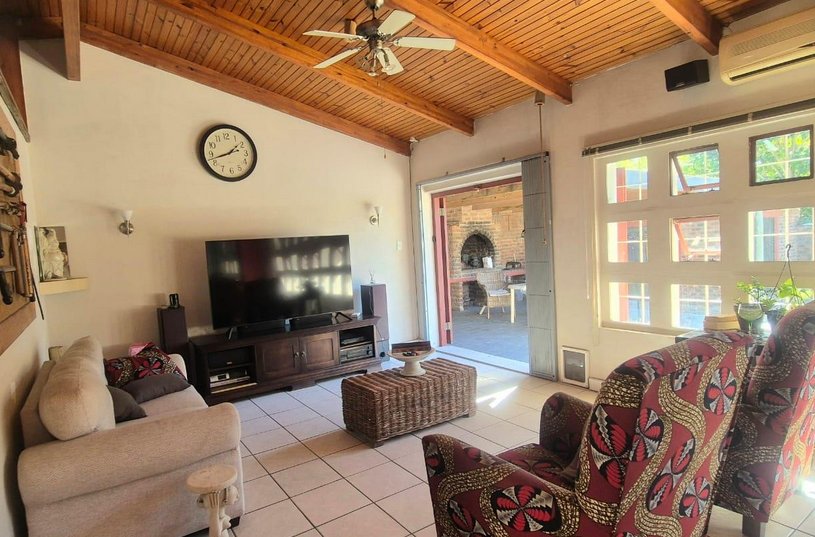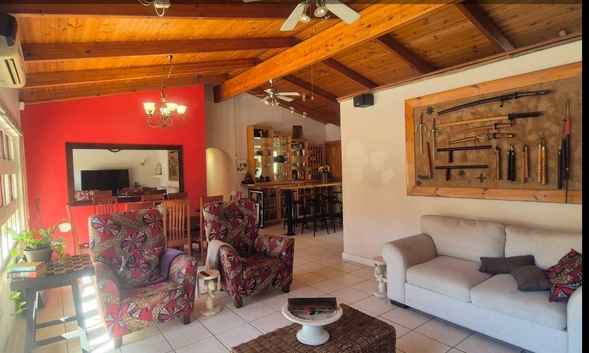 Open the doors to a stunning slate-covered patio that overlooks a sparkling pool—an entertainer’s paradise for year-round enjoyment. Adjacent, a fully equipped undercover entertainment area boasts a built-in braai and pizza oven, perfect for laid-back weekends or lively gatherings.