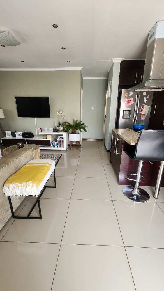 Welcome to this meticulously maintained modern property that combines style and functionality. Step into the open-plan lounge, where you'll find a beautifully designed kitchen featuring an island with a gas stove—perfect for saving on electricity. The kitchen seamlessly integrates space for a small dining room table, creating a cozy yet efficient living area for family meals and gatherings.