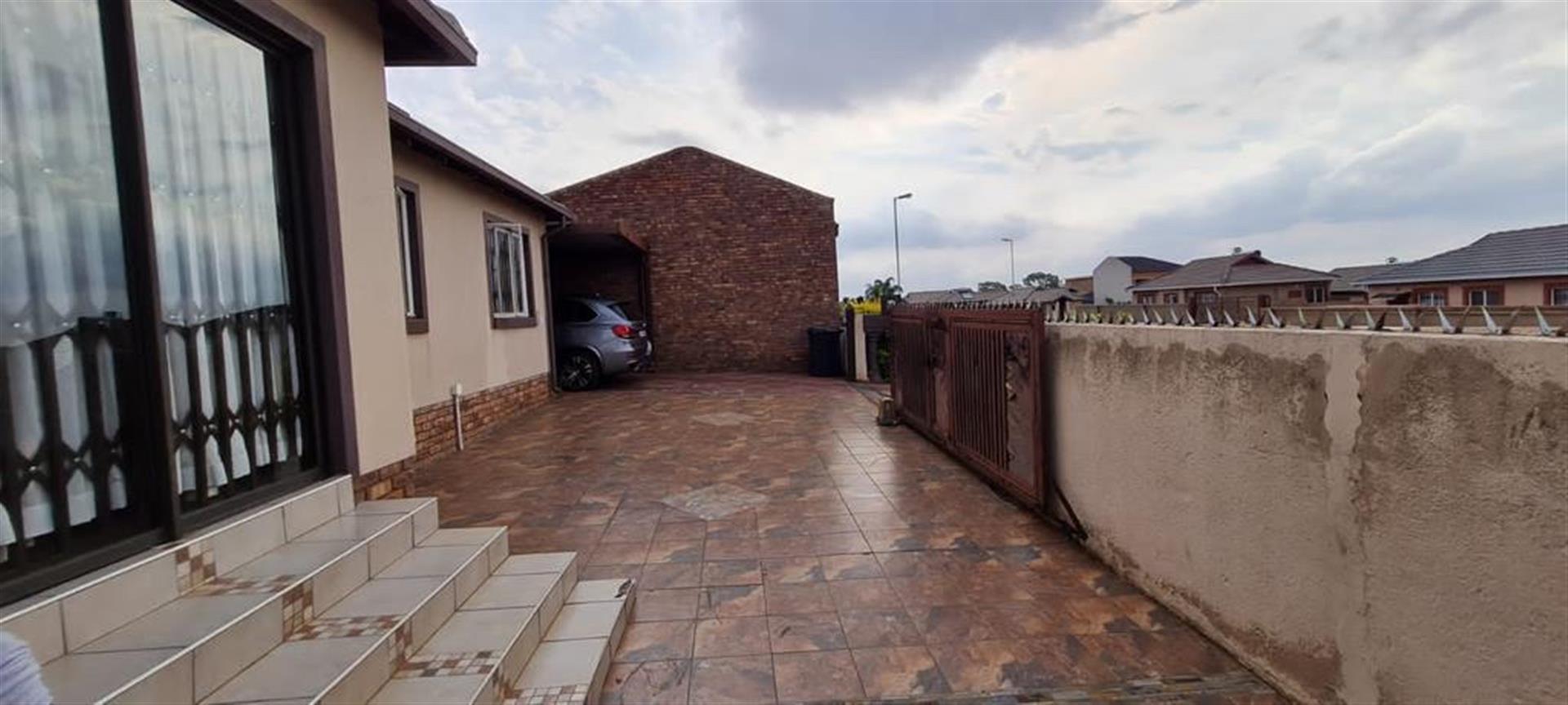 Extras in this home include a solar geyser, a motorized gate, a fully paved yard, a double carport, a wendy house, a prepaid electricity meter, an alarm system with sensor beams all around, and CCTV cameras for additional peace of mind.