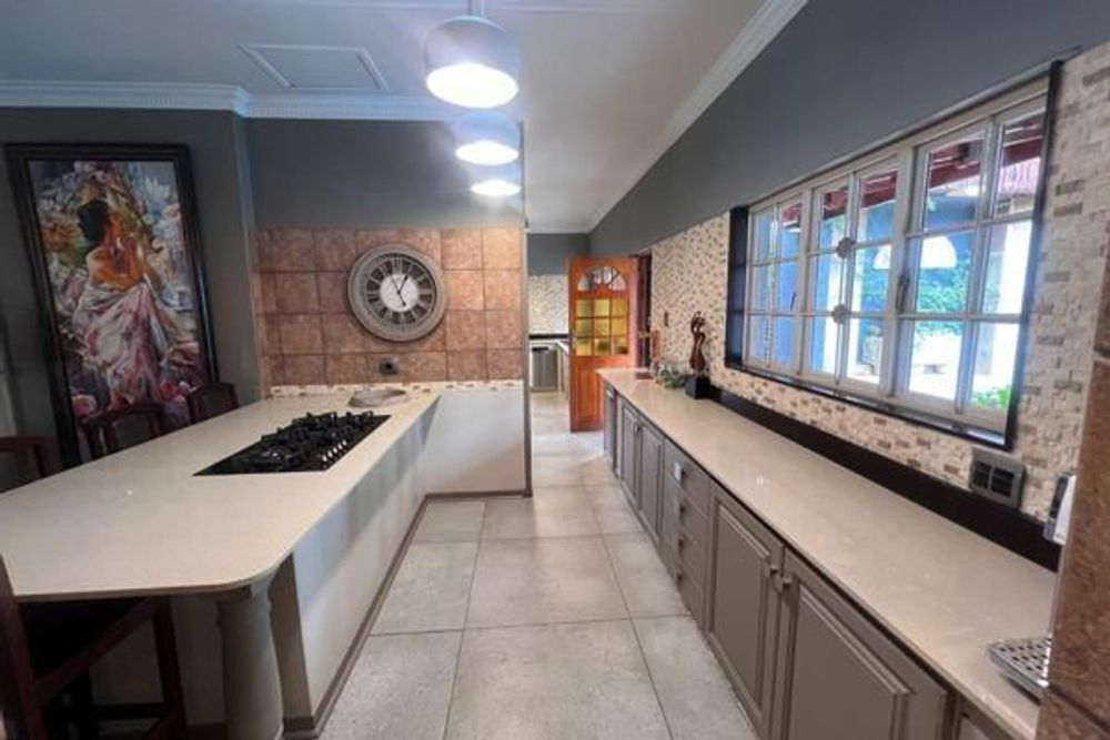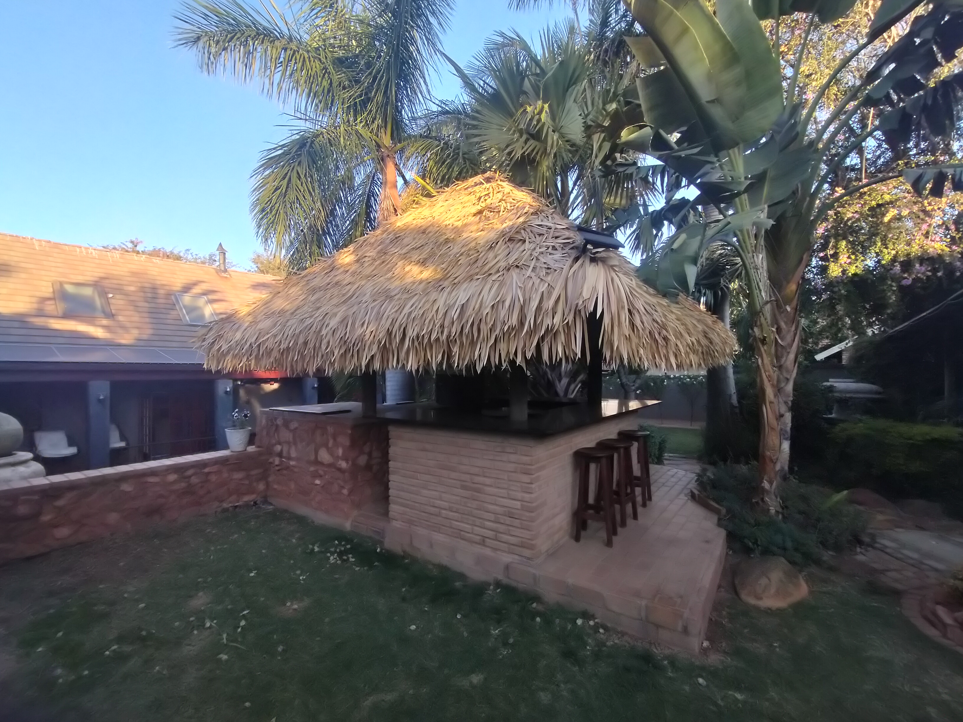 Boasts 6 luxury bedrooms, a versatile mix of flooring types, and a sophisticated aesthetic. The property also features 3 bachelor flats or private living spaces perfect for guests, 5 bathrooms, and a double garage with a lift for storage or a camping trailer. The entertainment areas, both inside and out, offer ample space for relaxation and leisure.